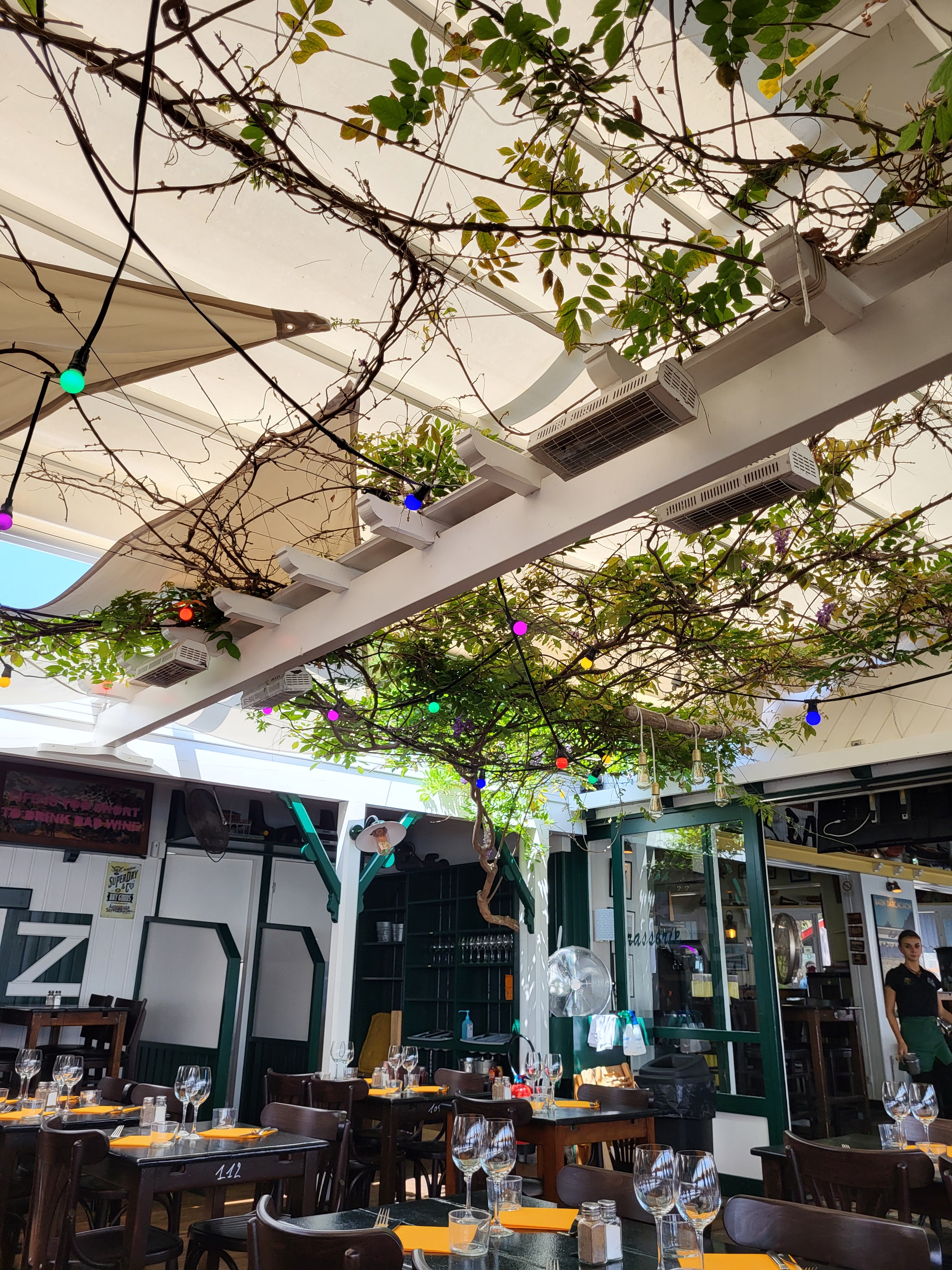 Nous sommes arrivés sans réservation il y avait des tables de disponible très bon accueil jolie endroit malgré le vent frais qu'ils fesait on n'a très bien mangé plateau de fruits de mer excellent choix je vous le recommande