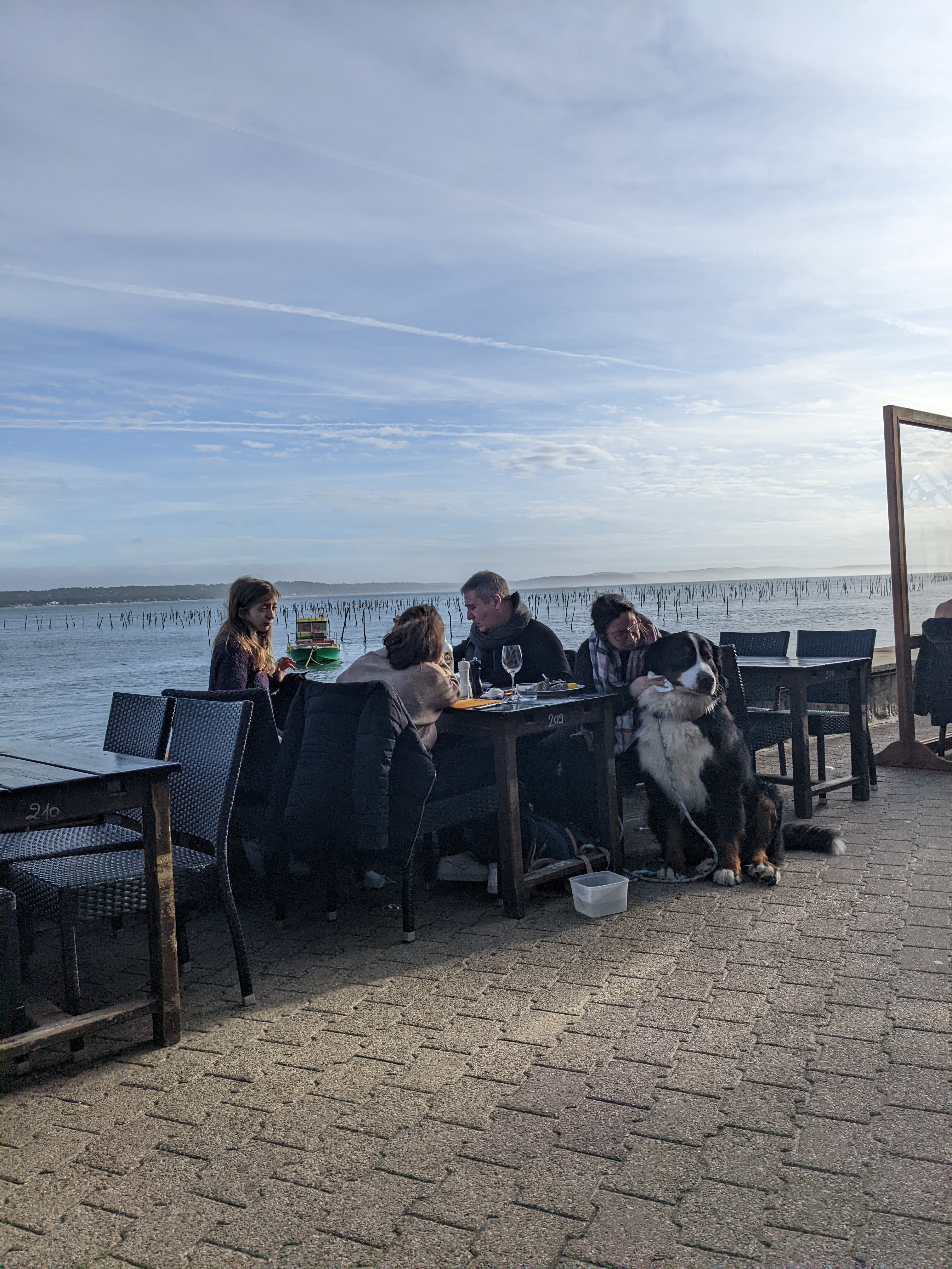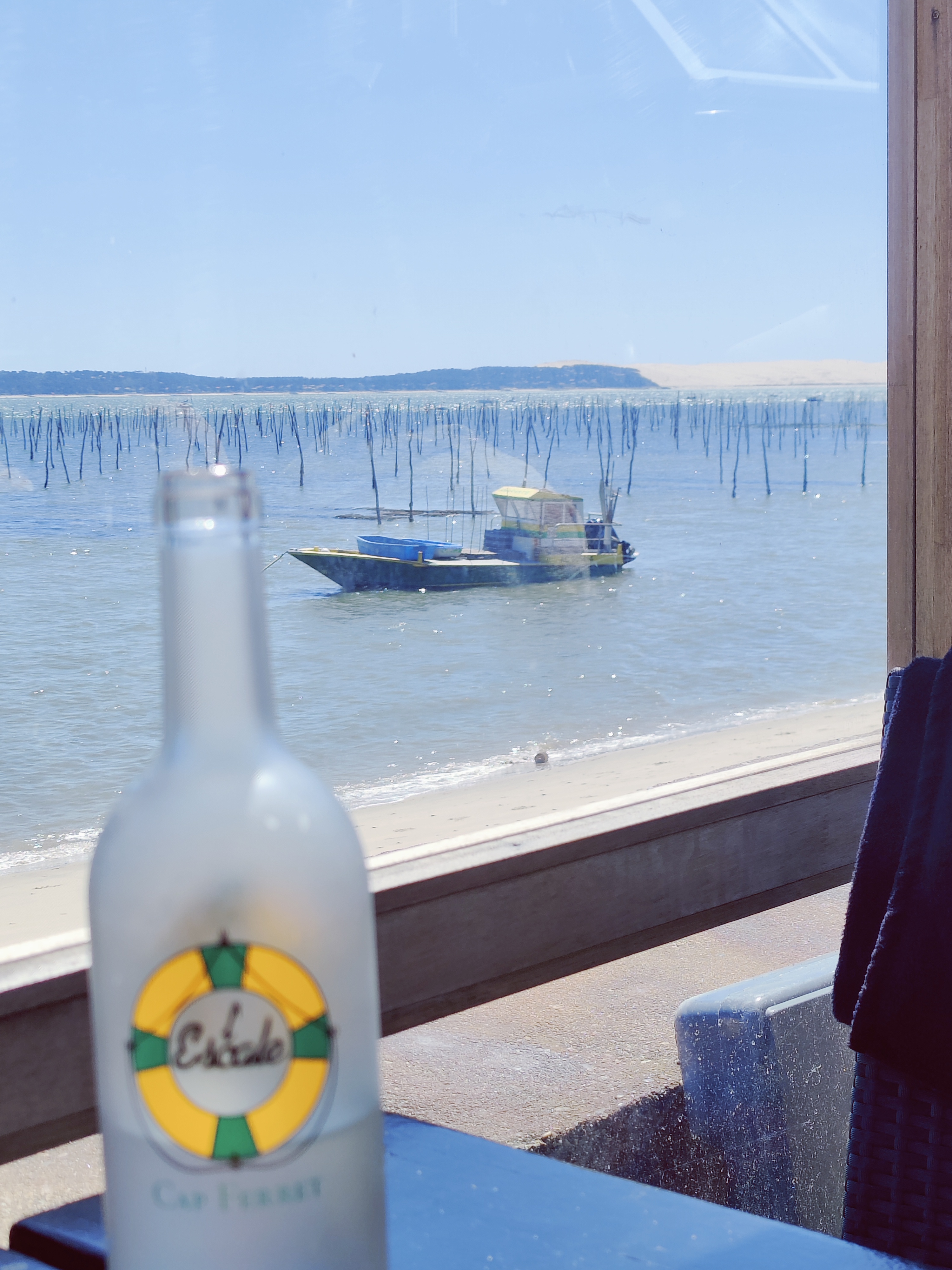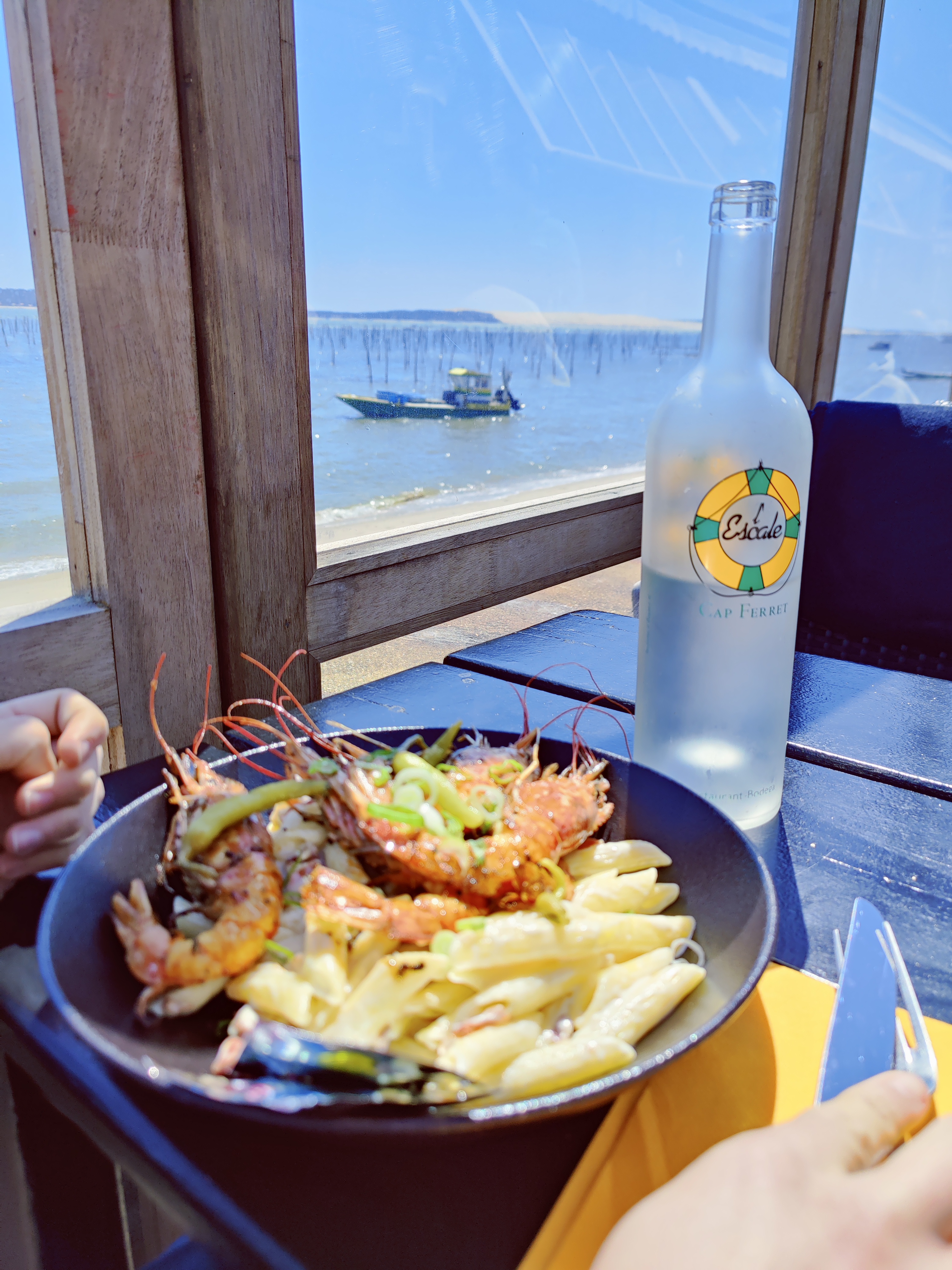 Très bon restaurant en terrasse avec vue sur le bassin d’Arcachon, on se sent coupé du monde le temps du déjeuner