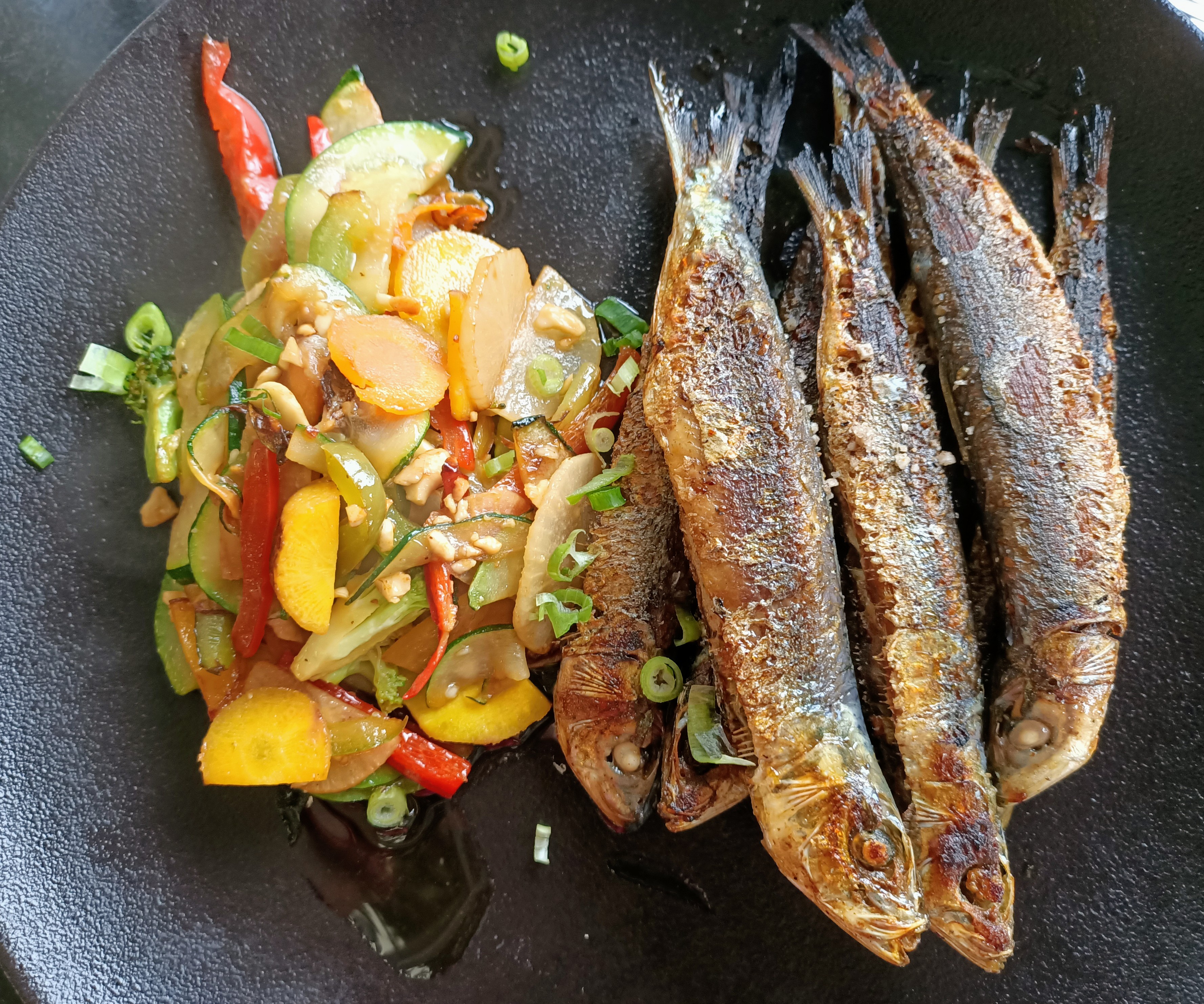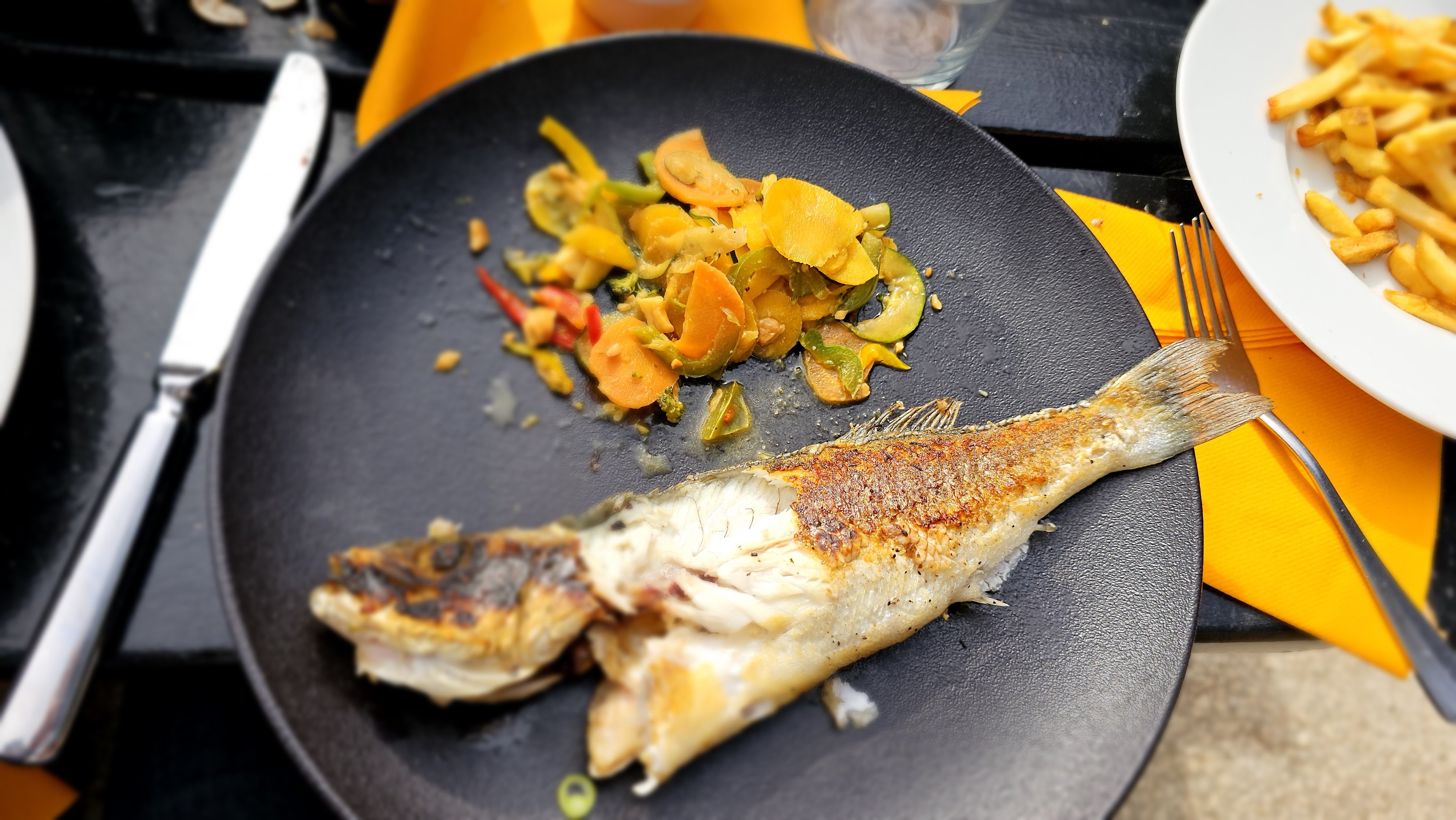 Menu enfant avec le choix de poisson et wok de légumes, très bien, copieux, ça change du steak haché frite ou nuggets.