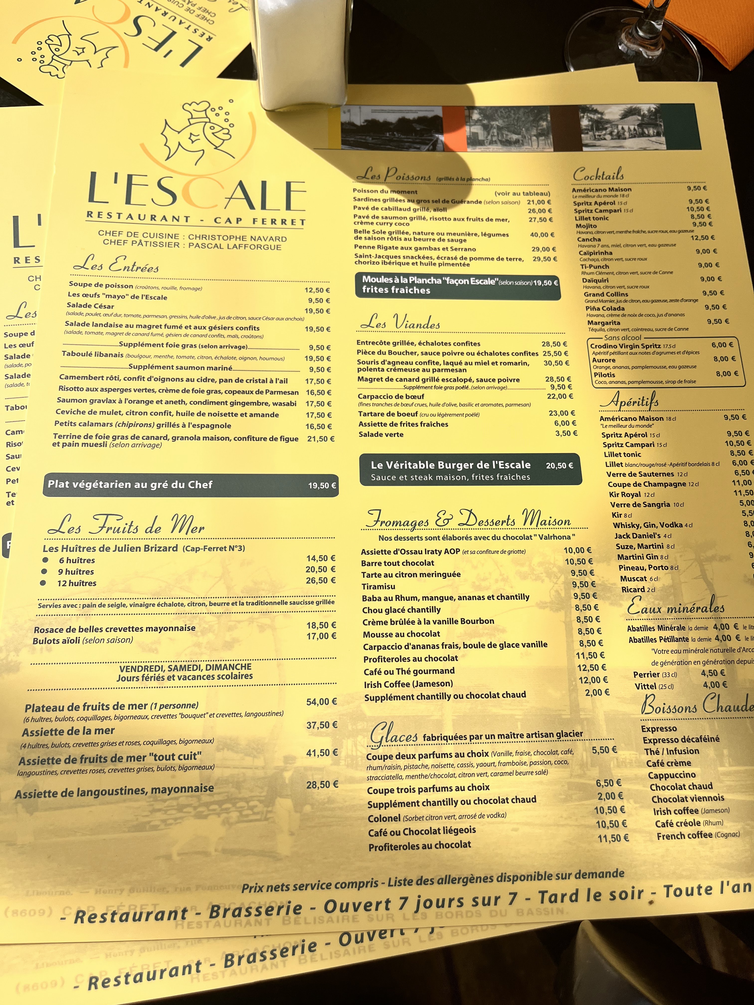 Ambiance de fête à 2 jours de Noël à l'Escale. Serveurs au top cuisine correcte. Un + pour le tataki de thon excellent. A refaire lors d'une prochaine sortie au Cap Ferret.