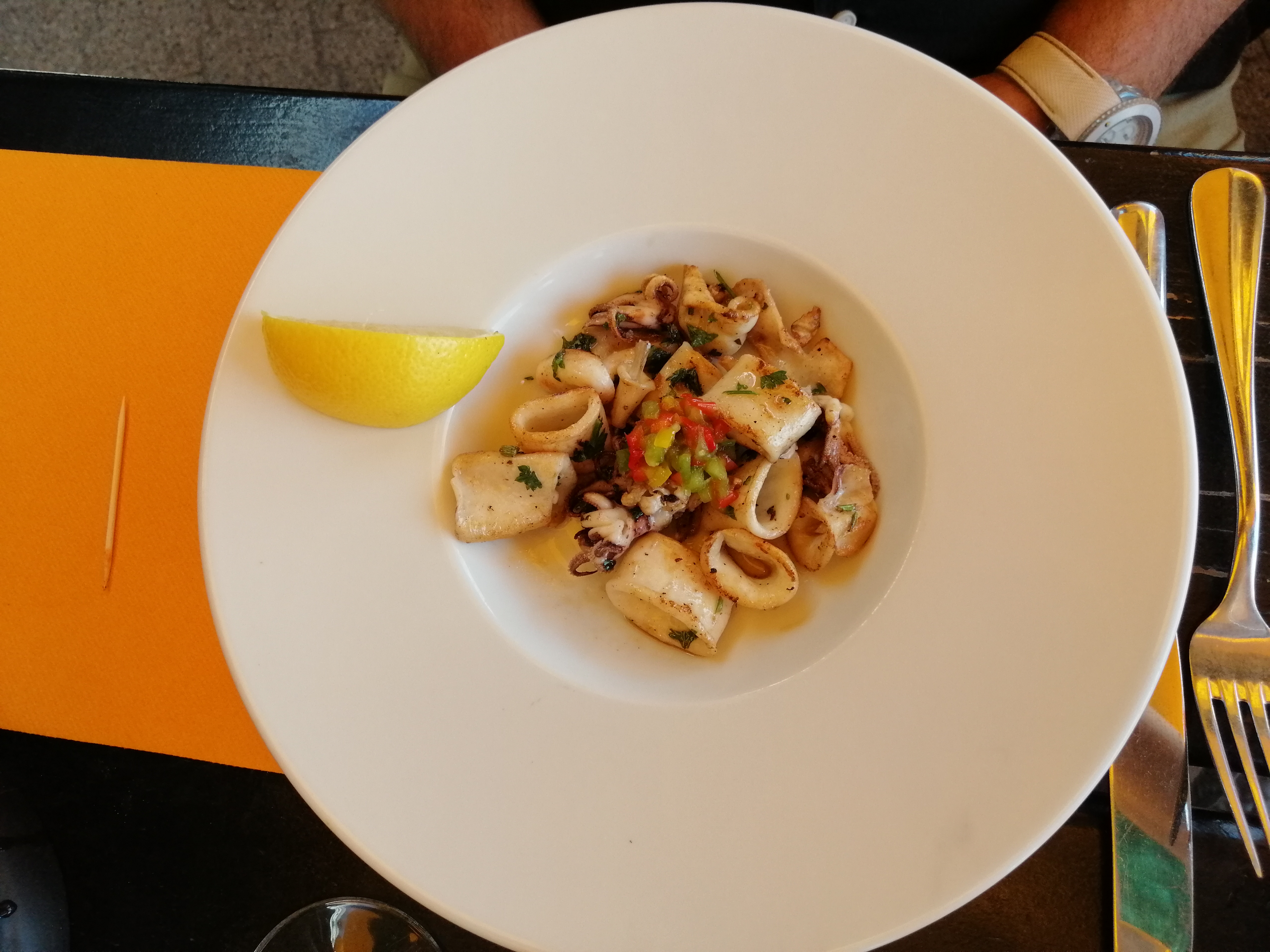 Délicieux et pas d'attente. Le service est hyper bien organisé et les plats sont très bon. Nous étions installés sous la pergola avec le bassin pour décor.