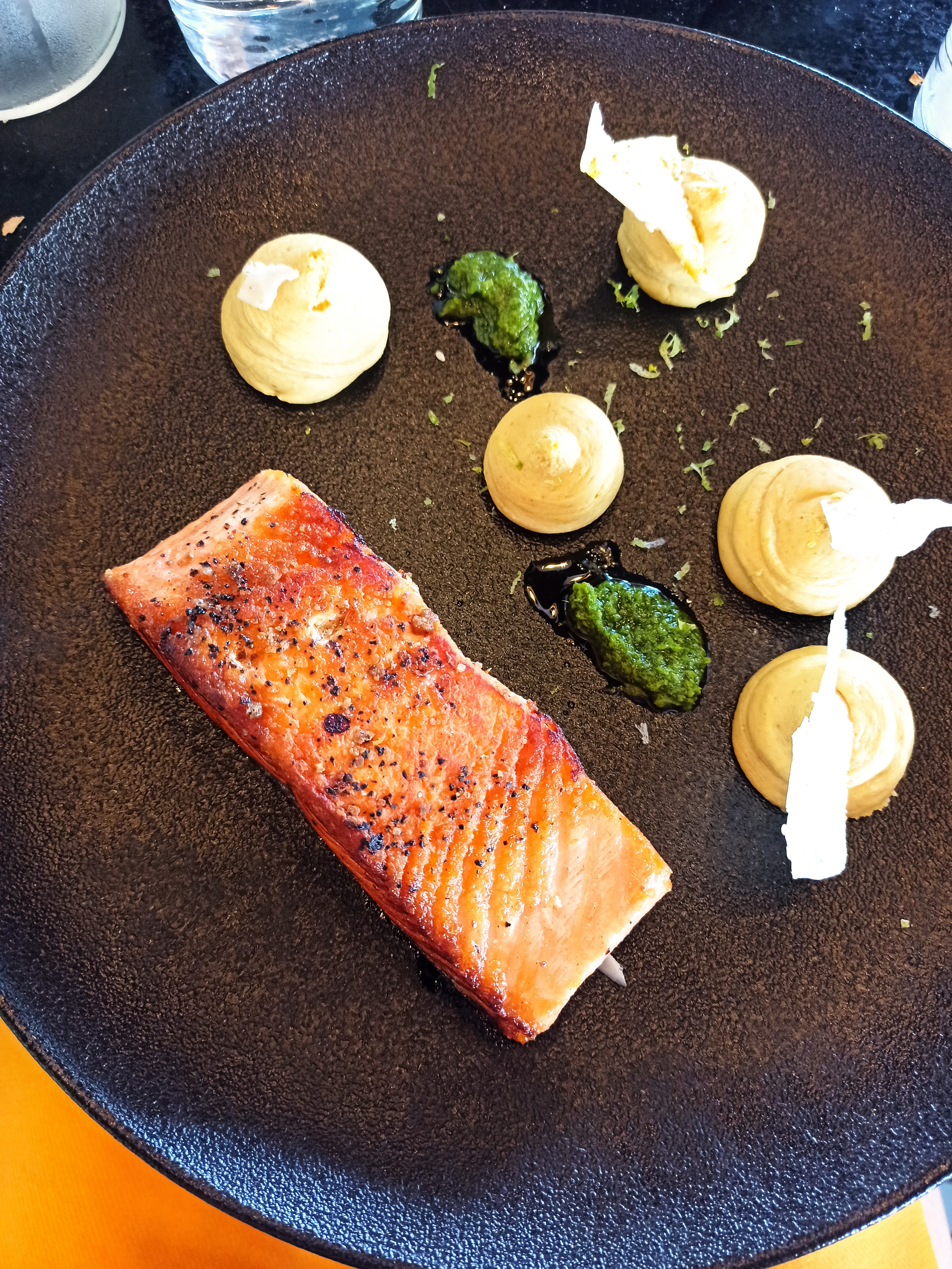 Très bon repas. Un peu coûteux mais vaut son prix pour des plats aussi beaux que bons. Serveurs très sympas. Cependant, des enfants très turbulents, poussaient les chaises, hurlaient.. et aucun serveur ou responsable n’a essayé de calmer les choses, ambiance un peu longue.