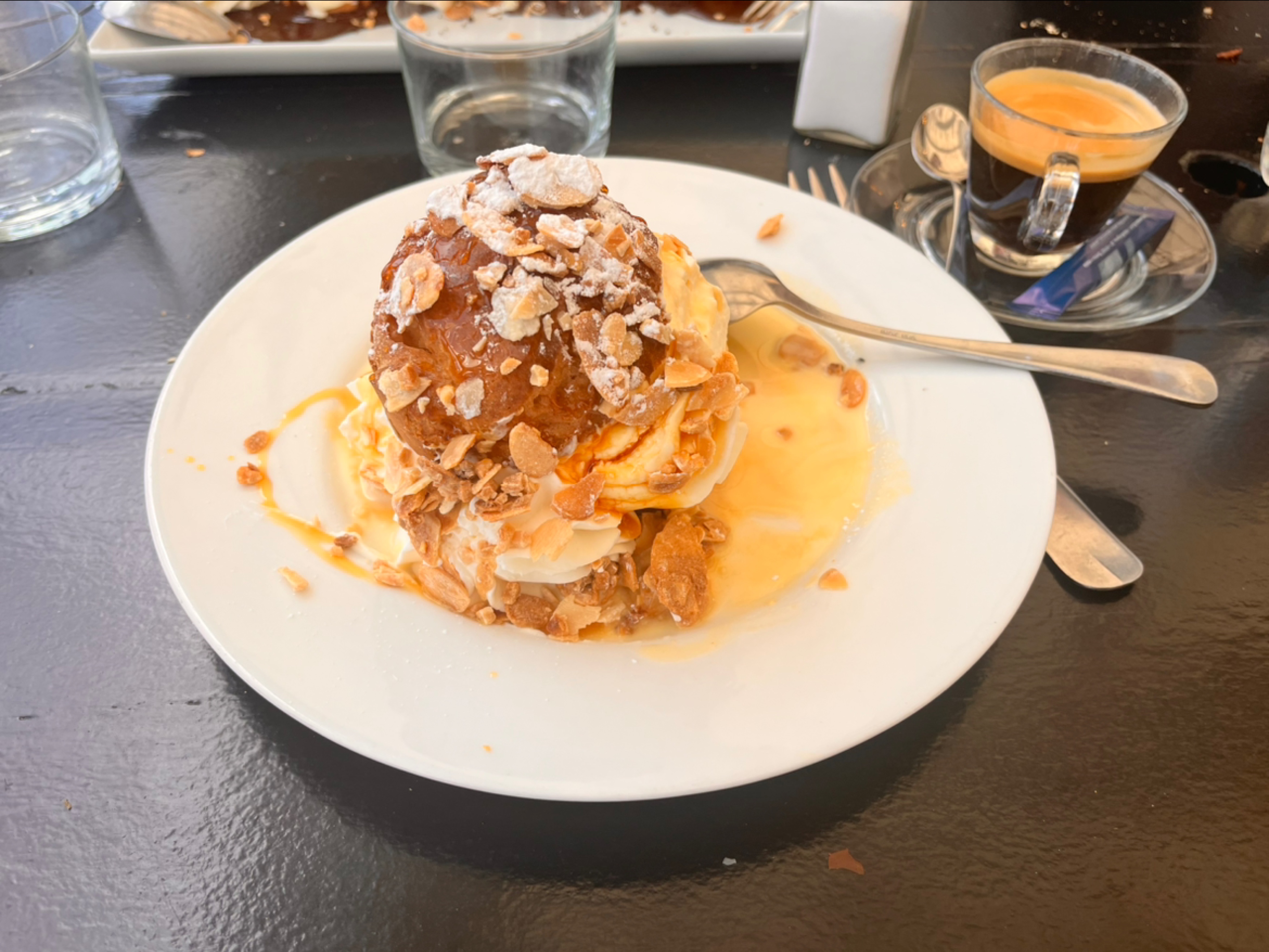 Petite pause gourmande, café gourmand et crêpe ! Cadre très agréable avec vue sur la Dune et serveuse sympathique. Le petit Canelé au caramel top !