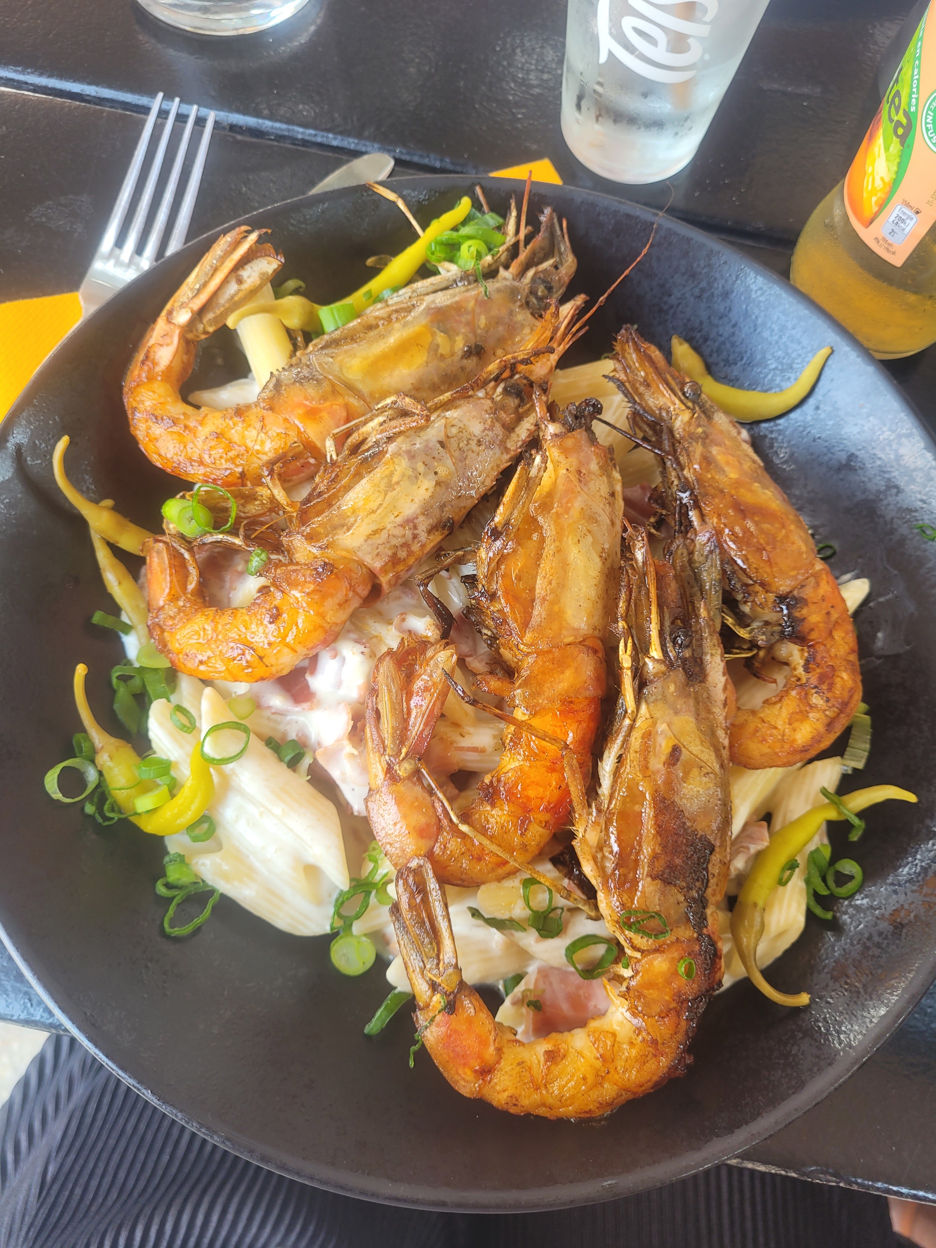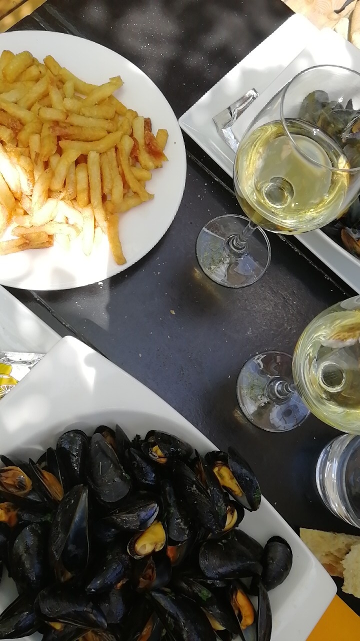 C’est typiquement le restaurant à touristes ! Pourquoi s'être faites bernées alors ?! Je me le demande encore ahahah! Bon moi j'étais heureuse avec mes moules-frites, elles étaient cuites à la plancha avec une persillade et mes frites étaient MAISON (ce qui est clairement un food-faux pas pour tous ceux qui osent encore proposer des surgelées!) Ma soeur par contre a connu une vraie déception avec ses penne aux gambas et jambon de parme ! Les pâtes énormes, trop cuites, baignaient dans une crème fraiche tout droit sorti du pot, jambon grossier, pas d'assaisonnement, bref ! le fiasco !