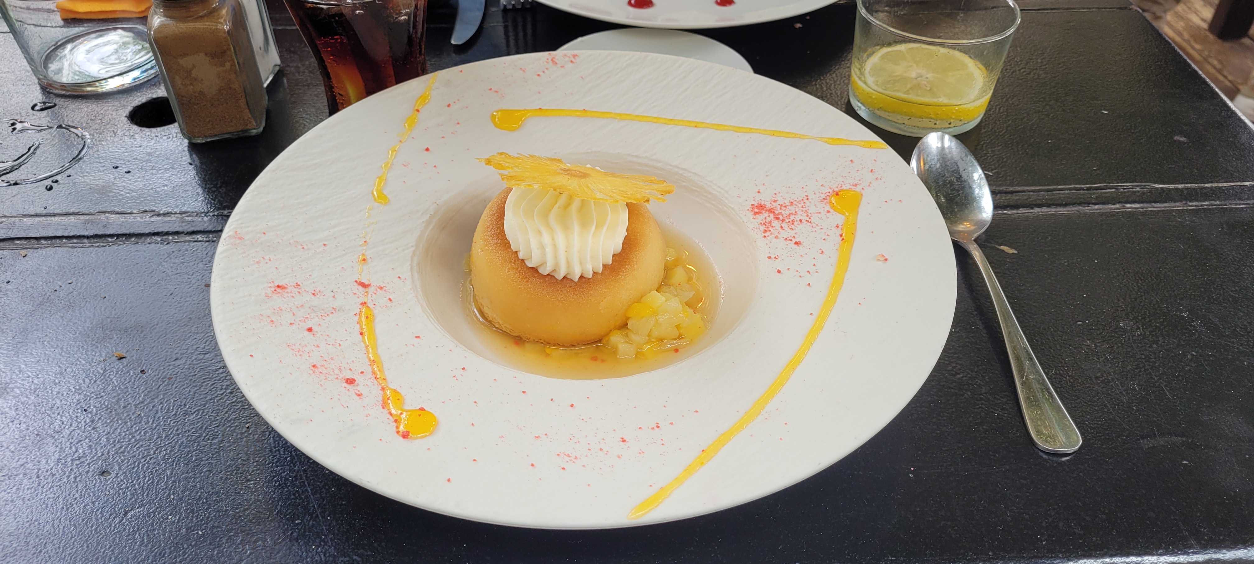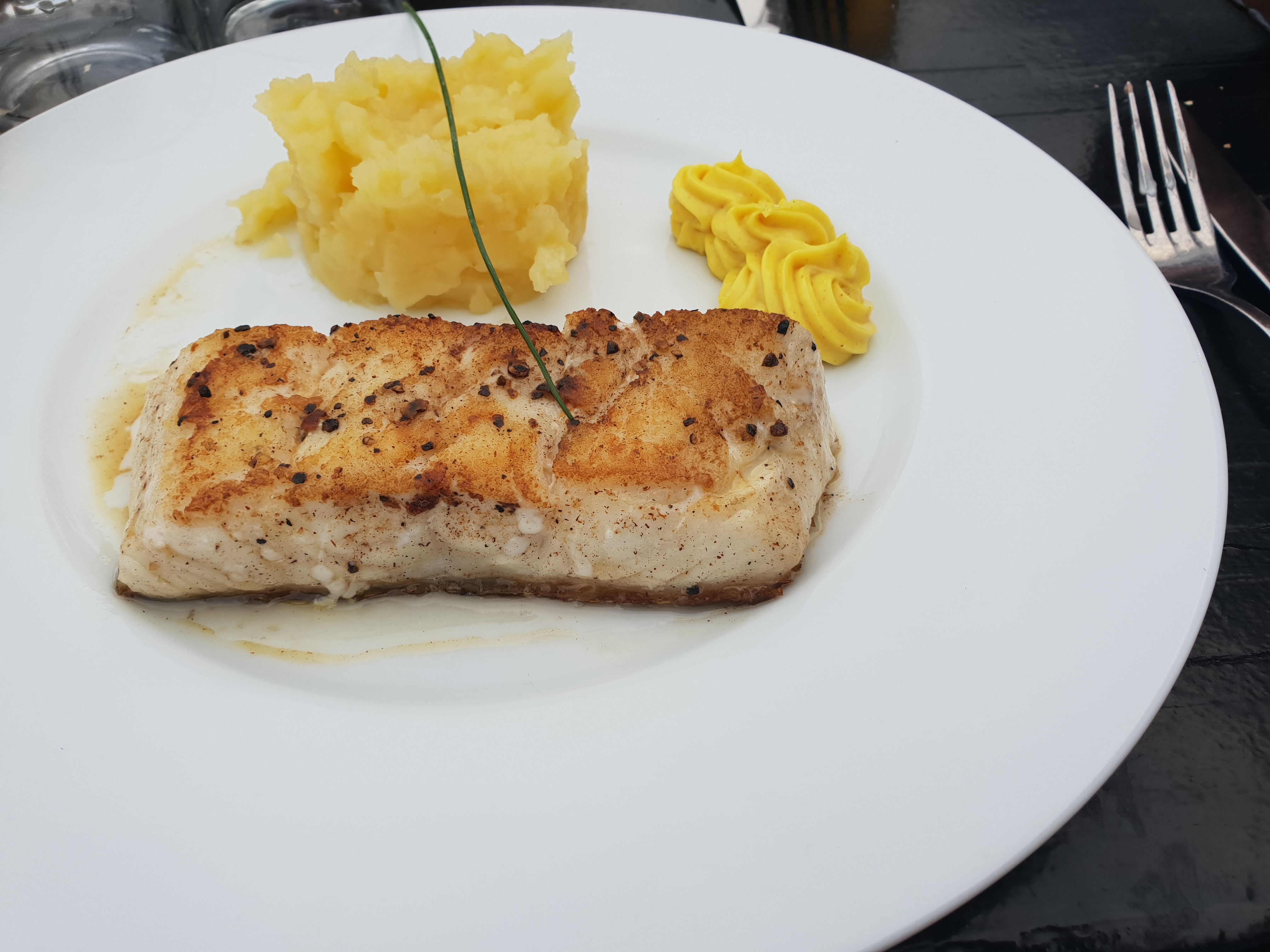 Le cadre est très agréable, cette petite terrasse au bord de l'eau rend le moment paisible, avec une vue superbe. Le repas était bon, mais le saumon gravlax en entrée manquait un peu d'acidité à mon goût, la gelée de citron était plus sucrée, qu'acide, ça plaît ou ça plaît pas. Nous avons du rappeler quelques fois le serveur certainement nouveau pour différents oublis, mais rien de bien grave, nous sommes rarement pressé lorsque nous prévoyons de manger dans un si beau cadre.
