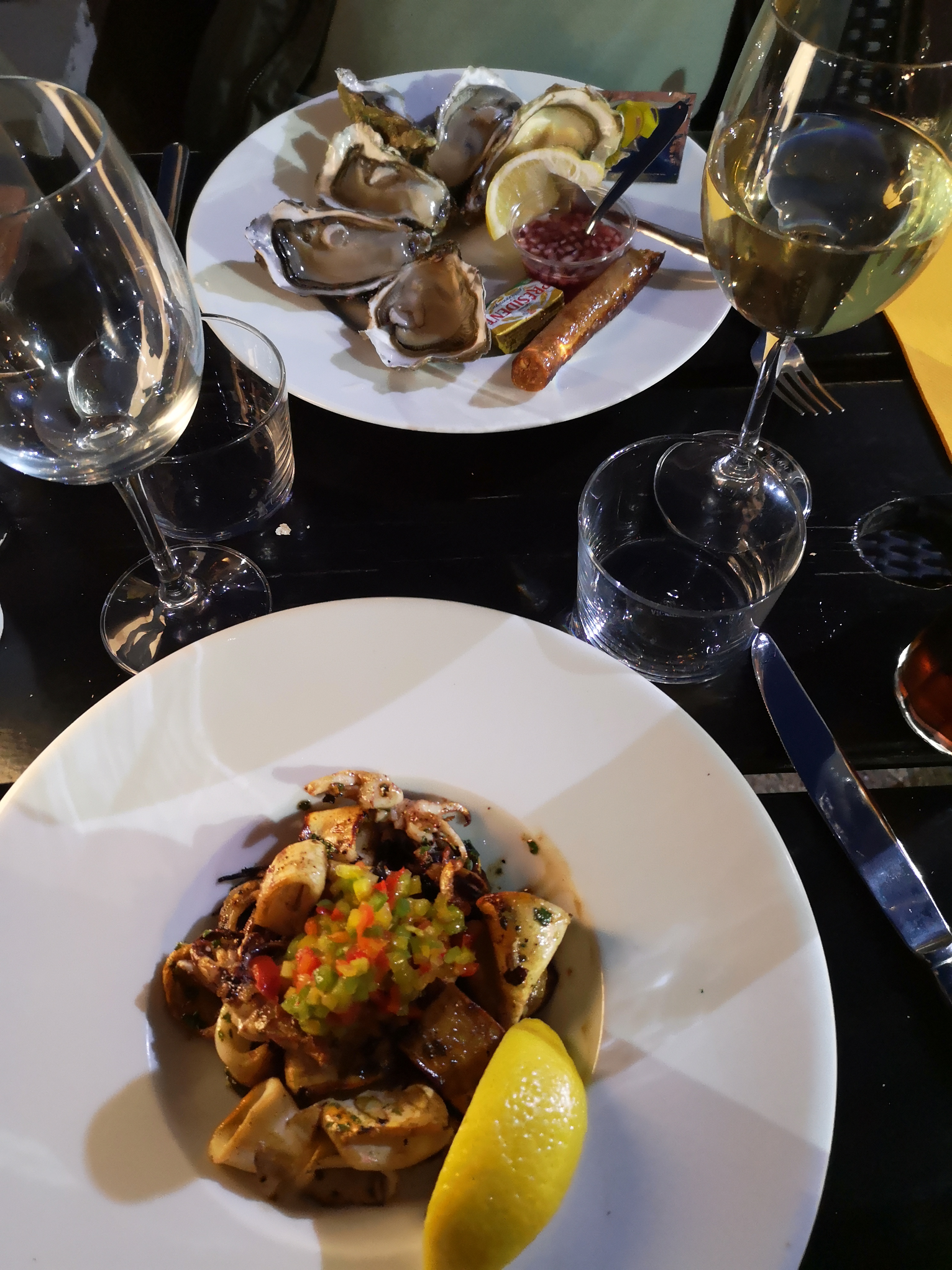 Perfect atmosphere! Fast and hospitable service. But the cuisine could be better.. sorry) La grande assiette avec les créatures marines était si insatisfaisante(