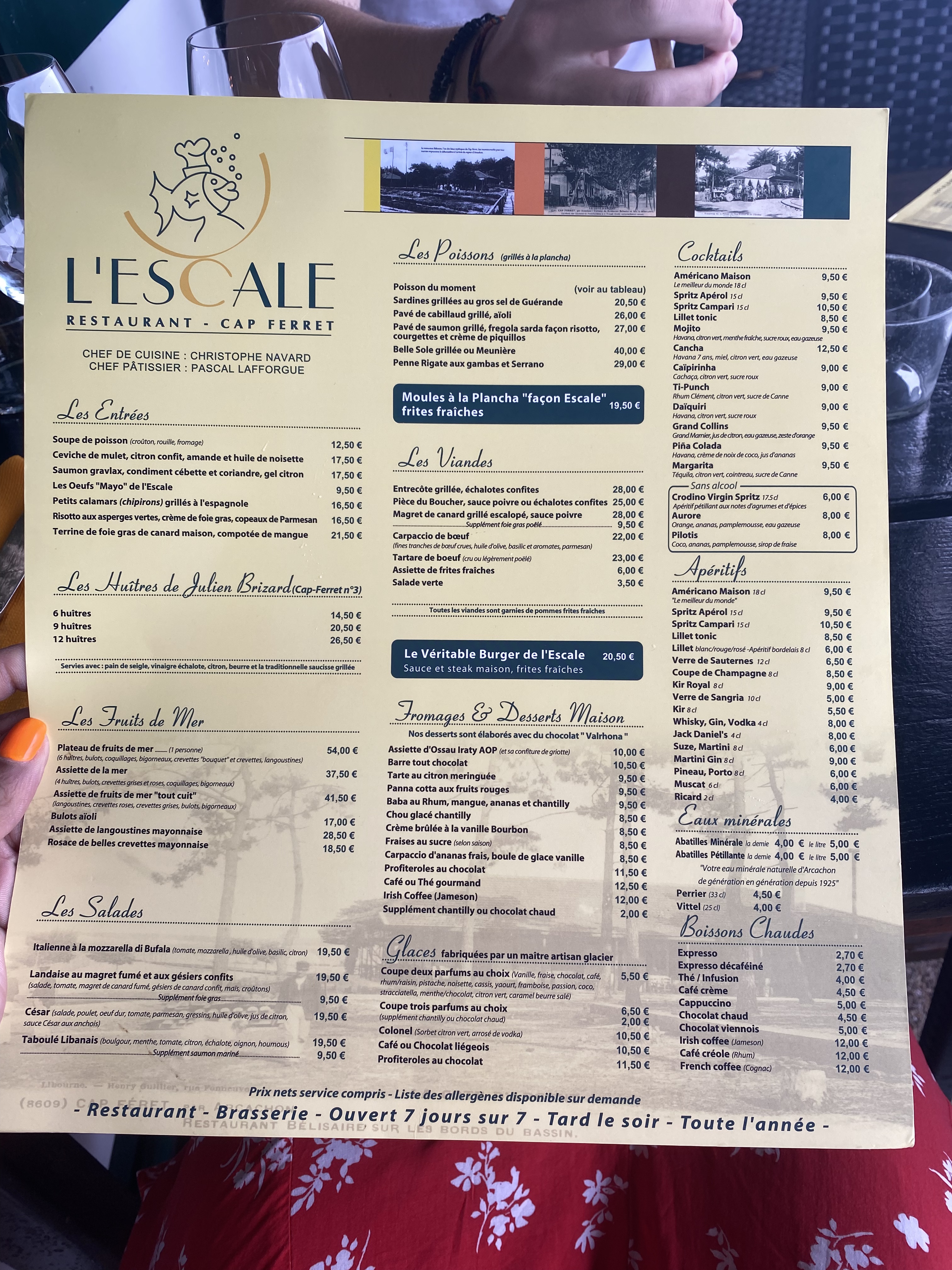 Après de nombreux séjours au Cap Ferret nous avons enfin testé L’Escale!! L’accueil de Saïd au top : souriant, le petit mot et la petite attention sympas!! Les serveuses sont souriantes, aimables et très professionnelles!! Nous avons déjeuné au bord du bassin, cadre magnifique, et très bien mangé! Mention spéciale pour les Moules à la plancha et la Varre tout chocolat ! Hâte de revenir !!! Julie et Gaylord