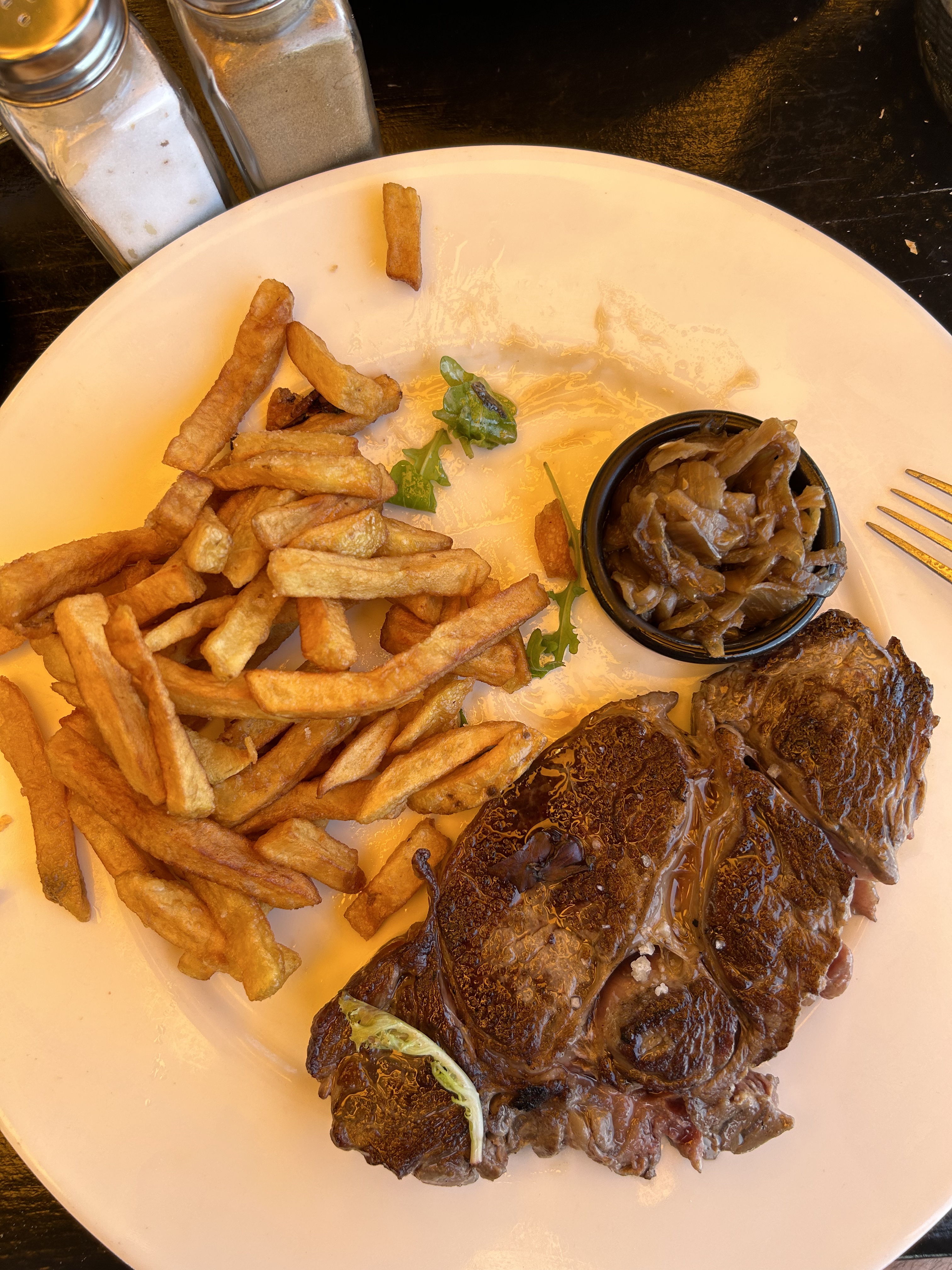 Entrecôte très bien Sole meunière très bien Garnitures super SAUF les frites laisse à désirer
