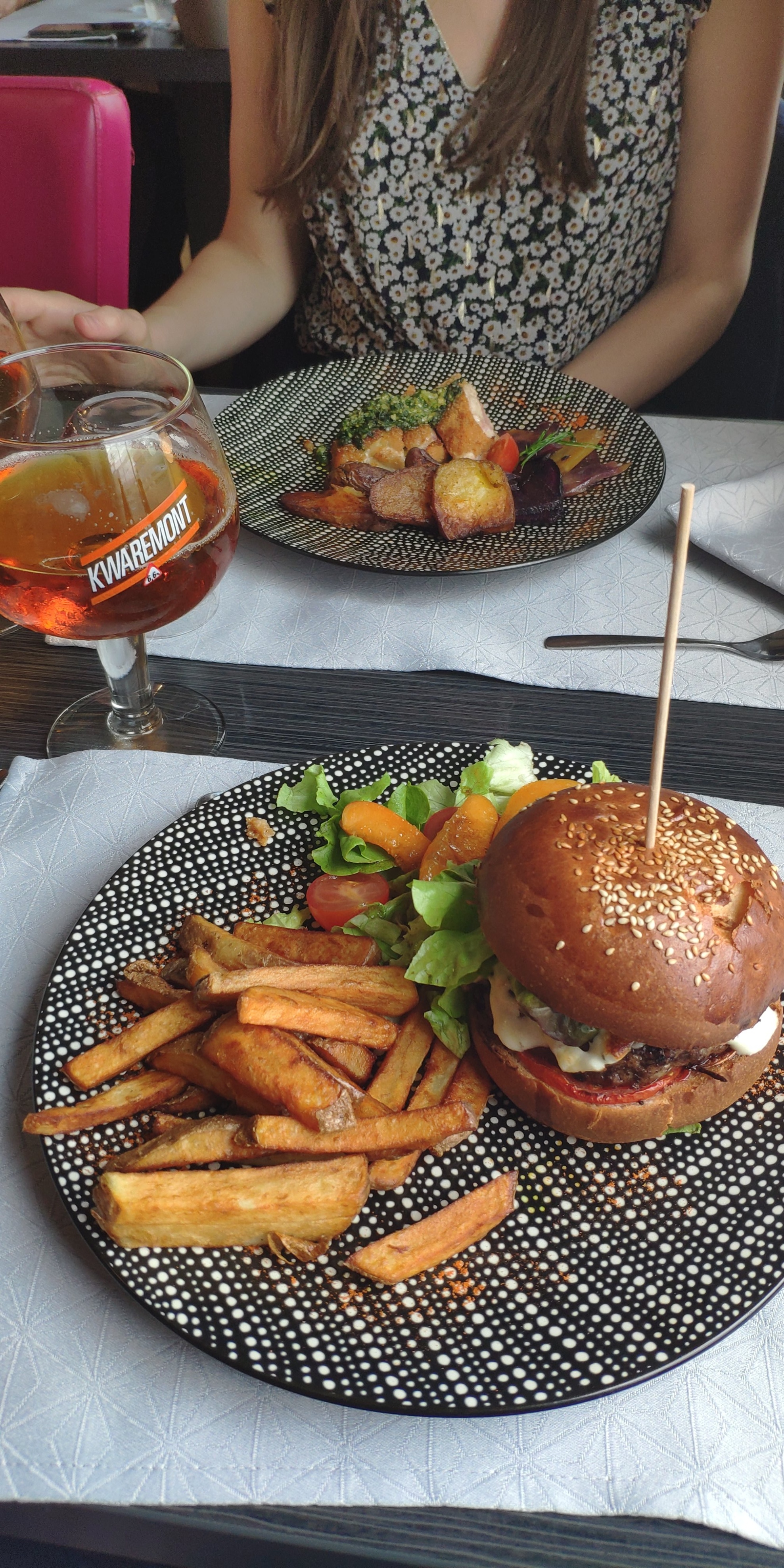 Bière pression wieze excellente. A ne pas manquer. Plat consistant. Belle fête des mamans.