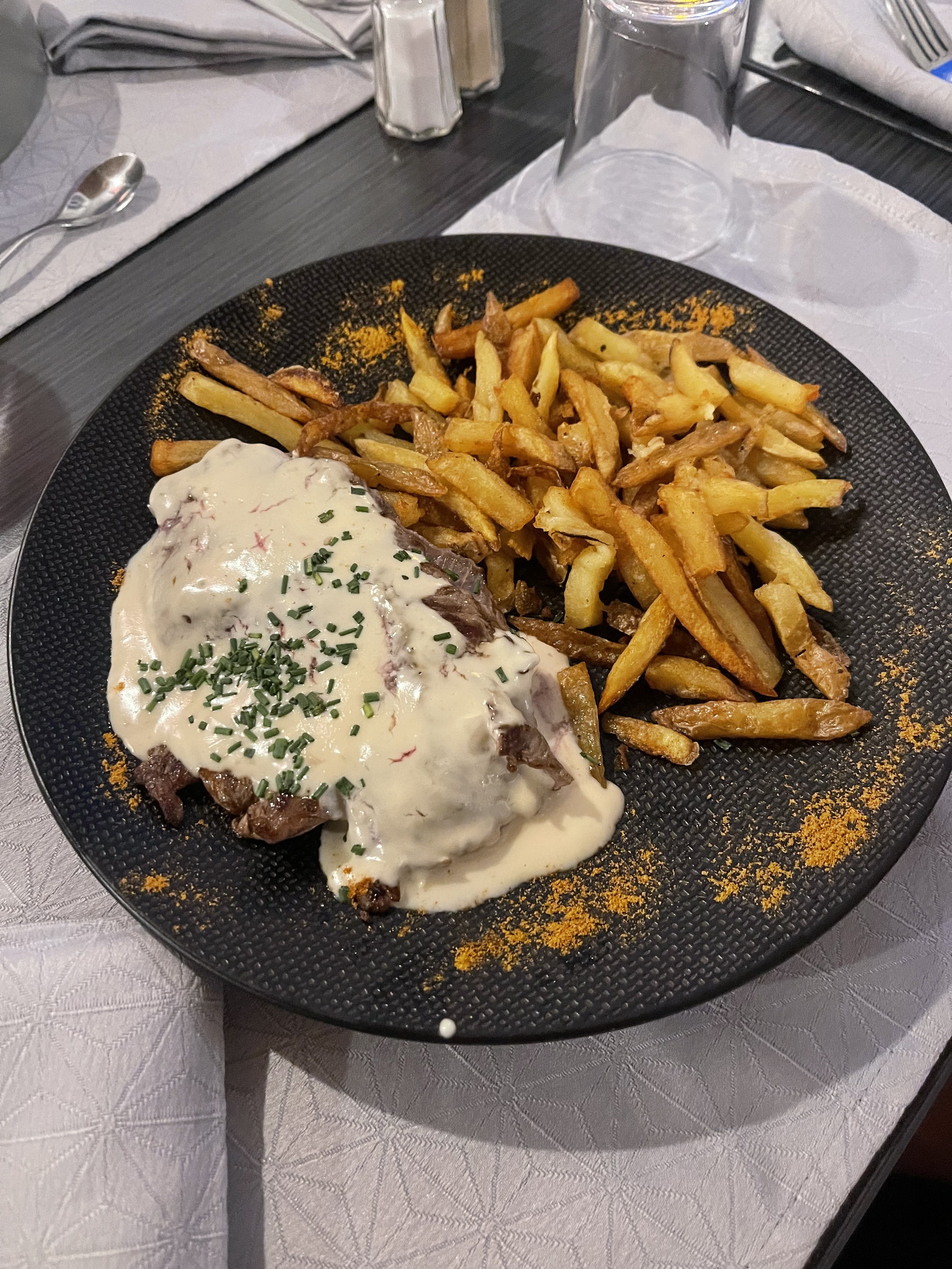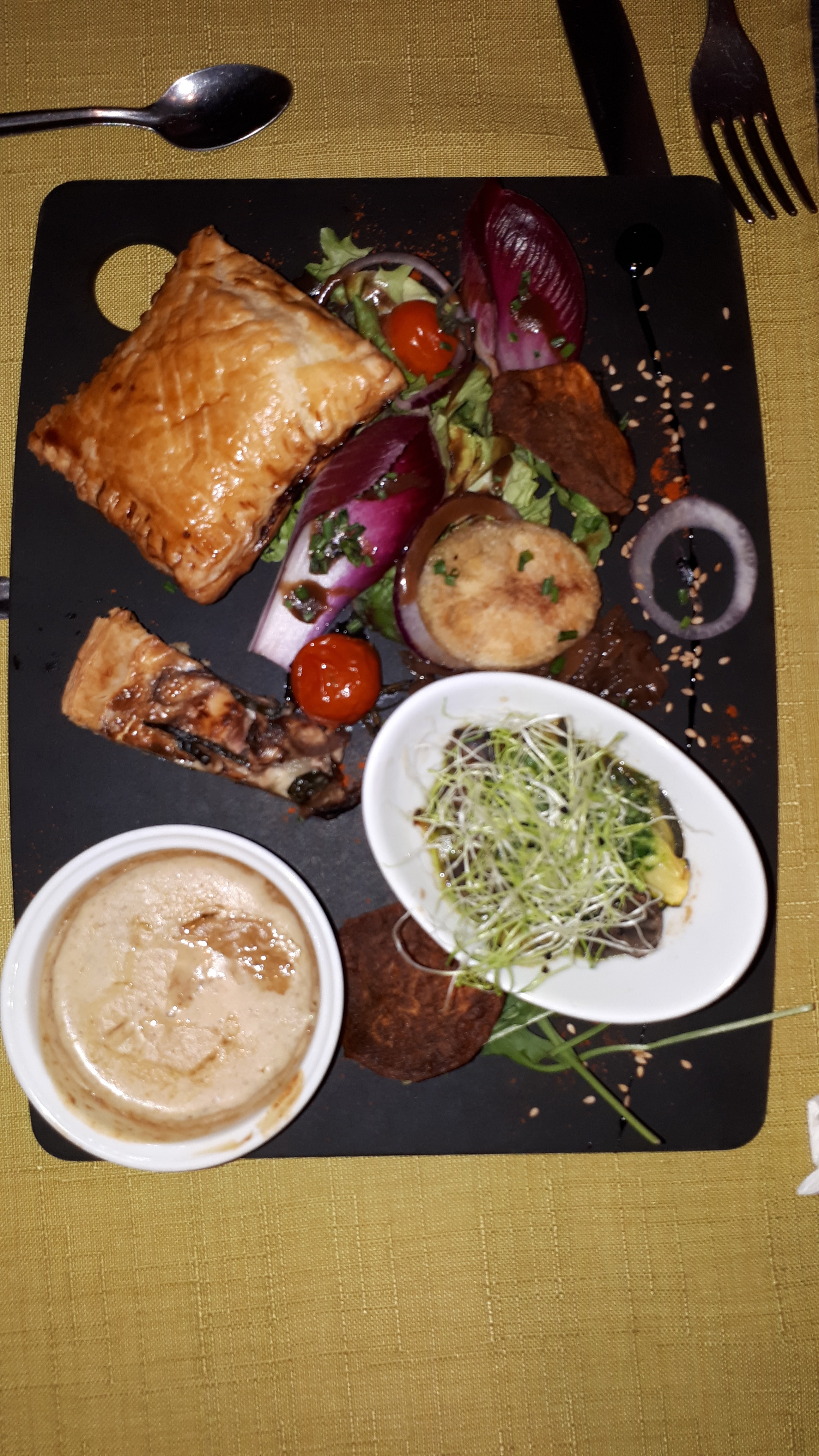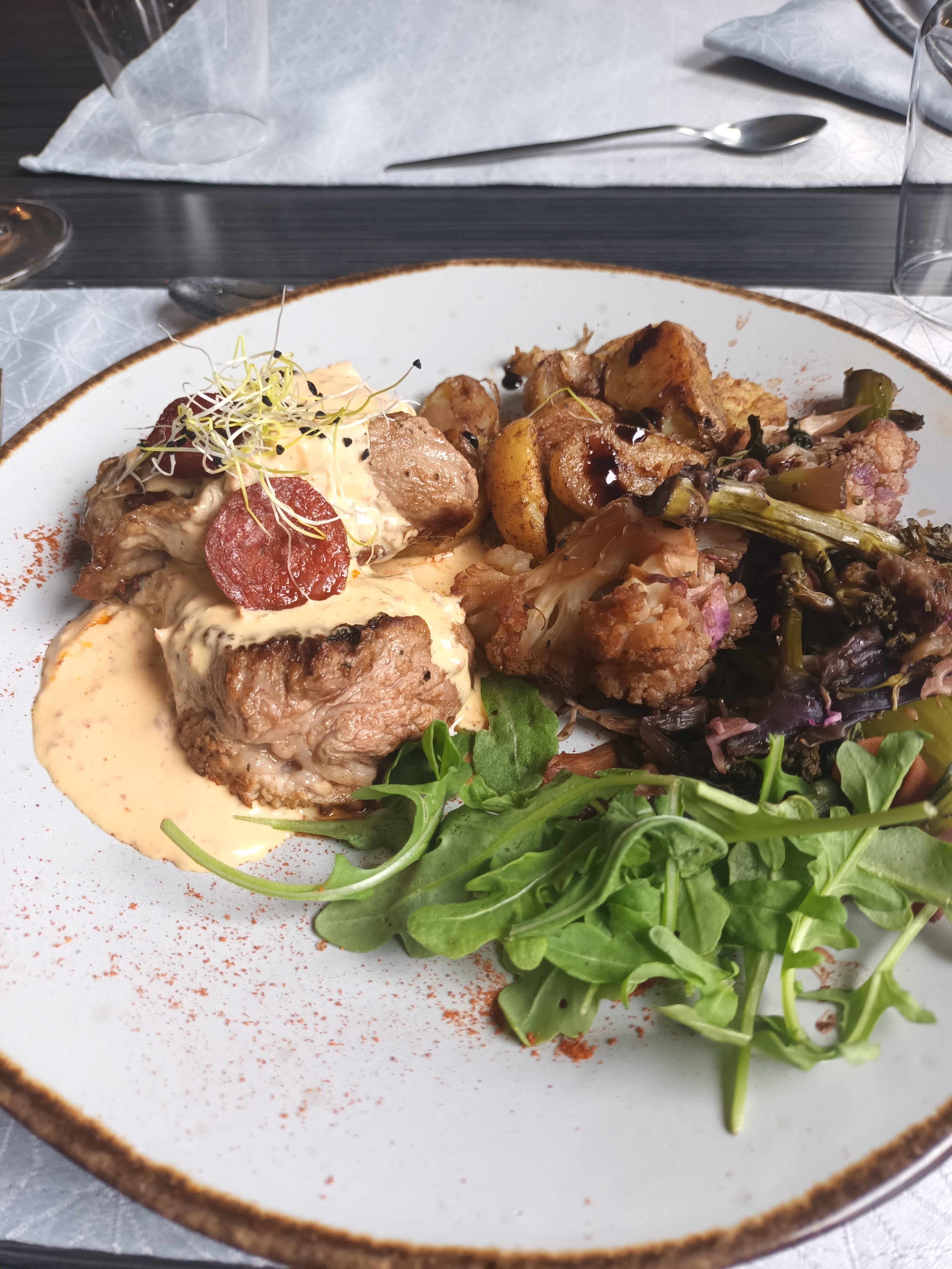 Concept intéressant. Plat moyen dans l'ensemble pour le prix. Un peu déçue de la remarque personnel, venu avec mon père handicapé qui mange peu, ils n'ont pas voulu qu'il prenne une entrée comme plat, on nous a dit si vous prenez une entrée vous devez prendre un plat obligatoirement jamais vu ça.. Même pas sur que ce soit autorisé, Mais nous avons passé un bon moment en famille malgré ce désagrément.