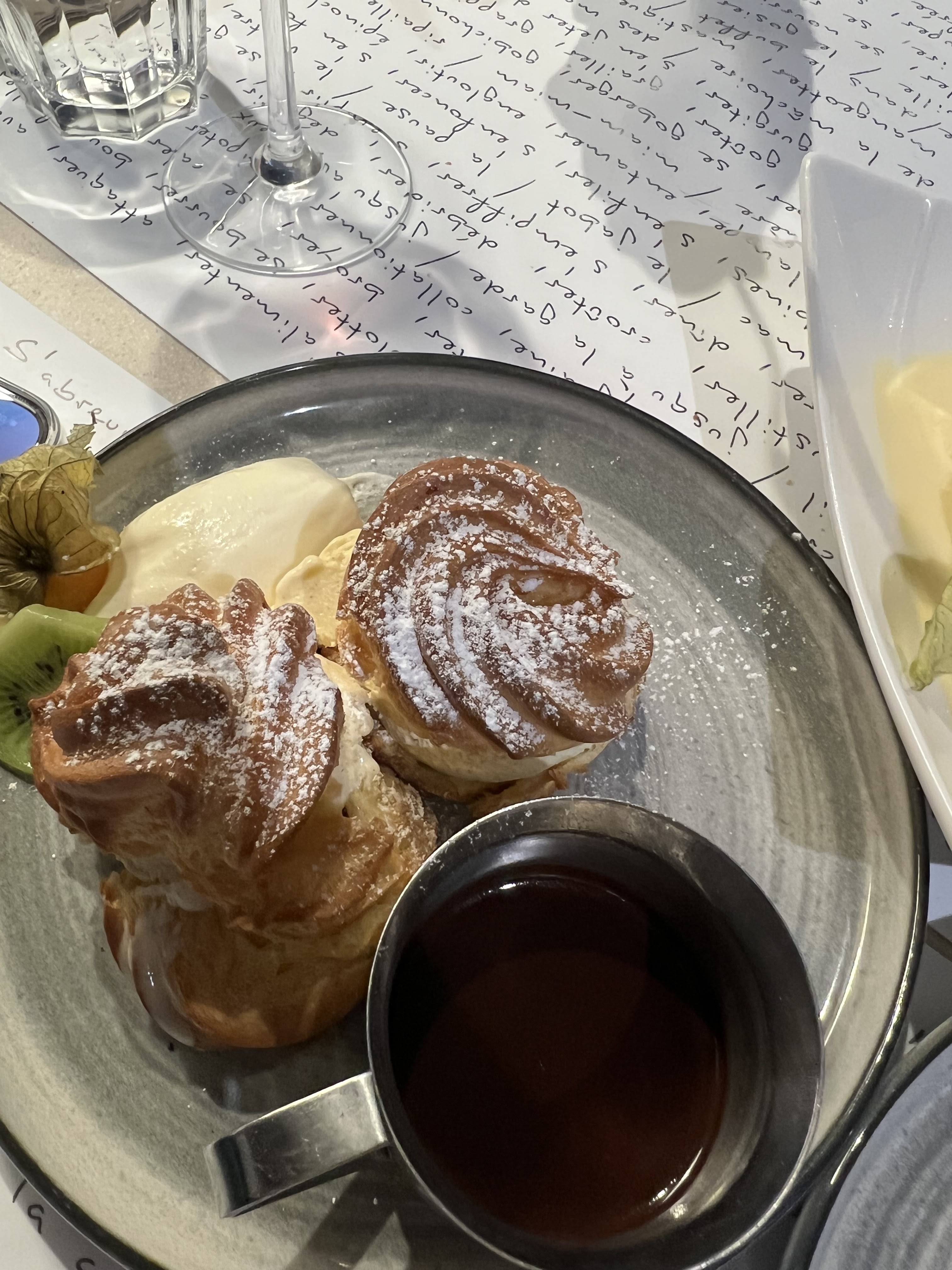 Très bon accueil , repas excellent , enfin des profiterolles en dessert avec pâte à choux maison bravo ! Petite serveuse dynamique et très agréable très polie ...nous reviendrons !!!