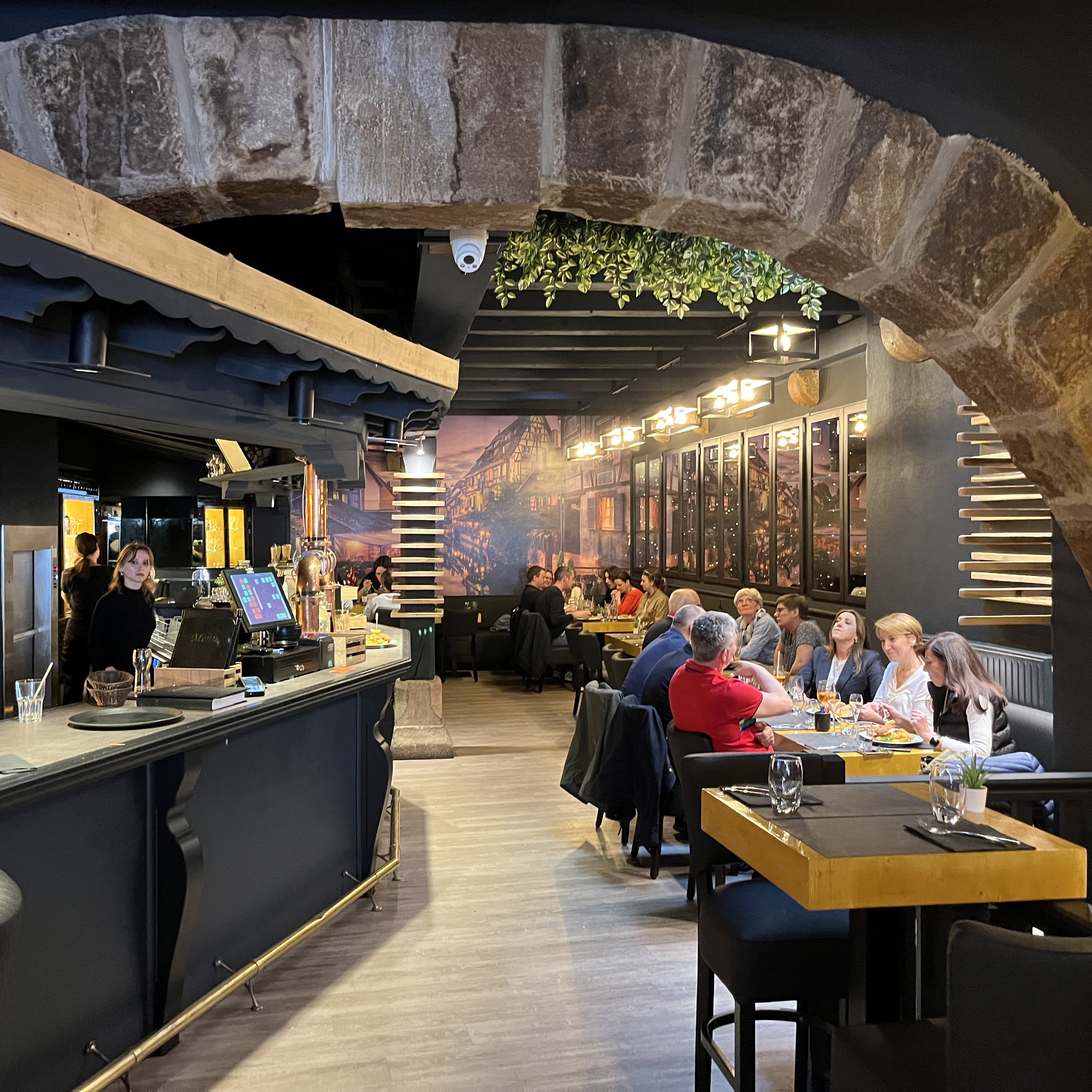 Bon restaurant bien situé au coeur de ville. L'équipe est très aimable et prend soin de la clientèle. Les plats sont bons quoique un peu salés (normal quand on prend du munster et de la poitrine mais n'étant pas Alsaciens, nous n'avons pas de référence) L'ambiance et le décor sont assez modernes mais cela reste intimiste et cosy. On s'y sent bien.