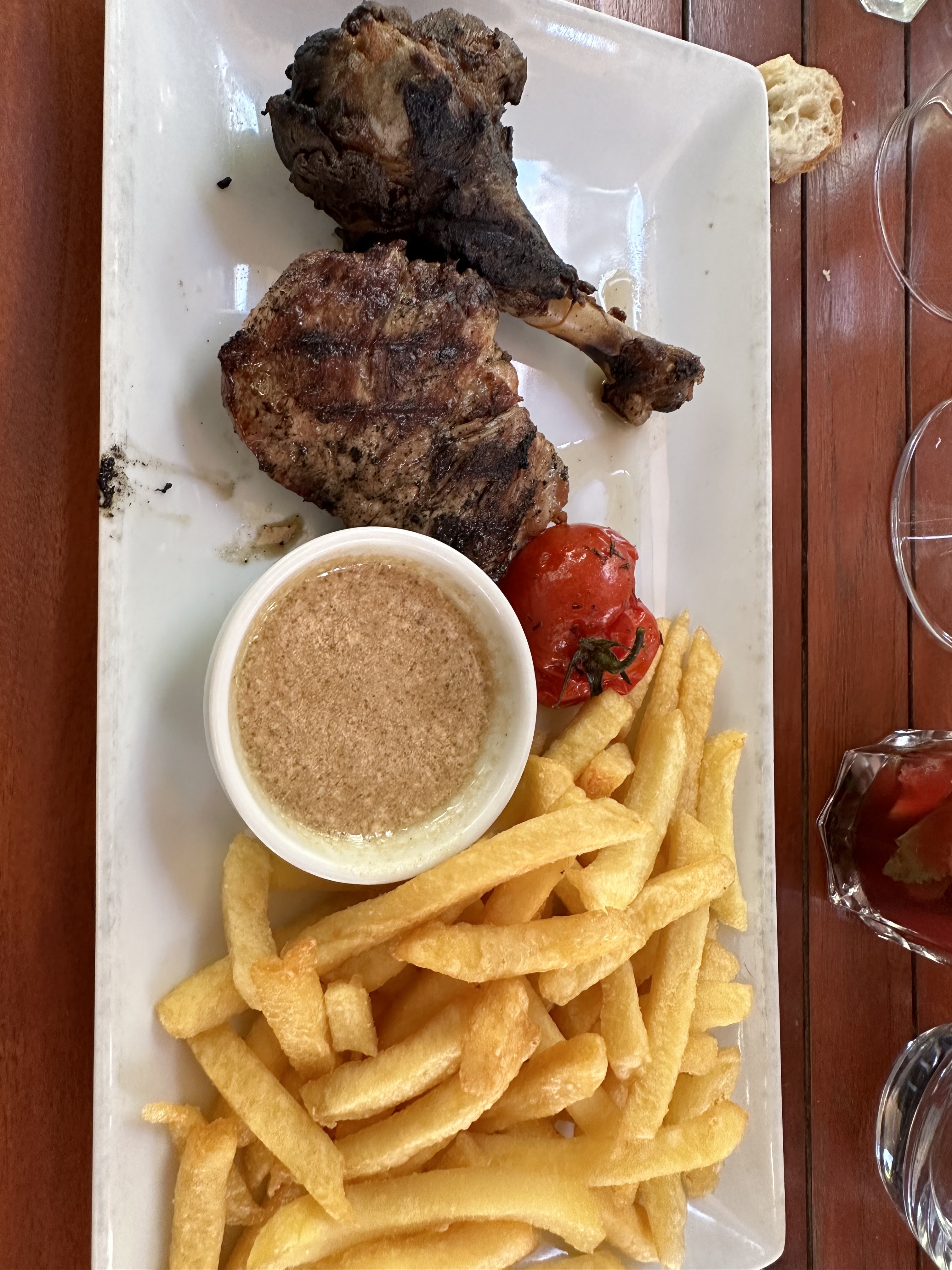 Serveur qui répond mal. Pas de sa faute je pense plutôt que le service est en sous effectif. Dommage cela fait trop resto à touriste alors qu'il ne manquerai 0as grand chose pour faire un bon restaurant