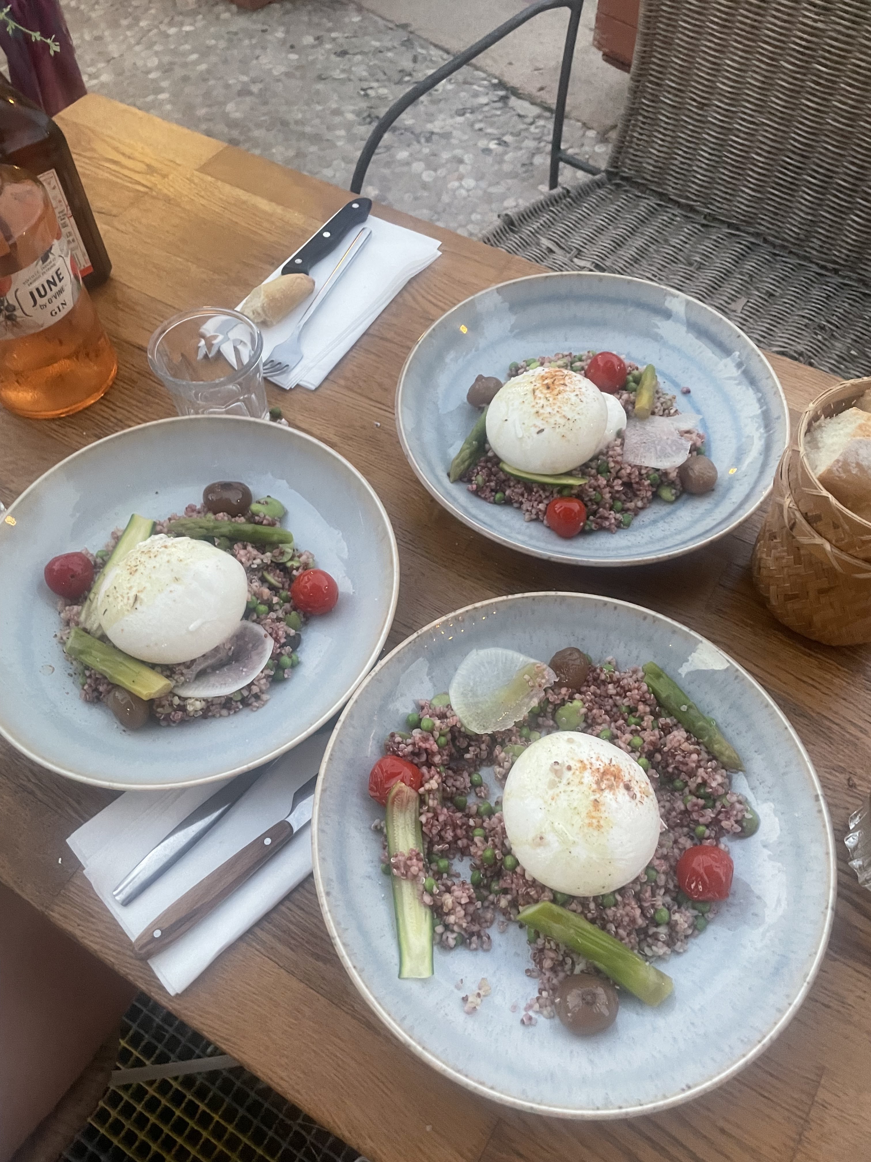 Resto choisi au hasard d'une balade le 16/08/23. Son côté atypique et bohème nous a vraiment plu. La carte proposée était très attirante donc nous nous sommes assis... L'accueil a été plus que satisfaisant, tout le personnel était très gentil, serviable et aux petits soins pour nous... La cuisine est très bonne, bon rapport qualité-prix... Nou y retournerons avec grand plaisir et sans hésitation... Tout y est top, de la déco à l'assiette en passant par la gentillesse du personnel... Merci pour tout et pour avoir accepté de changer ma fêta en burrata... Isabelle et ses amis...