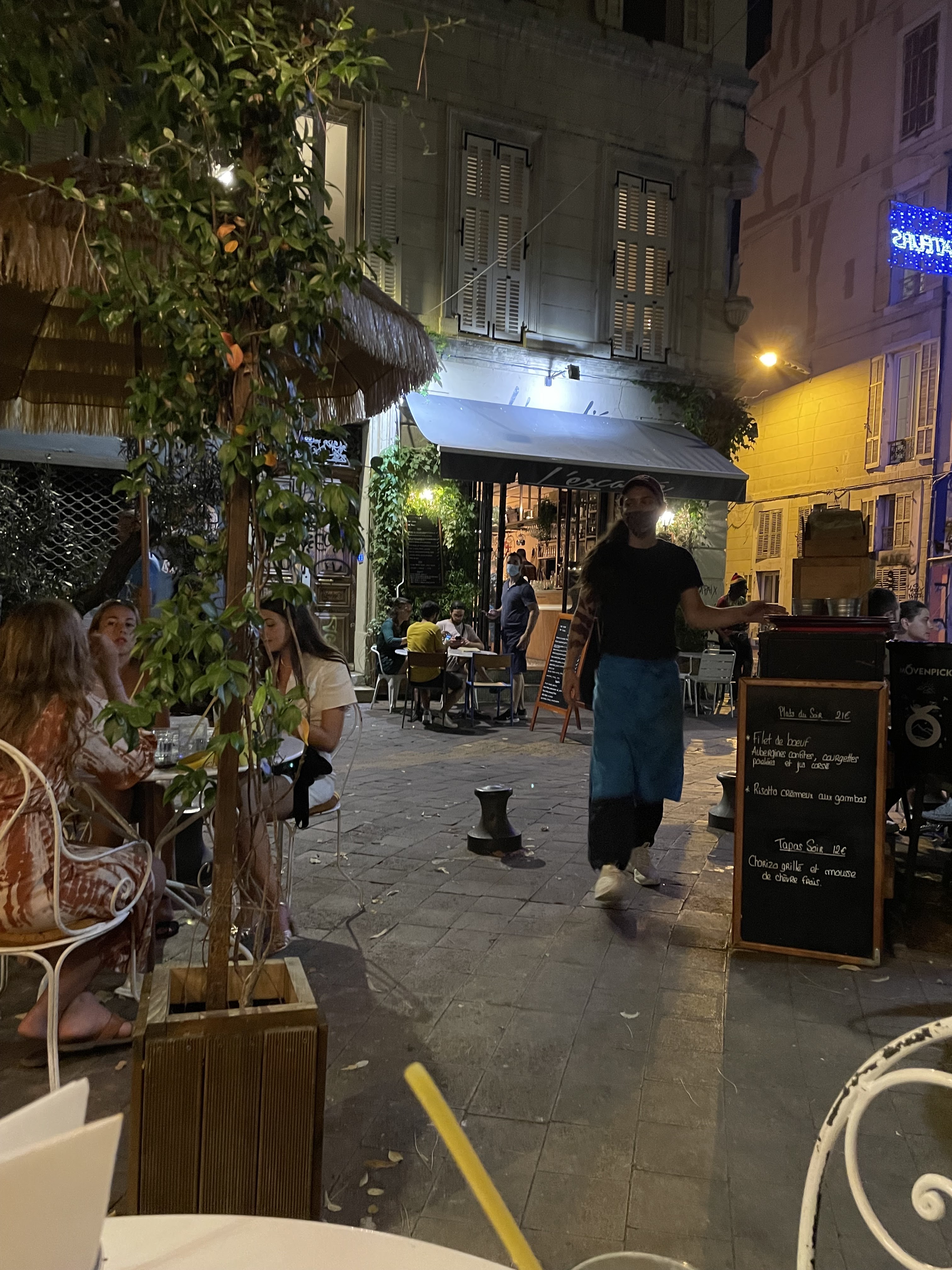 Je n'ai pas encore eu l'occasion de prendre un repas dans ce restaurant situé tout près des escaliers du Cours Julien, haut lieu du Street art marseillais. Pour apprécier pleinement l'endroit, il ne faut pas être allergique aux graffitis et à l'ambiance particulière qui règne sur la place. Avec des collègues, nous avons pris des cocktails en terrasse avec une assiette de charcuteries et de fromages. J'ai bien aimé le cocktail Cosmopolitan à base de Vodka, liqueur d'écorces d'orange, cranberry et citron vert. Nous avons trouvé que les produits étaient de qualité. Le service était accueillant et efficace. Ça nous a donné envie d'y revenir bientôt.