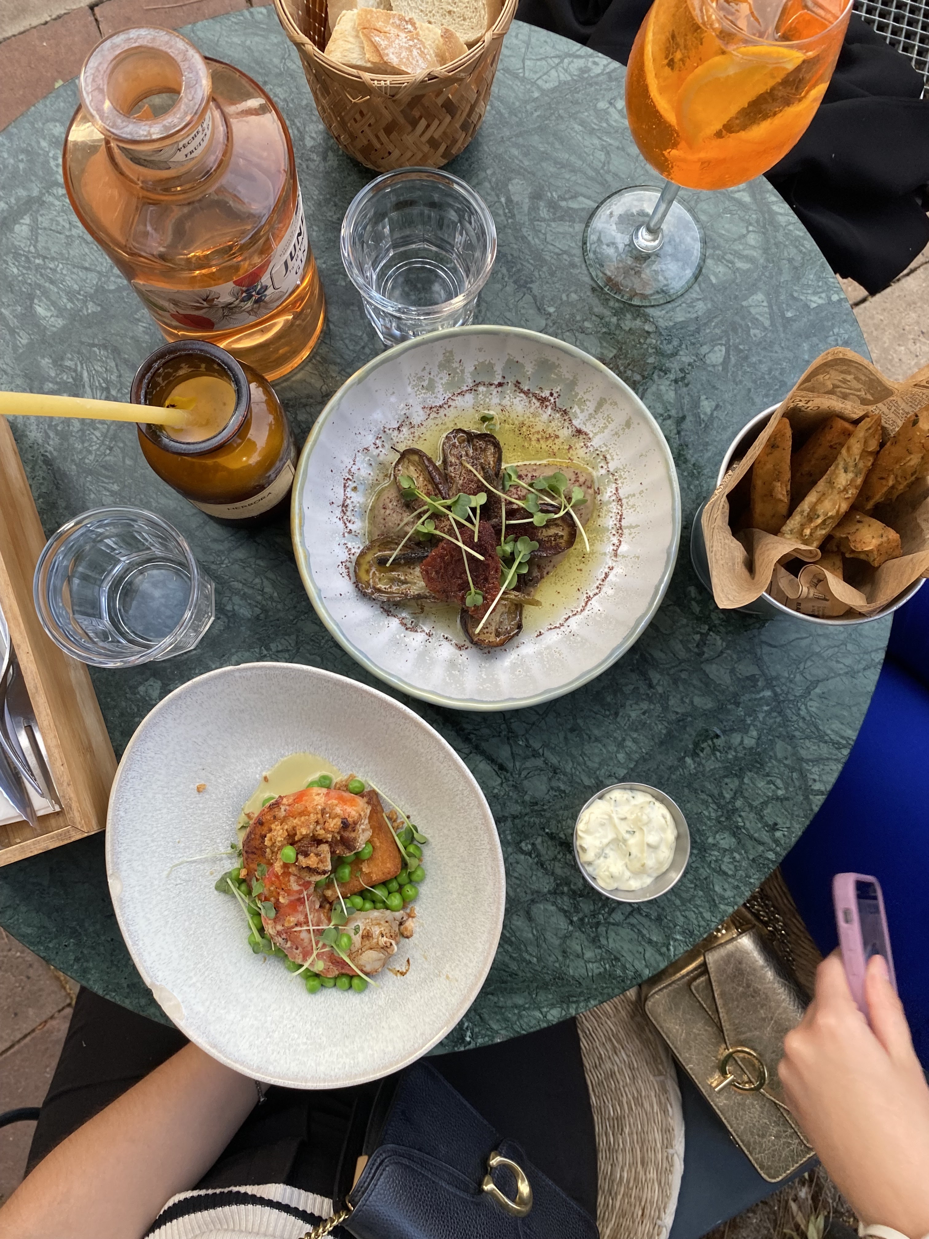 On a pris des cocktails et des tapas à partager : burrata, tempura de gambas, panisses… c’était très bon même si un peu cher. Les cocktails étaient aussi excellents. Pour une soirée romantique ou entre amis, l’endroit est très sympa.