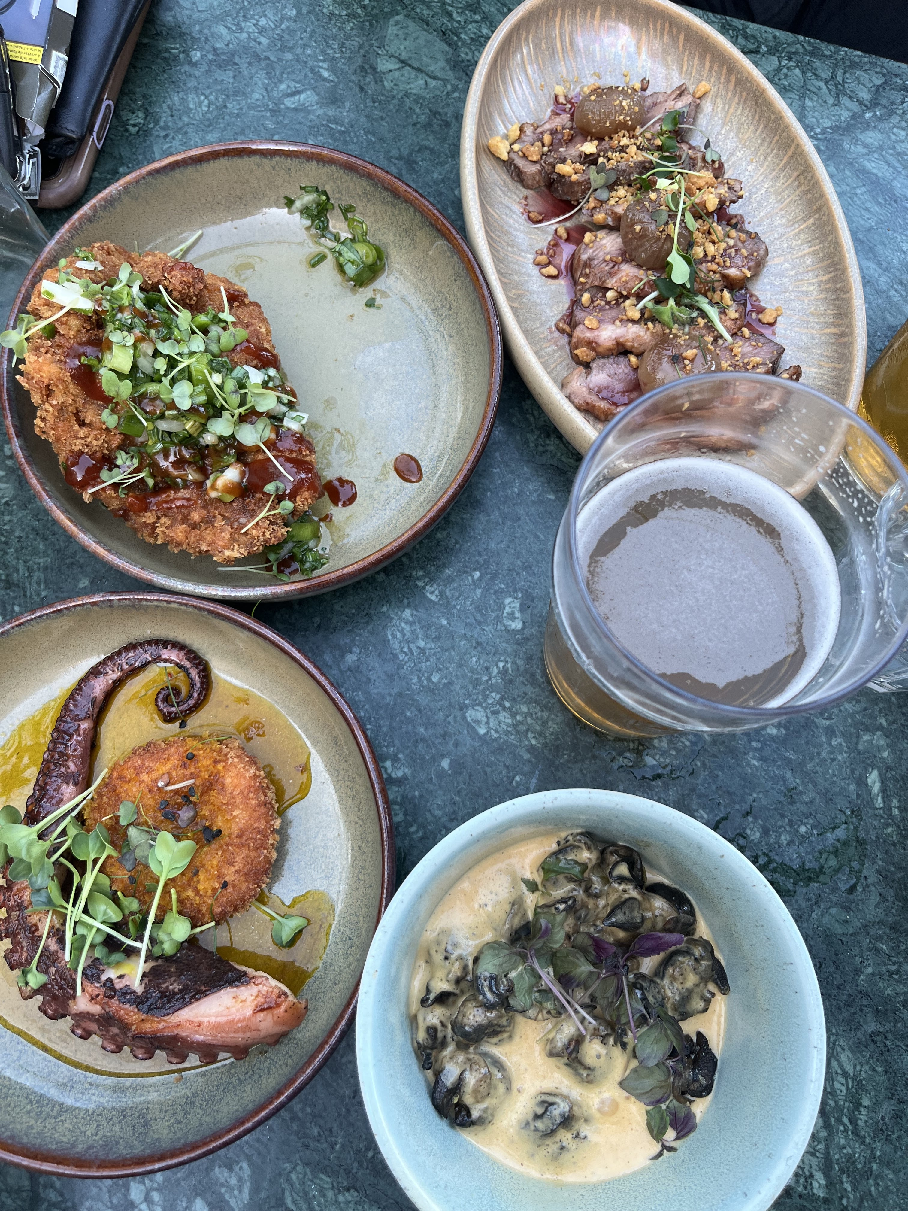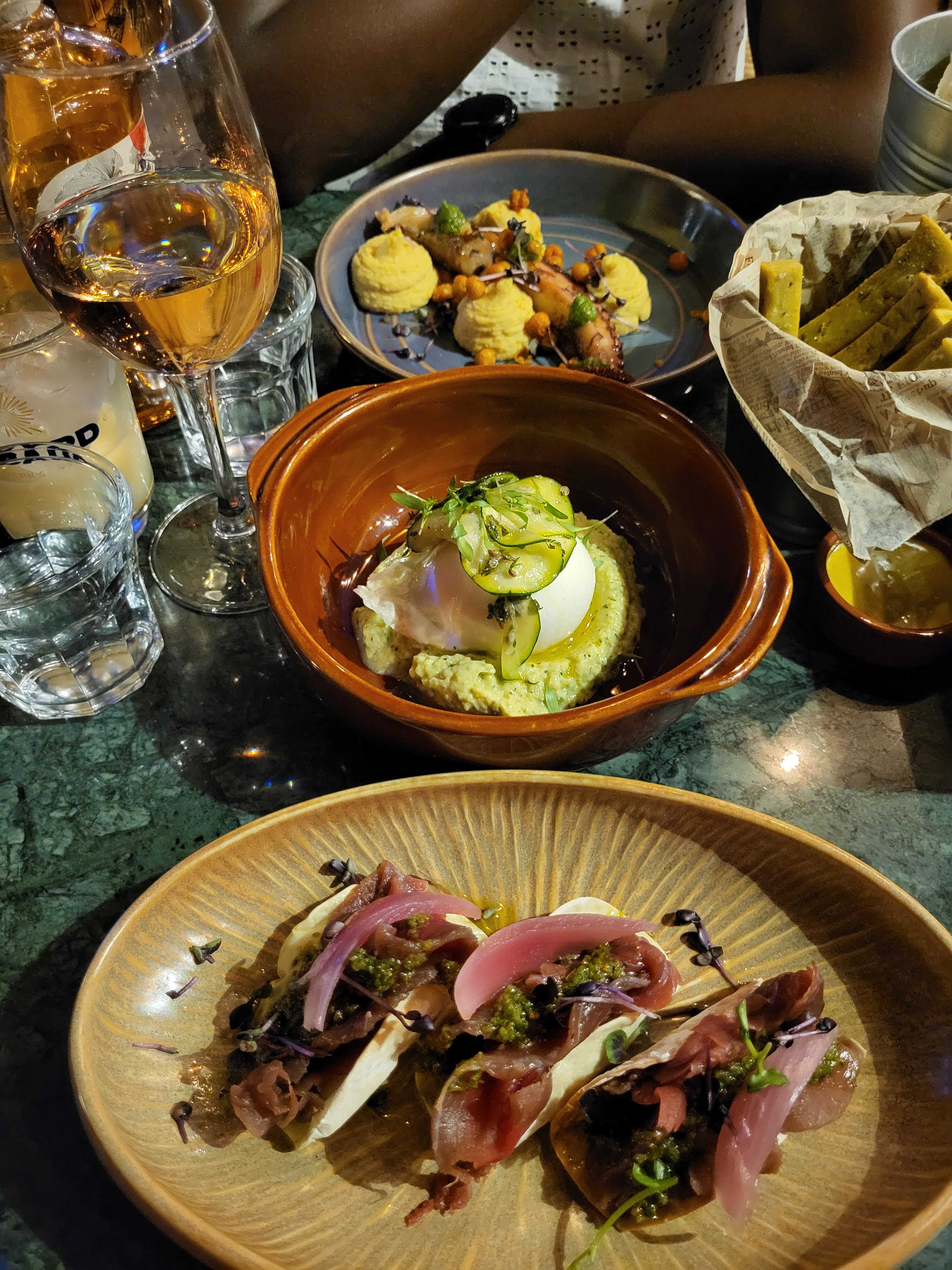 Super découverte, tapas super bonnes VRAIMENT. Boeuf gravlax top, arrancini avec une pointe d'agrume divins, poitrine de boeuf très bonne et bien assaisonnée, j'arrête sur les tapas, jolie cadre, bon service, bon prix. En résumé TRES BIEN!!