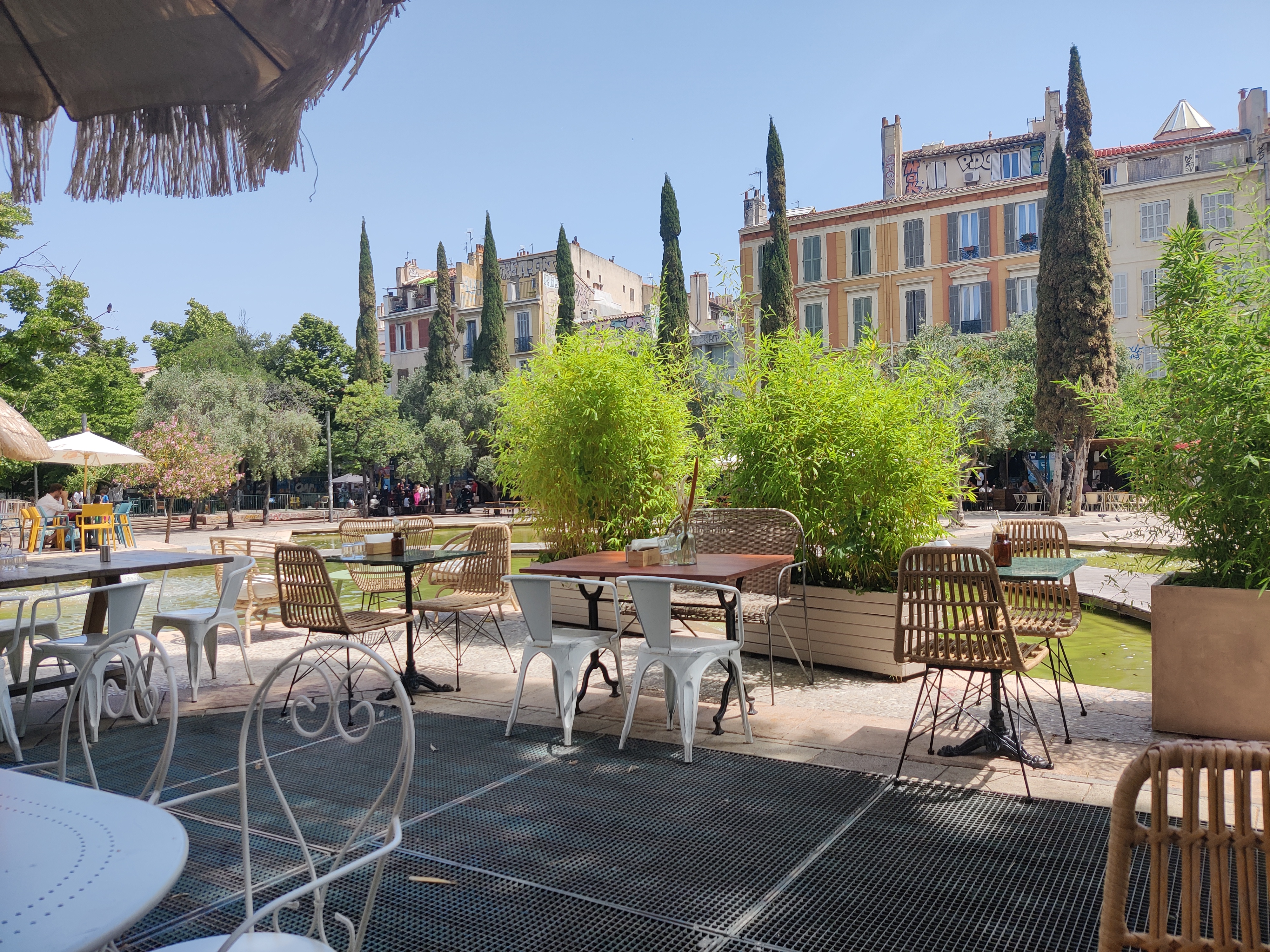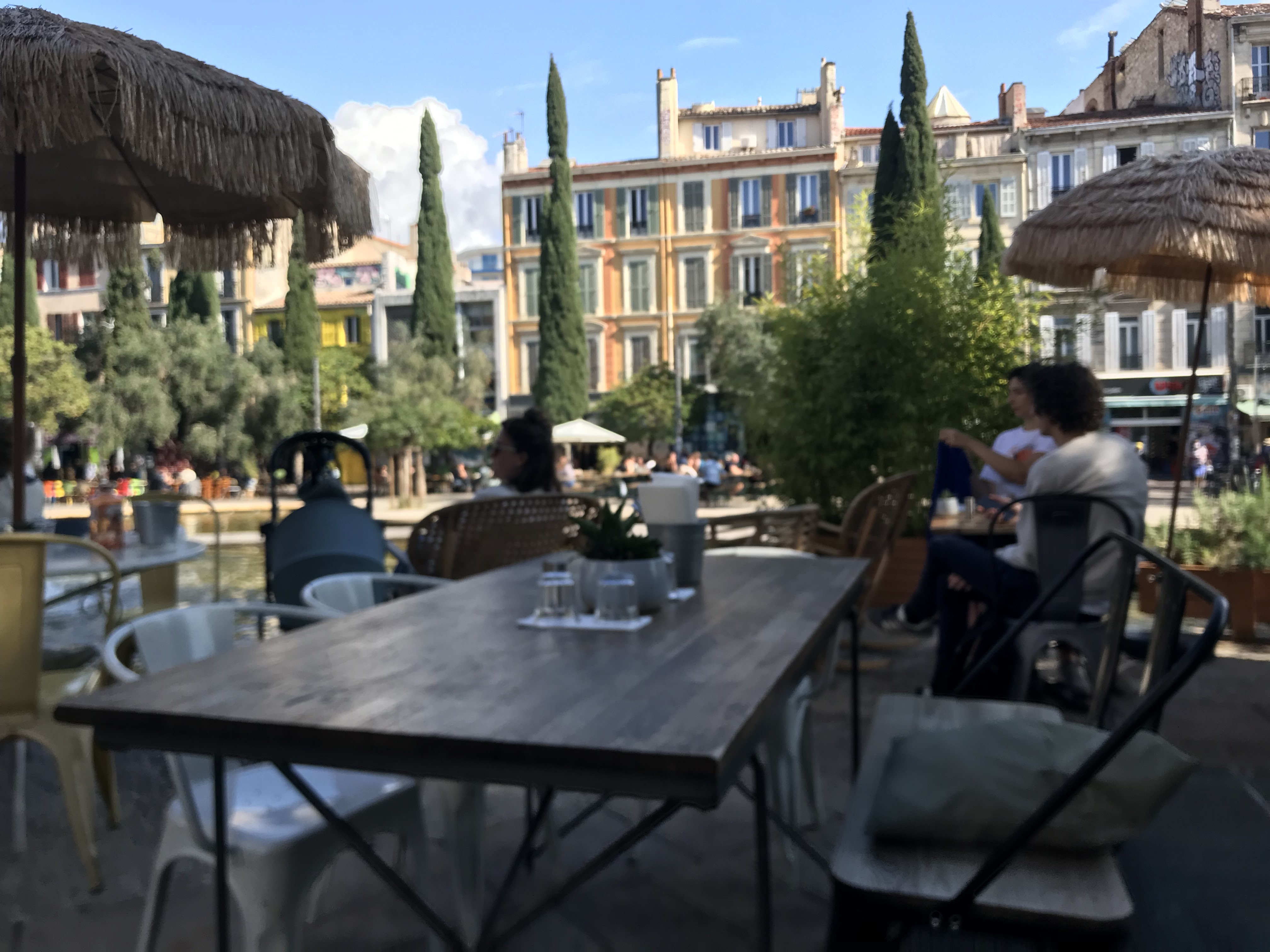 Belle terrasse qui à beaucoup de place et qui donne une vue sur la fontaine du cours Julien et la place. Cuisine bonne et copieuse.