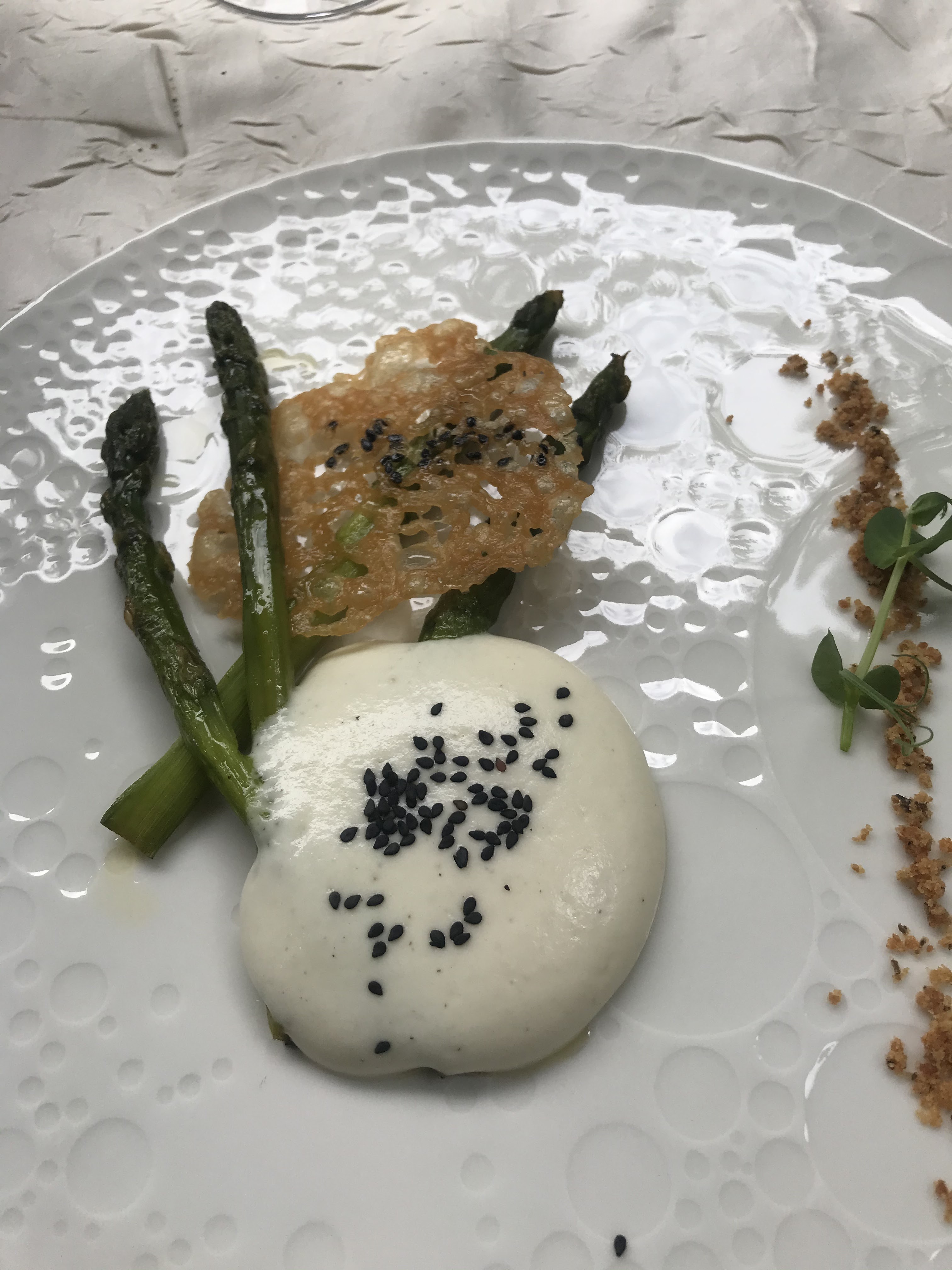 Accueil pompeux et surfait .on nous impose le gel à table .40 convives entassés comme des sardines dans un restaurant qui s'il respectait le client , en aurait accueilli que 20 .4 couverts installés sur une table visiblement trop petite .La lumière qui éblouie ,très inconfortable et agressive. la cuisine est élaborée et recherchée néanmoins le service est à améliorer ( on accroche le client en servant , on enlève les verres à vin alors que la bouteille n'est pas vide ..) Malheureusement cette prestation est gâchée par cette étrange impression que le seul objectif du patron ce soir là était de gagner notre argent.