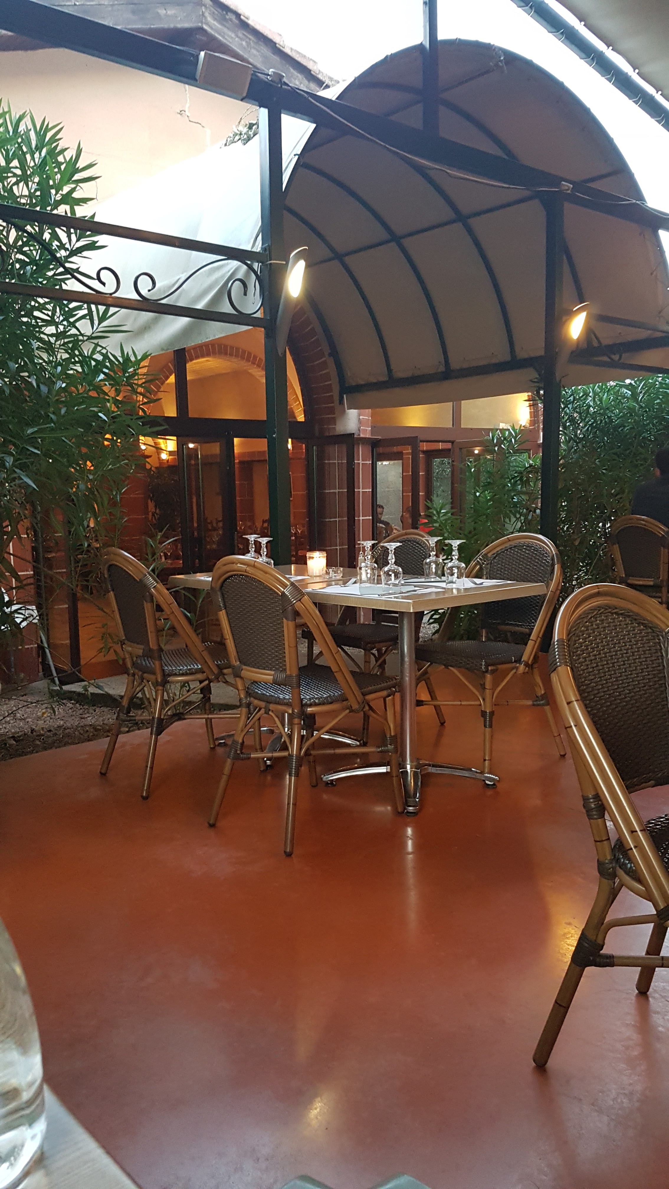 L'intérieur est plutôt bruyant à cause de la résonance. Les plats sont bons, pour ma part j'ai été déçu du melon et du dessert (un seul pruneau c'est un peu triste) mais mon conjoint était ravi de son magret. Les serveurs sont très agréables, je regrette simplement qu'on nous ai servis aussi vite, je comprends que cela soit plus appropriée à la clientèle habituelle mais quand on veut prendre son temps ça donne l'impression de devoir partir vite.. Bonne continuation à eux.