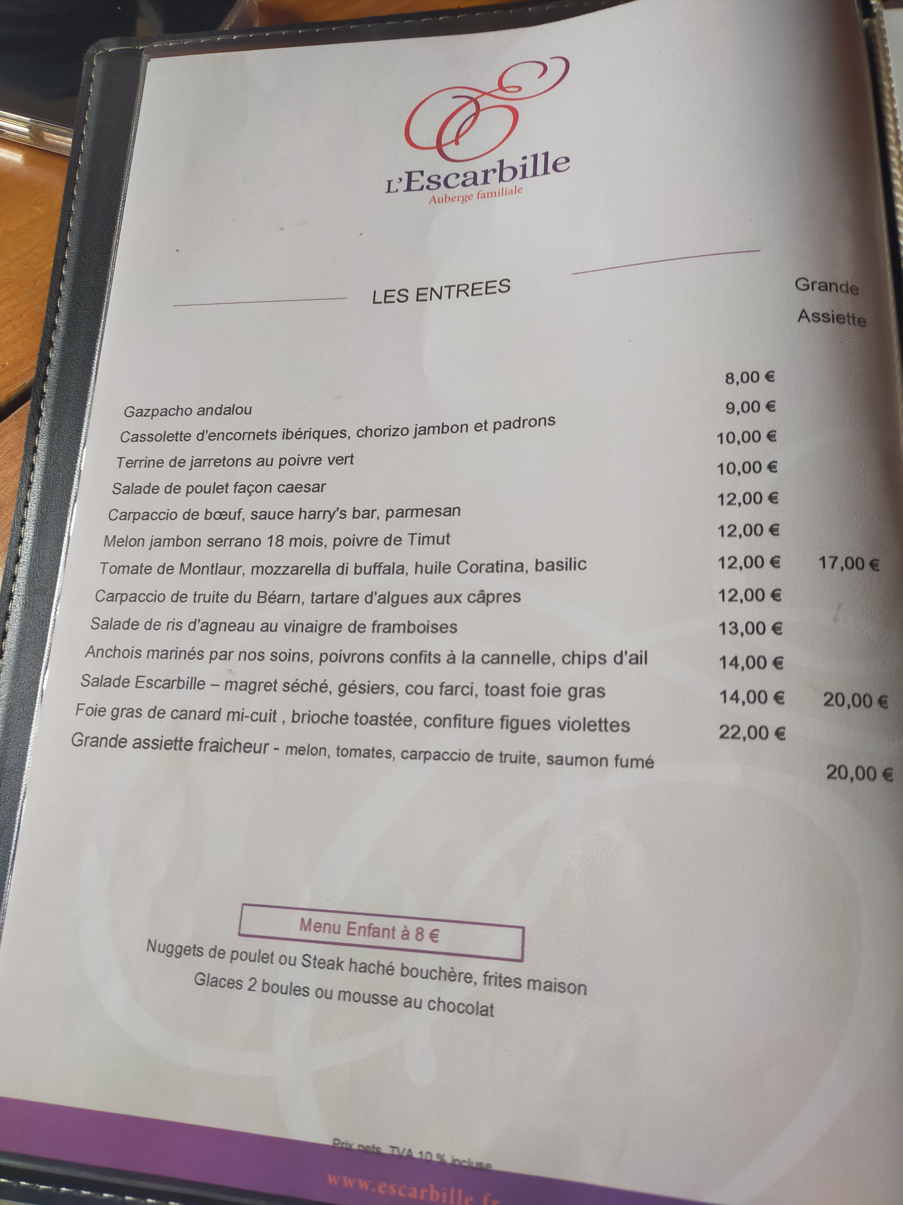 Nous avons choisi de déjeuner à l’Escarbille au milieu d’un voyage autoroutier de 600 km Bien nous en a pris , excellent accueil personnel professionnel mais sympathique. Excellent magret à la poire et assiettes généreuses. Prix très raisonnables. A 5 minutes de la sortie de l’autoroute. Ne vous en privez pas si vous passez par là à l’heure du déjeuner !