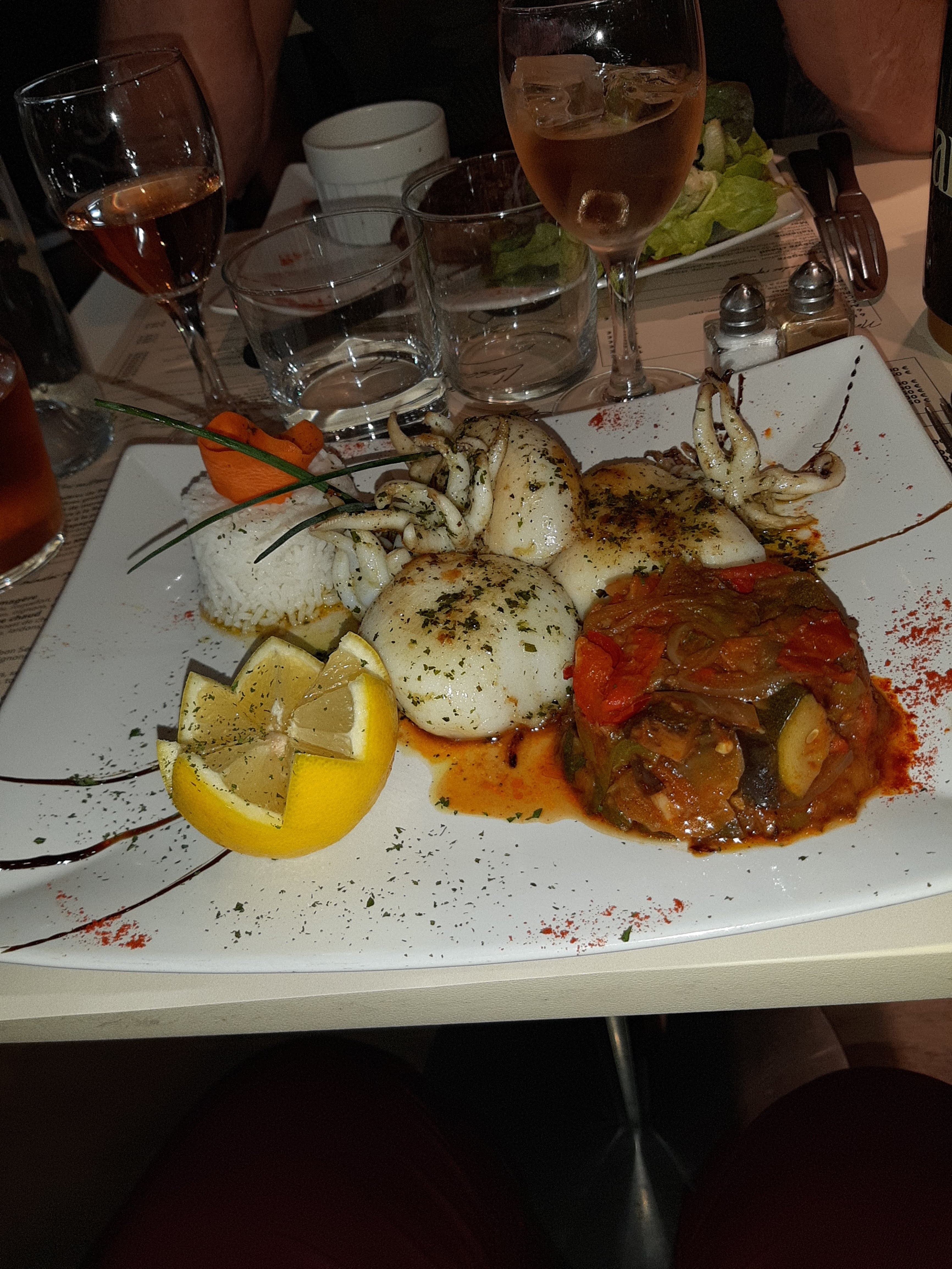Découverte de la Pastiaîoli, poisson, suivons, gambas, moules et pâtes. Le tout recouvert d'une sauce crème ail et persil. Un régal. Par contre, le service bien que tres sympa était brouillon, avec des oublis. Peut être une mauvaise soirée, à vérifier.