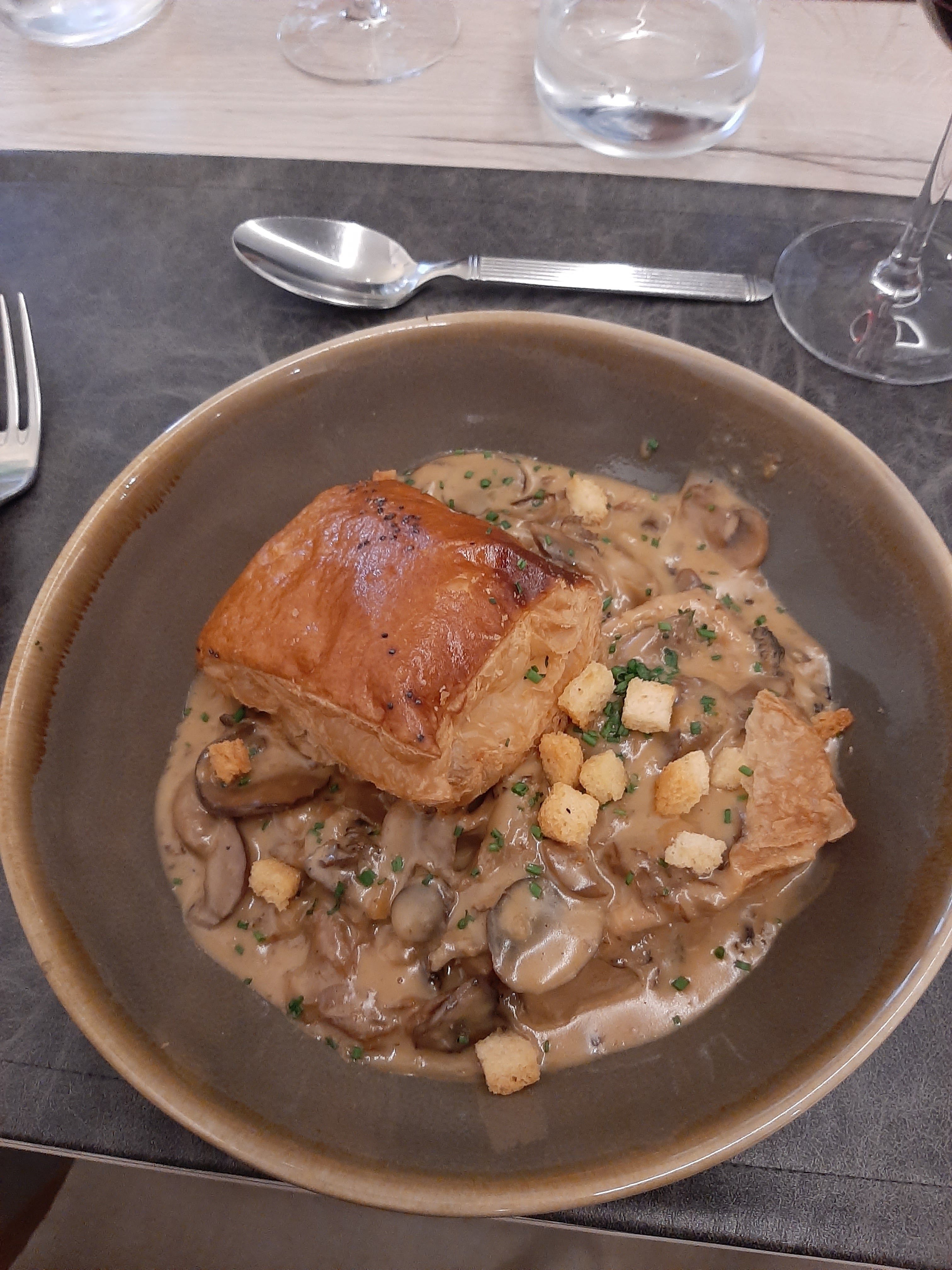 Franchement une très bonne adresse. Cadre sympathique alliant modernité et ancien. Une déco de goût... Tout ce qu'il faut pour passer une agréable soirée. Le service était chaleureux ! Le repas était top avec des produits de qualité. Assiette de foie gras en entrée et filet de bœuf surmonté d'une tranchette de foie gras poêlé pour suivre. La cuisson était parfaite... On y reviendra c'est certain !! Petit bémol : le prix du vin au verre que je pense un peu élevé. Mais il ne faut pas s'arrêter sur ça.