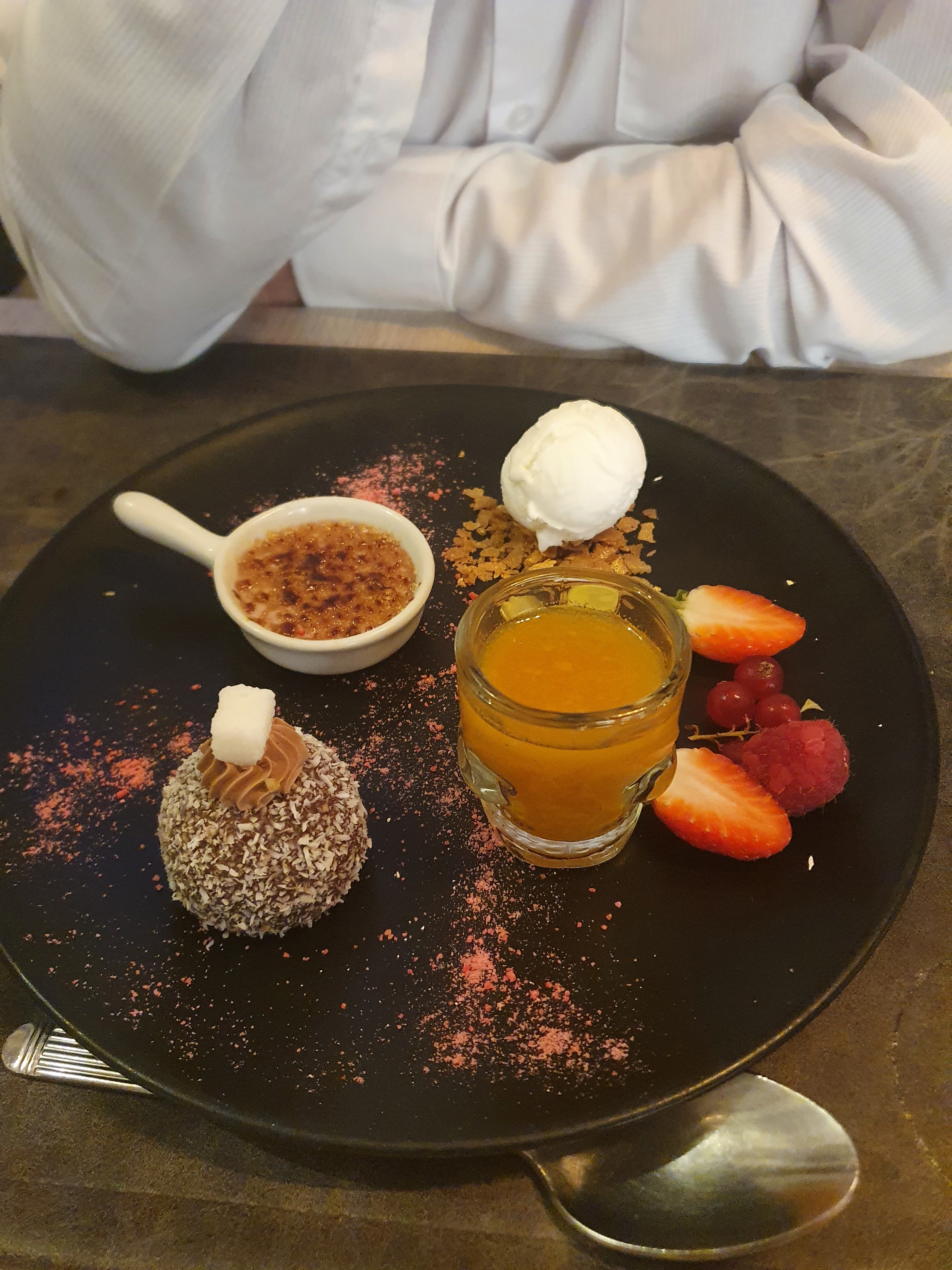 Patronne pas très souriante et très tendu . Crème brulée pas flambée , la serveuse arrive avec un briquet pour flambée lol bien sûr sa n a pas pris 😂😂😂. au finale j en ai eu une nouvelle 😊 Si c est bien chez vous je me suis pas tromper . Dommage