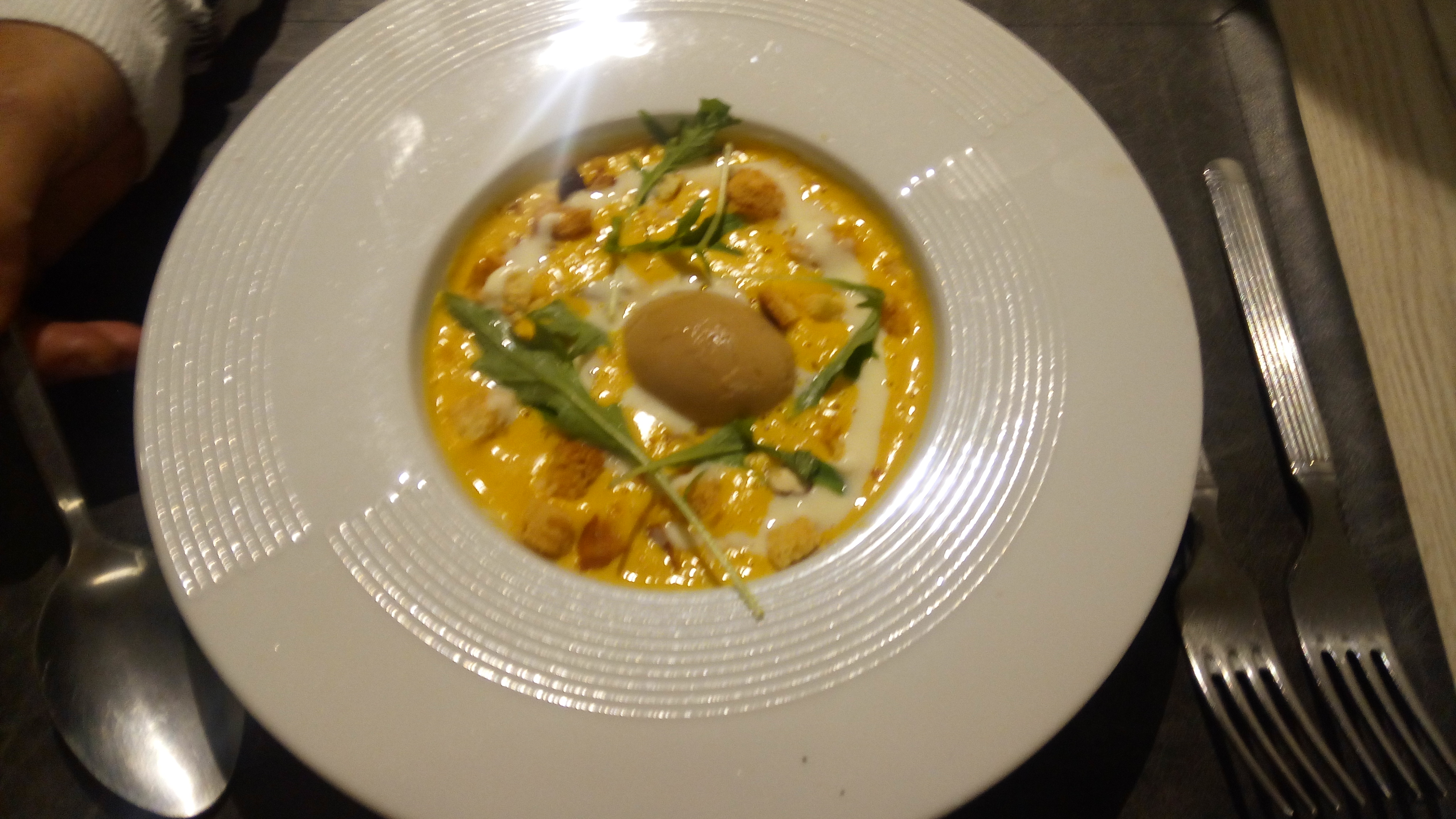 Pour ma part c est un régal à chaque bouchée. Le Personnel est très professionnel et d une sympathie sans égale. Le cadre est magnifique. J ai hâte de revenir à l'Escorneil. La cuisine est divine.