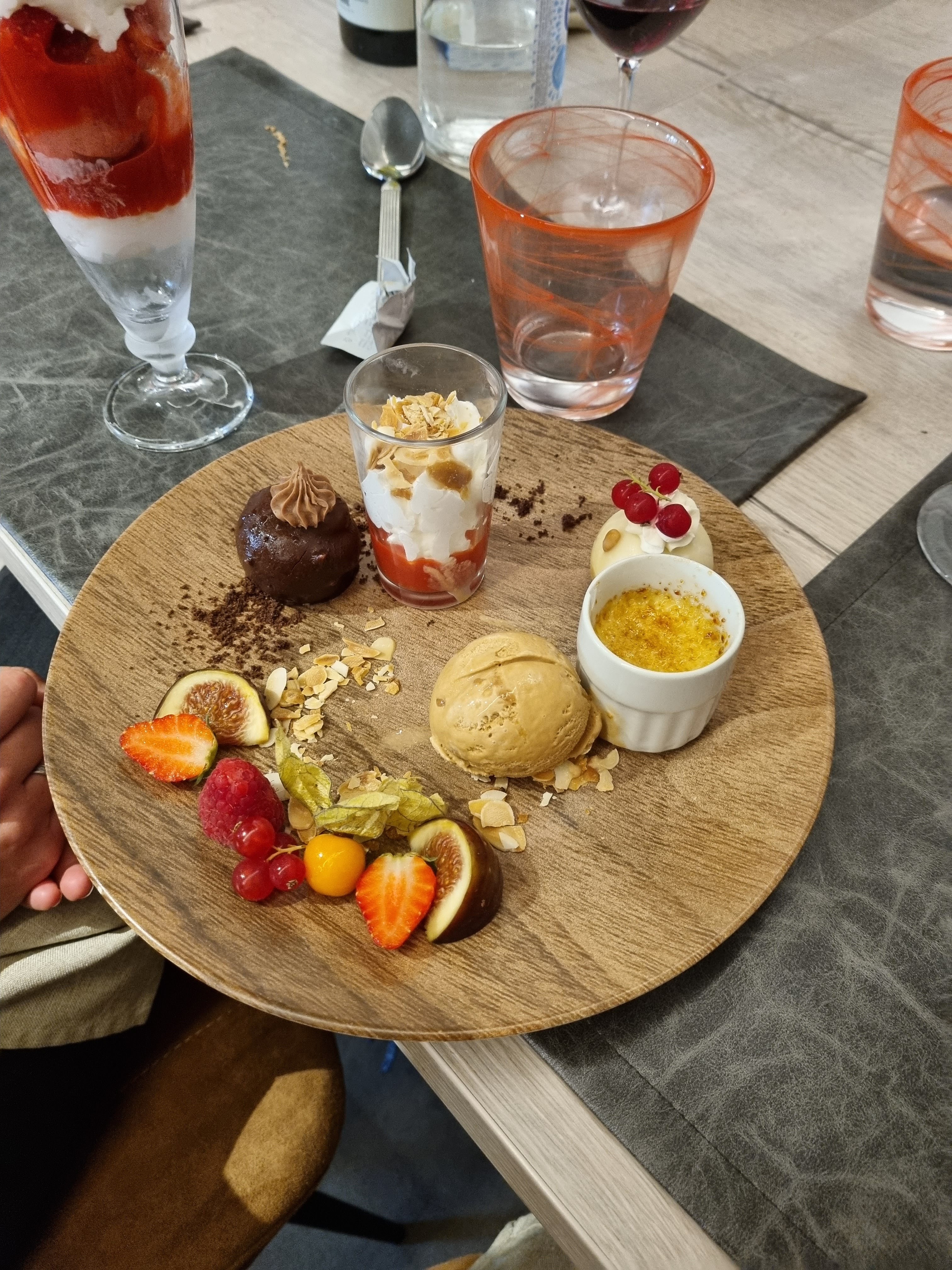 Déjeuner en famille avec nos 2 enfants (11 et 13 ans.) Super repas avec des desserts succulents. Le service est également au niveau des repas. Excellent rapport qualité prix