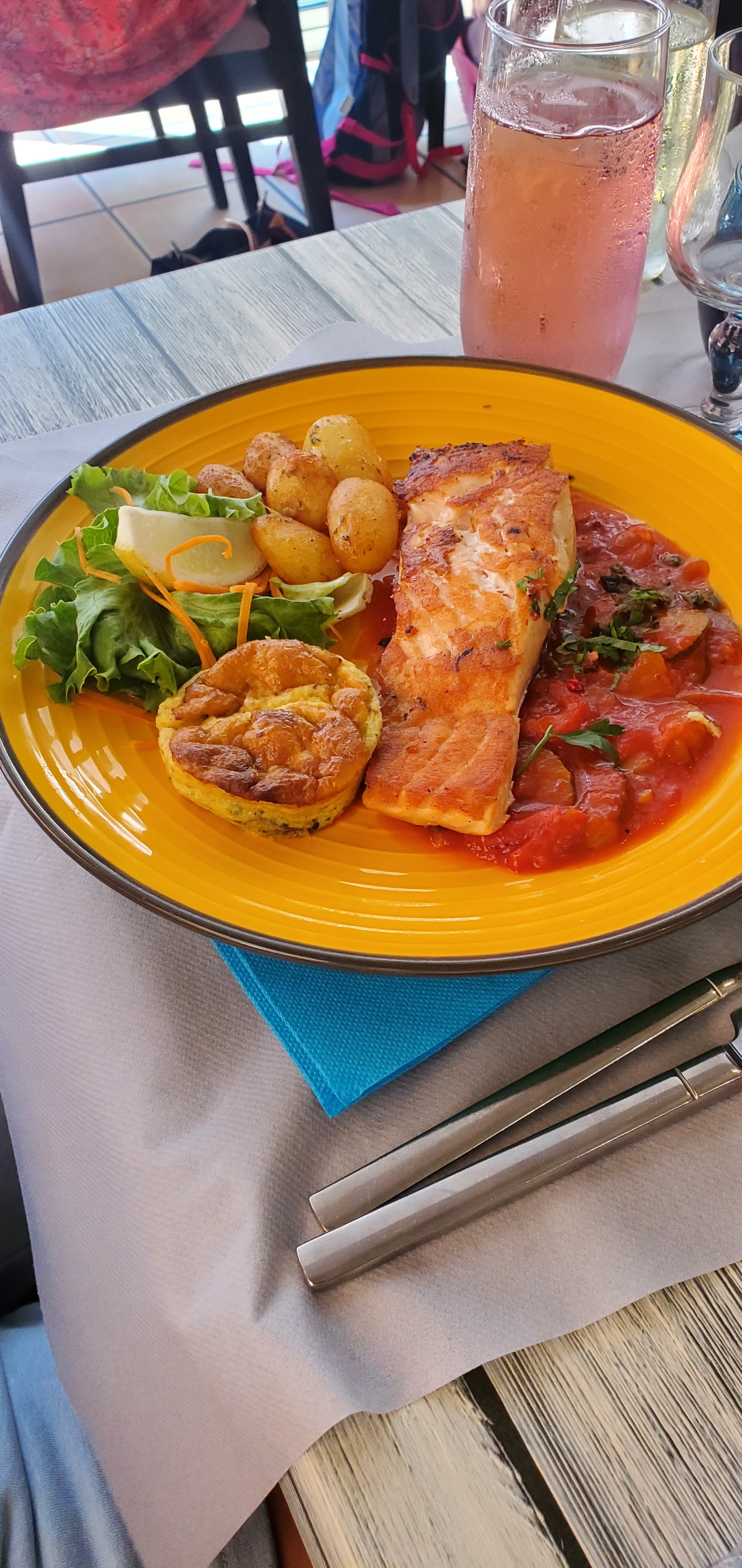 J'ai pris un saumon grillé avec sauce qui était juste trop bonne je le conseille, juste un petit bémol la portion de frites un peu petites . Serveuse et patron agréable . On reviendra