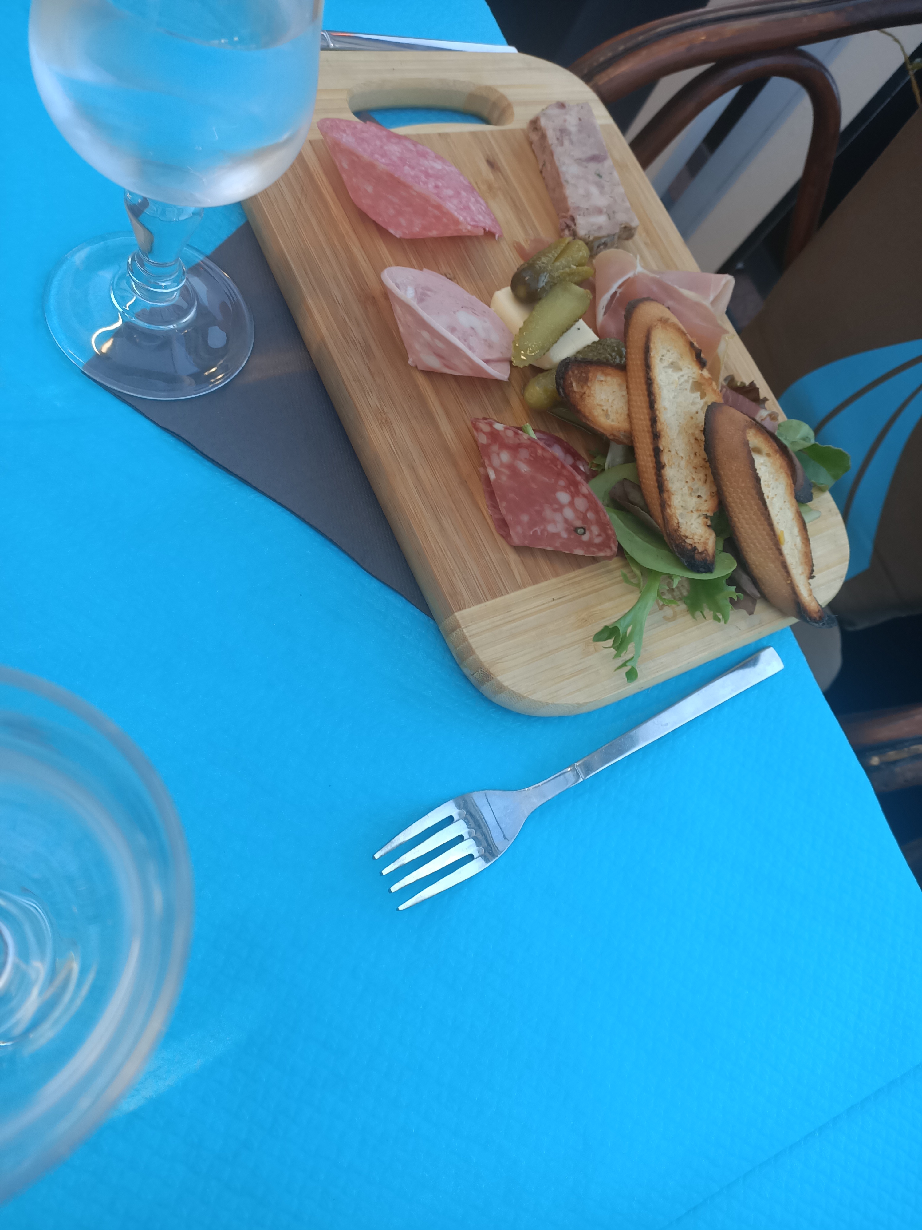 Assiette de charcuterie qu'on peut avoir à METRO... Le reste était bon (dessert et plat). Le service est moyen... on sent le personnel d'été non qualifié à plein nez : le vin non servi pour goûter malgré achat d'une bouteille de vin, celle-ci même pas mise dans de l'eau et des glaçons, je perd un couteau par mégarde, le serveur n'est jamais revenu, j'ai demandé à une autre personne de m'en ramener un plus rapidement. Mitigé au final.