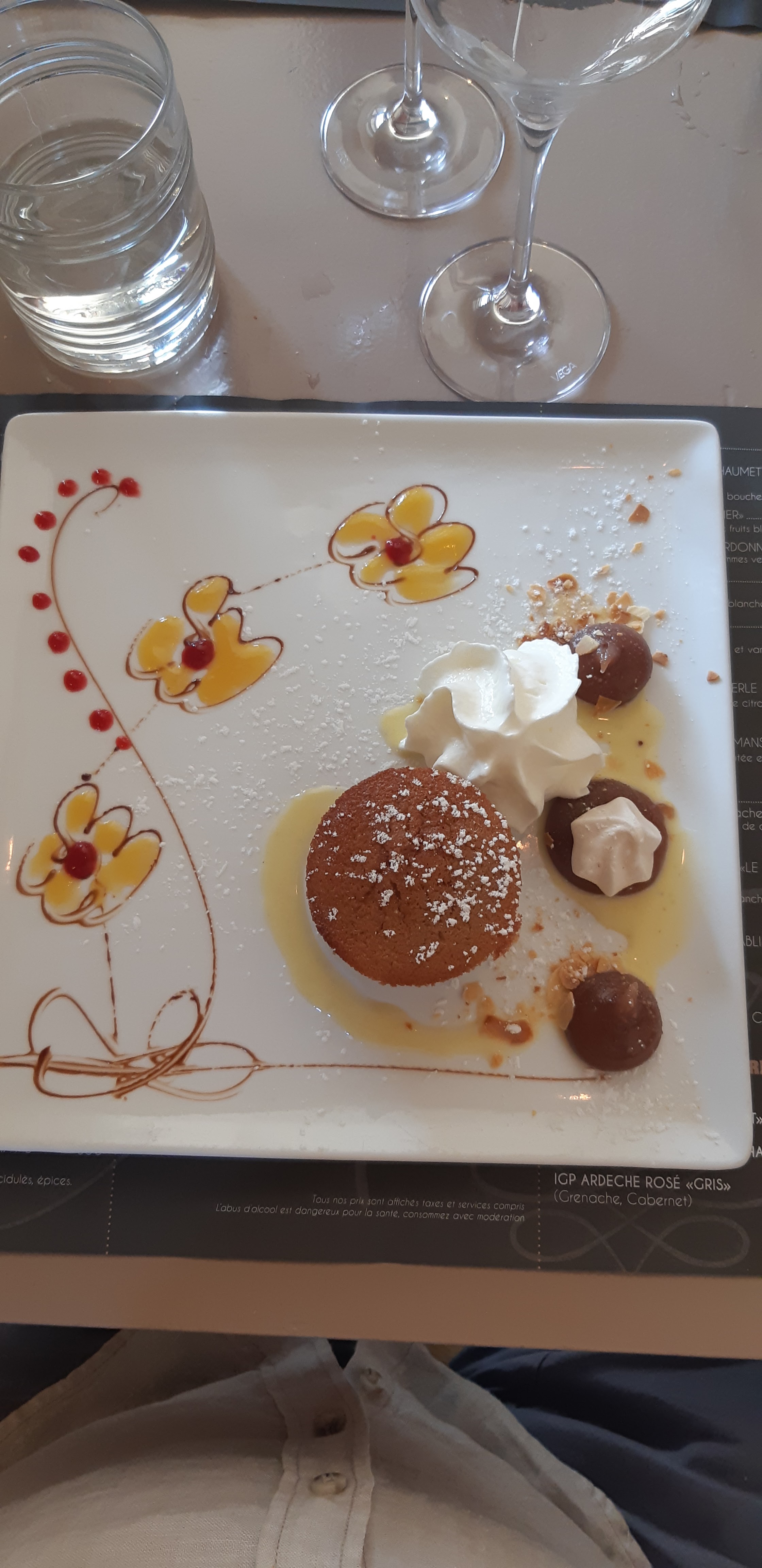 Cadre agréable. Personnel au top. Prix: Apero+Entree+plat+dessert+digestifs=45€/personne. Les deserts sont très bien présentés et délicieux