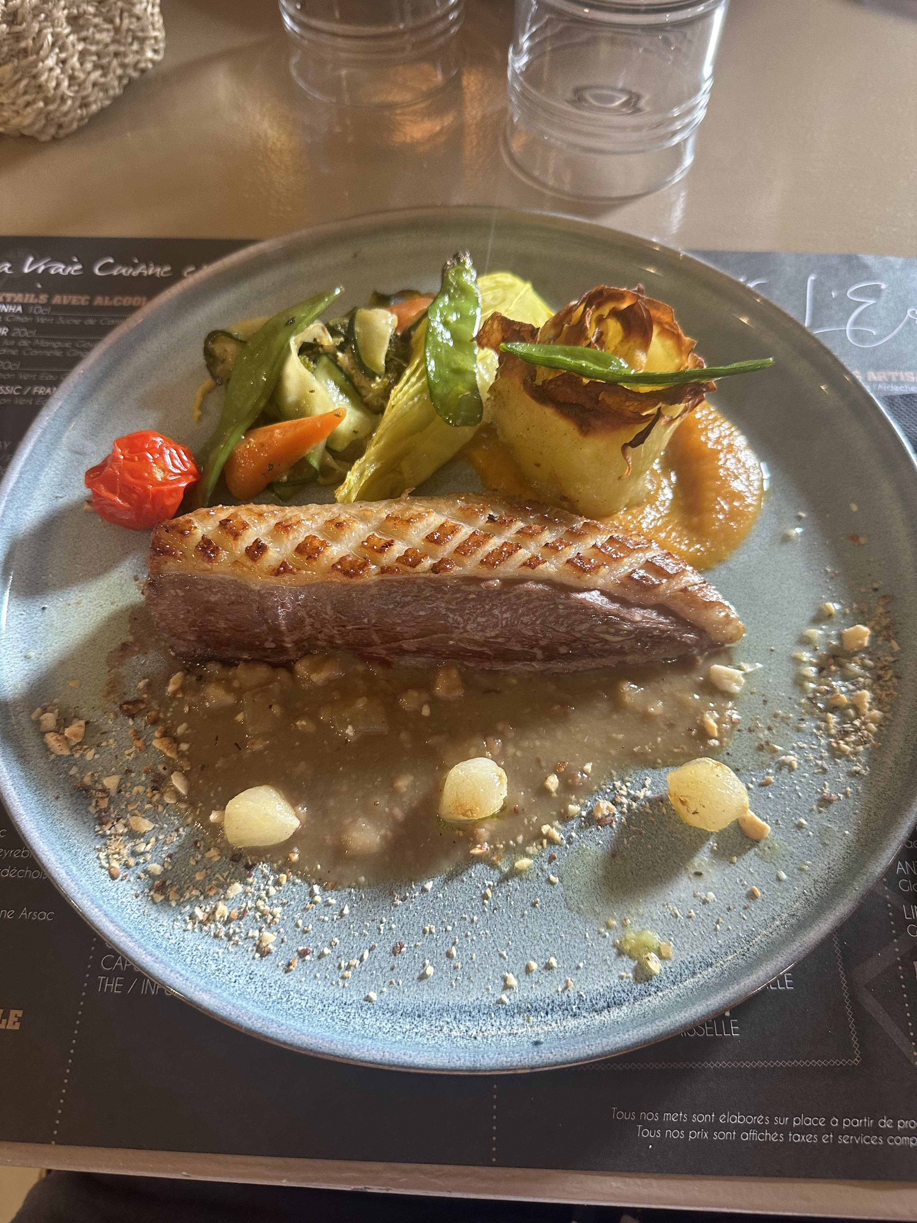 Très bonne surprise : plats excellents, service parfait, très bon accueil. Le village est très beau, le restaurant vaut également le détour. Ne pas hésiter à y faire un arrêt. Nous reviendrons !!!