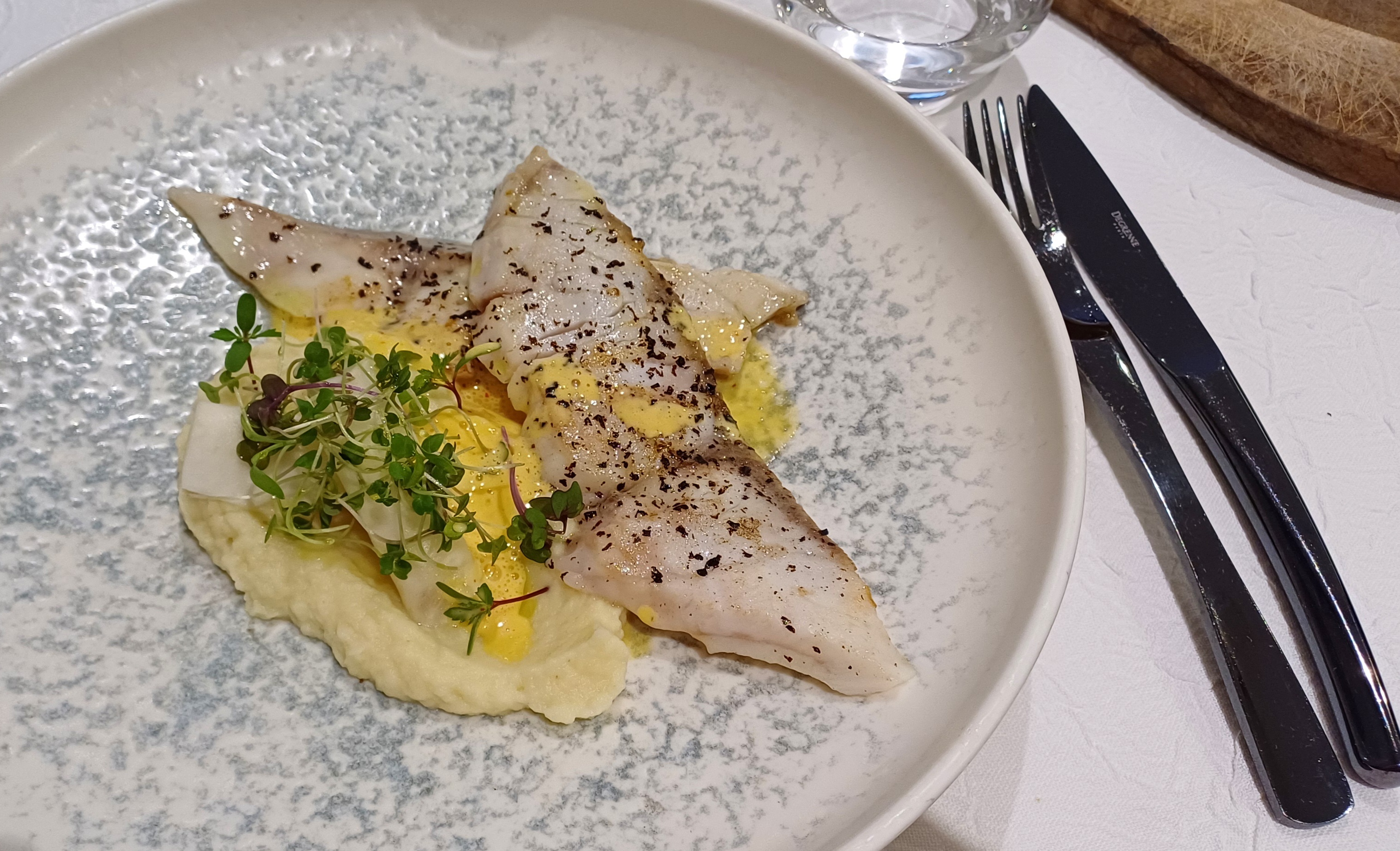 Tout était parfait. L'hôtesse est très sympathique, disponible et attentionnée Les plats sont raffinés et savoureux. La mise en bouche (un capuccino de cèpes) exceptionnelle. Les saveurs sont au rendez-vous. Le poisson parfaitement cuit. Un incontournable à Bandol. A ne pas manquer.