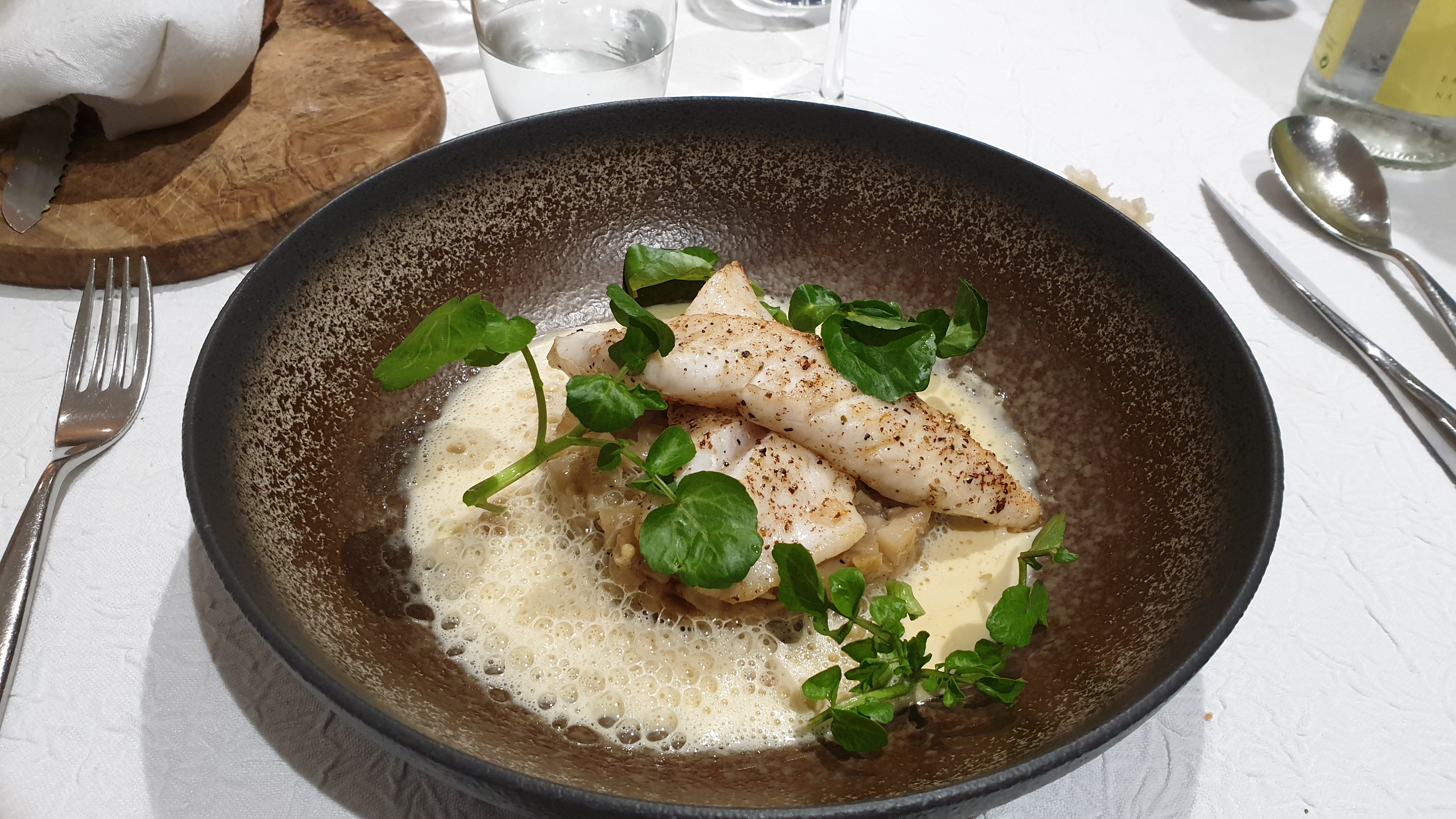 Très jolie mise en bouche avec un cappuccino aux cèpes, la suite du menu ; sardines puis merlu. L’endroit est agréable, le service cordial. Assurément une des bonnes adresses de nos vacances.
