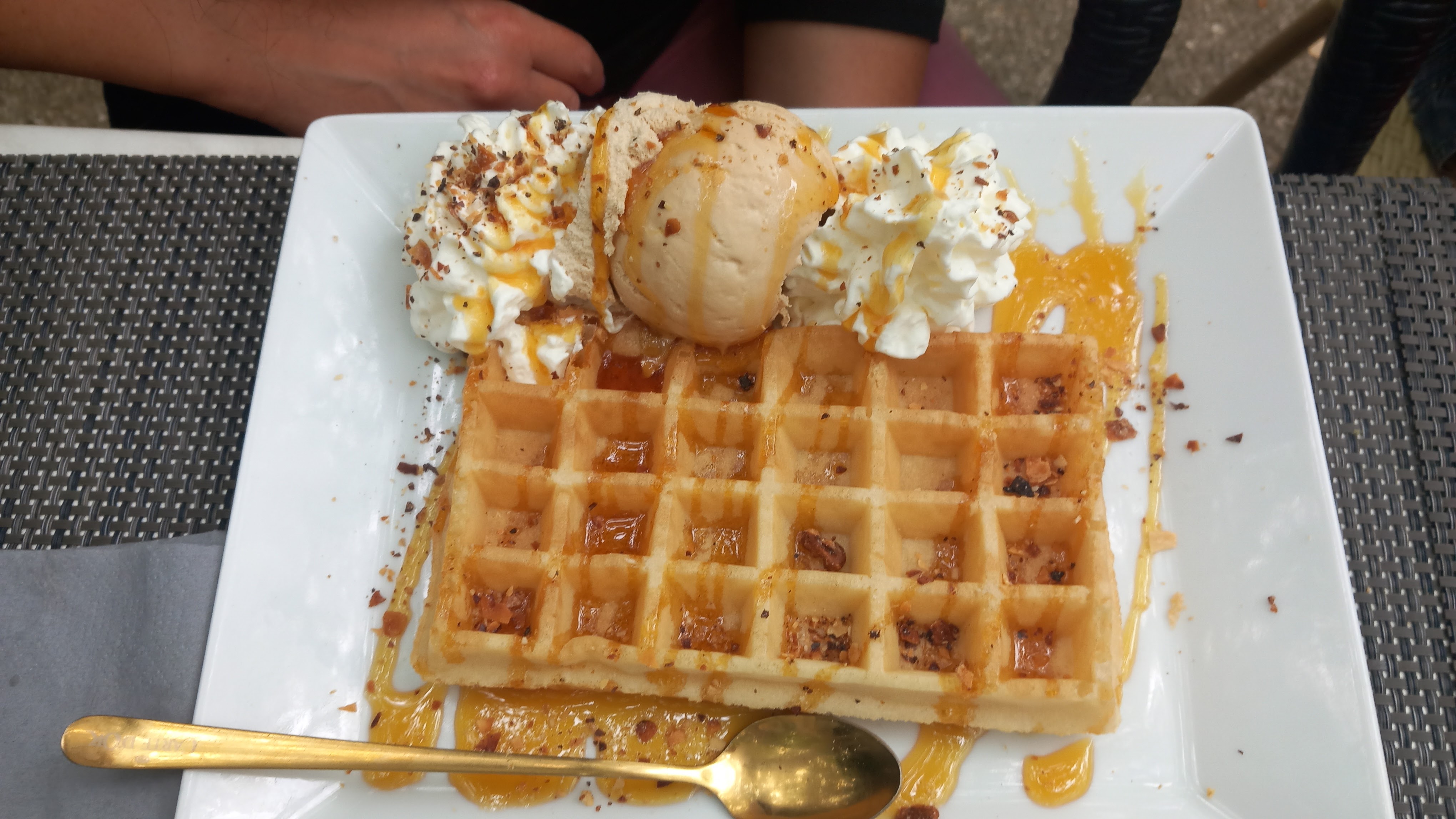 Belle terrasse ombragée. Service aimable et très correct. Salade gourmande très copieuse. Parfait pour un petit moment de détente.
