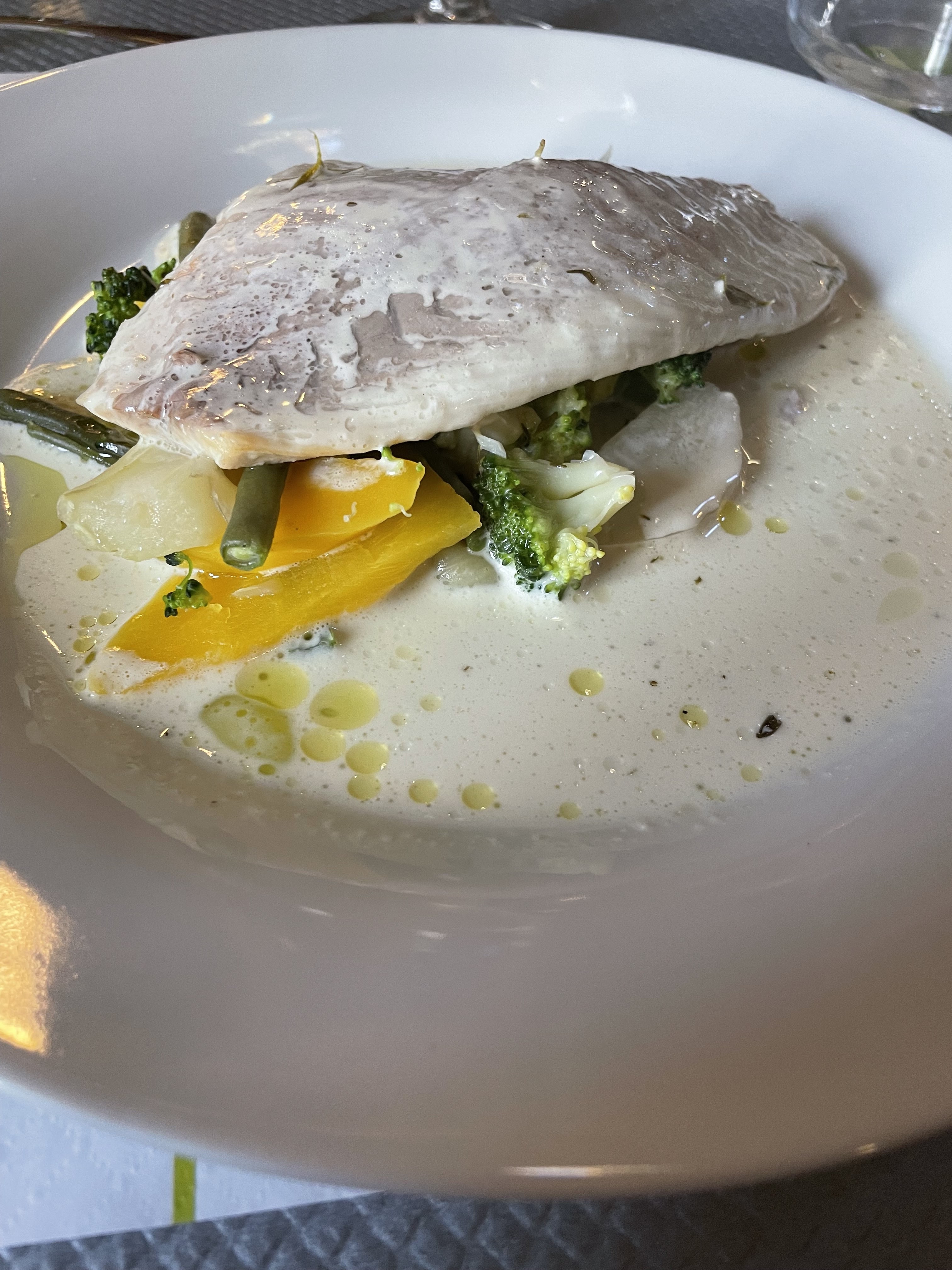 Cuisine équilibrée et bien maîtrisée, serveuse dynamique et professionnelle , très beau restaurant, très belle adresse. Merci a vous
