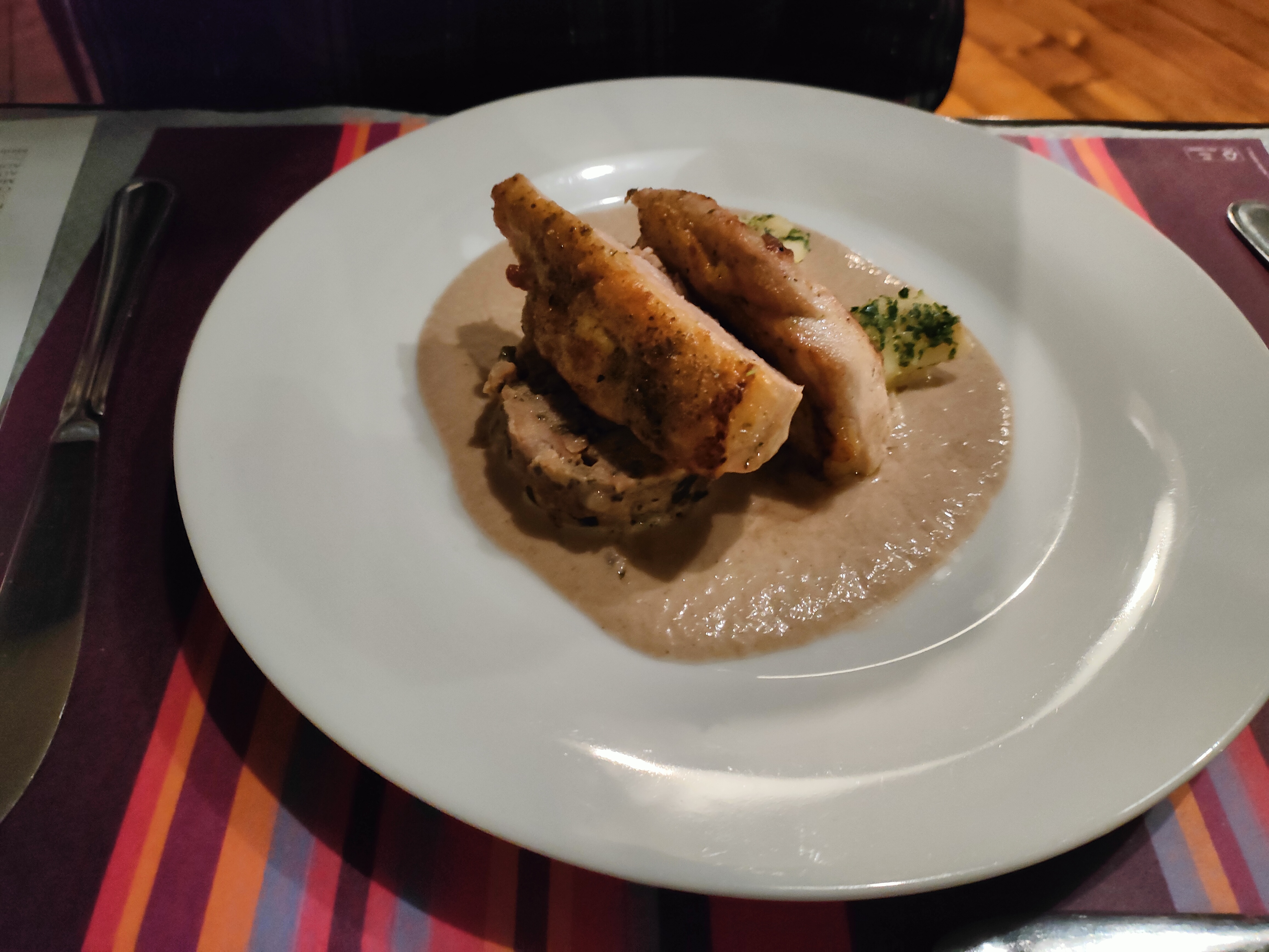 L'essentiel c'est d'accrocher son sac a main sur le bord de la table sous peine que la serveuse le piétine et vous dispute. Hormis le fait de n'avoir de couteau à viande et cette même serveuse qui souffle entre chaque commande ce restaurant en vaut la peine. Nous allons bien au restaurant pour ce qui est dans l'assiette. Cela est bien respecté. Très bon repas, un choix limité mais de qualité. Une ambiance calme dans cette ville charmante. Attention si vous avez 15 minutes de retard on vous annonce que vôtre réservation est annulée.