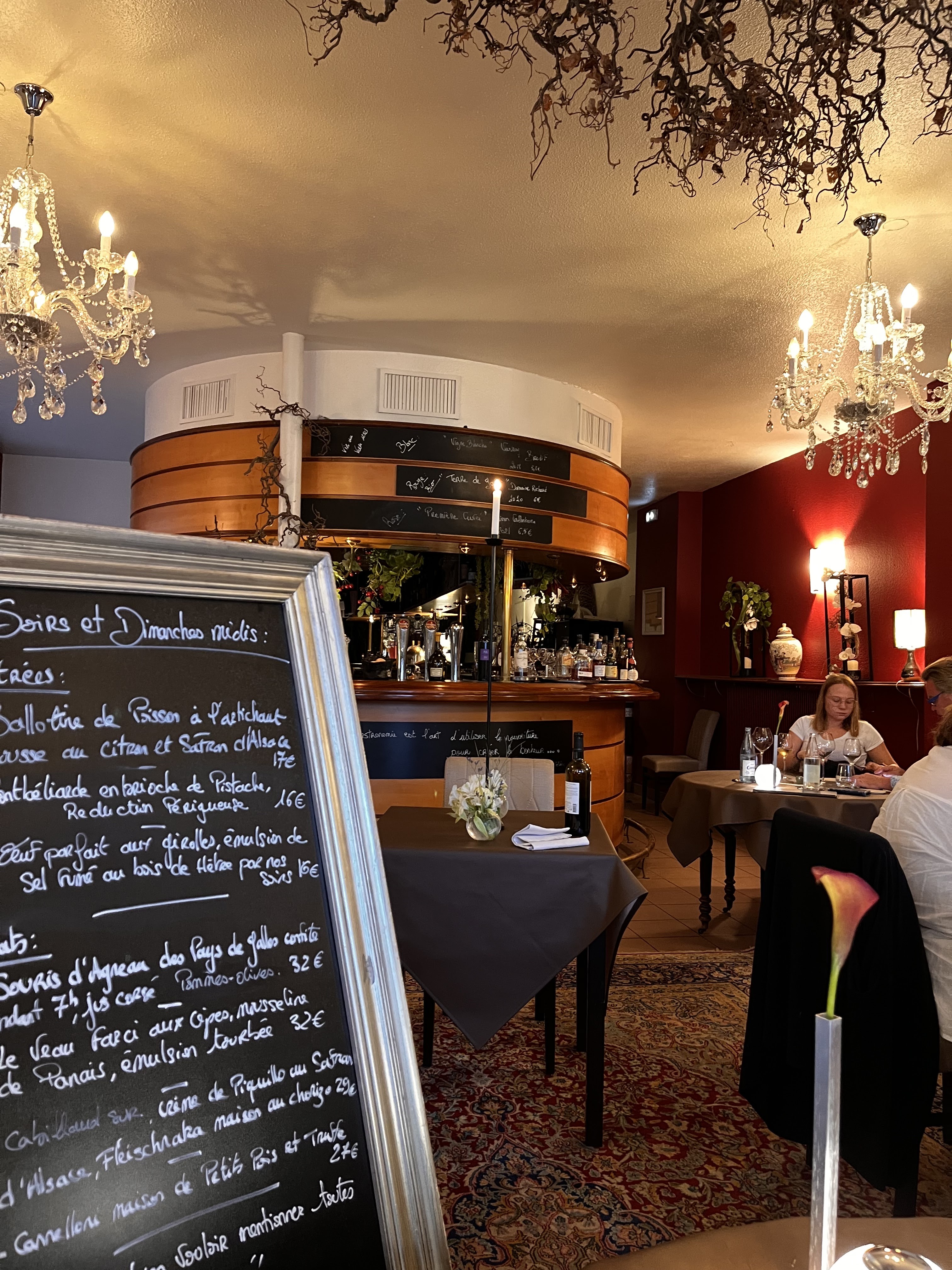 Bonjour, un magnifique endroit à Colmar, change des restaurants qu'on peux trouver en centre ville. Cuisine délicate et parfumée,chacun des plats étaientune découverte culinaire. Un grand merci au chef.Une petite salle donc pas bruyant parfait pour des repas entre amoureux. Un service au top,le service était fluide. Très bonne quantité dans les assiettes. C'est avec plaisir qu'on reviendra manger avec nos proches. Ps: tellement bon que nous avons pas eu le temps de prendre des photos !