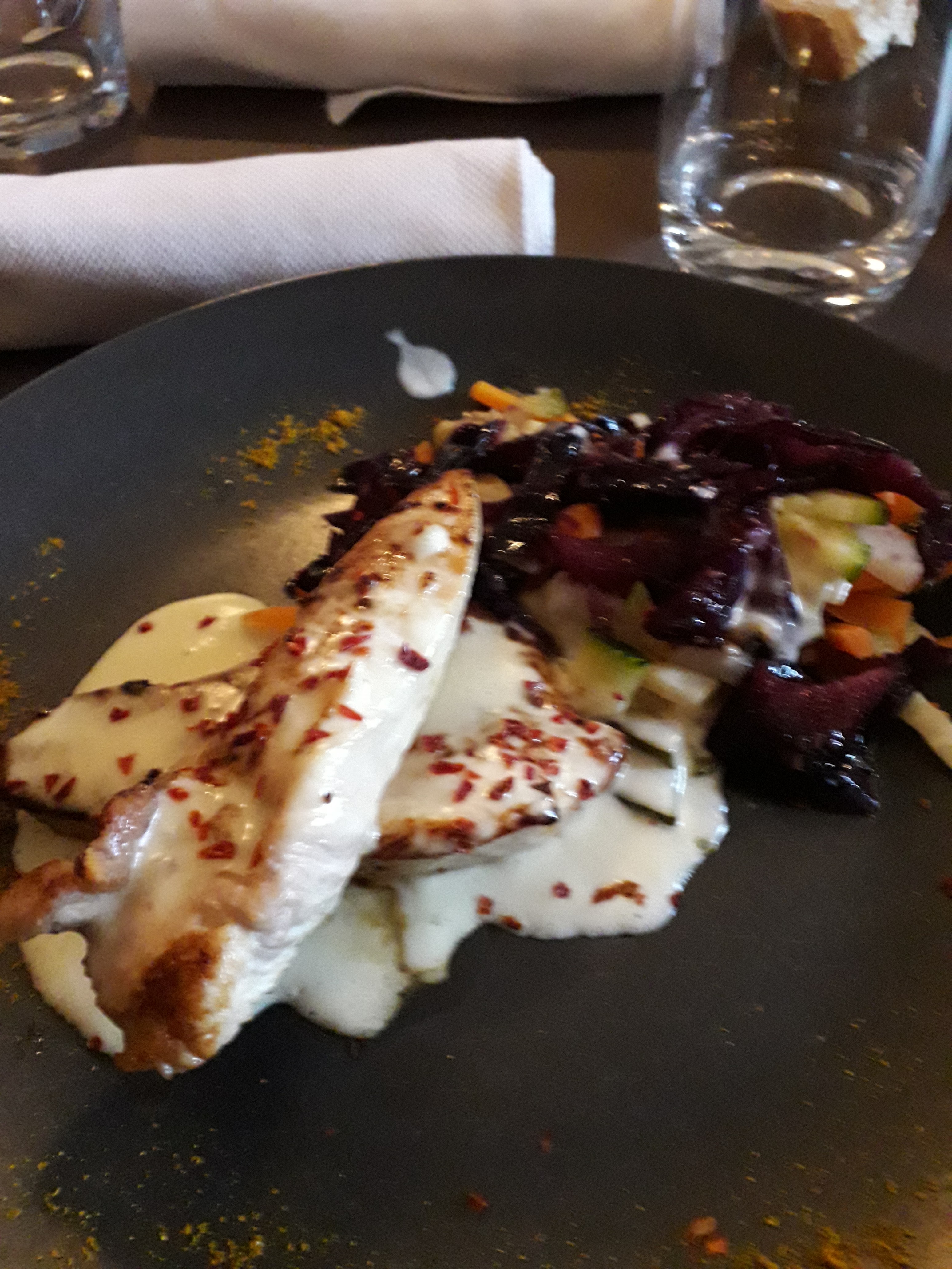 La cuisine est vraiment délicieuse avec de bons produits... et l'équipe est au petit soin. Promis je goûte un des vins avec mon plat la prochaine fois, la sommelière à l'air de s'y connaître !