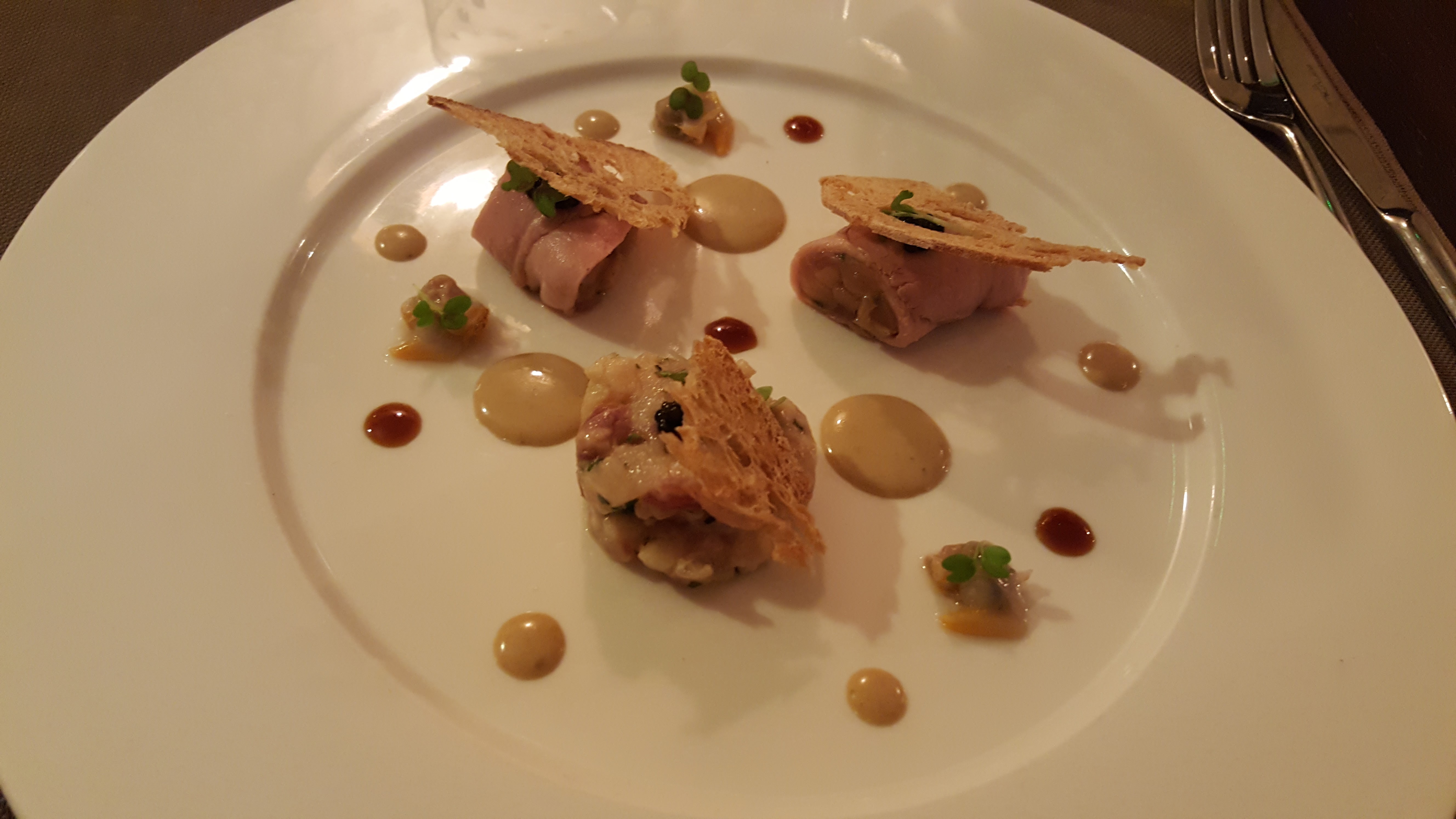 C'est autour du menu Terre Mer que nous avons fêté un anniversaire bien gastronomique !!! Une salle feutrée, un accueil chaleureux, une présence discrète, des plats originaux dans leur recette comme dans leur présentation nous ont charmés. Merci au chef et à tout le personnel , en salle comme en cuisine ! L'adresse mérite visite. Pour les visiteurs de passage, l'adresse tient hôtel ! Carine et Eric
