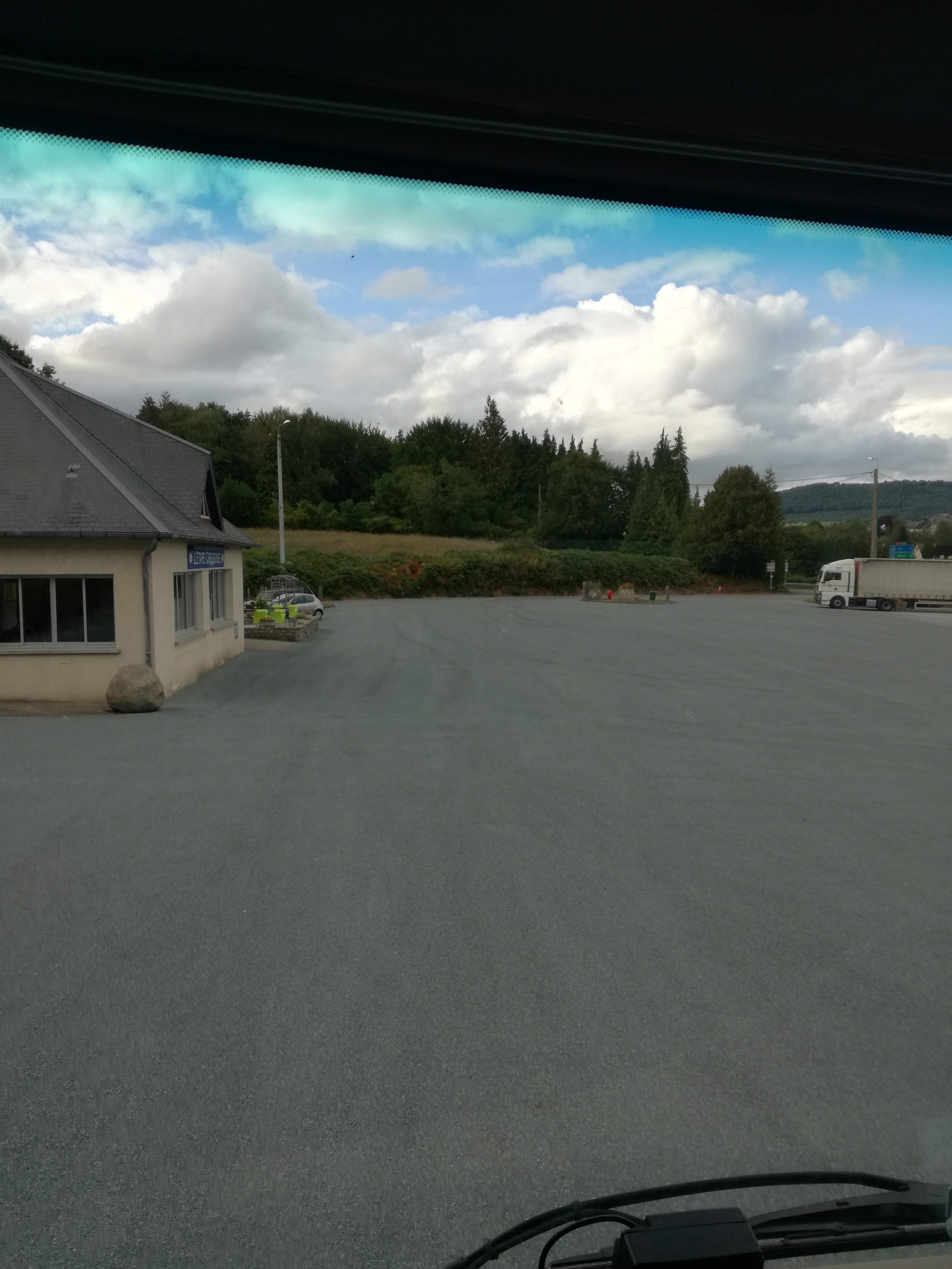 Beau parking goudronné les sanitaires sont bien le service en salle est bien mais alors le matin le patron nous casse le moral il est désagréable pour ma part terminé le café du matin je le bois plus tard