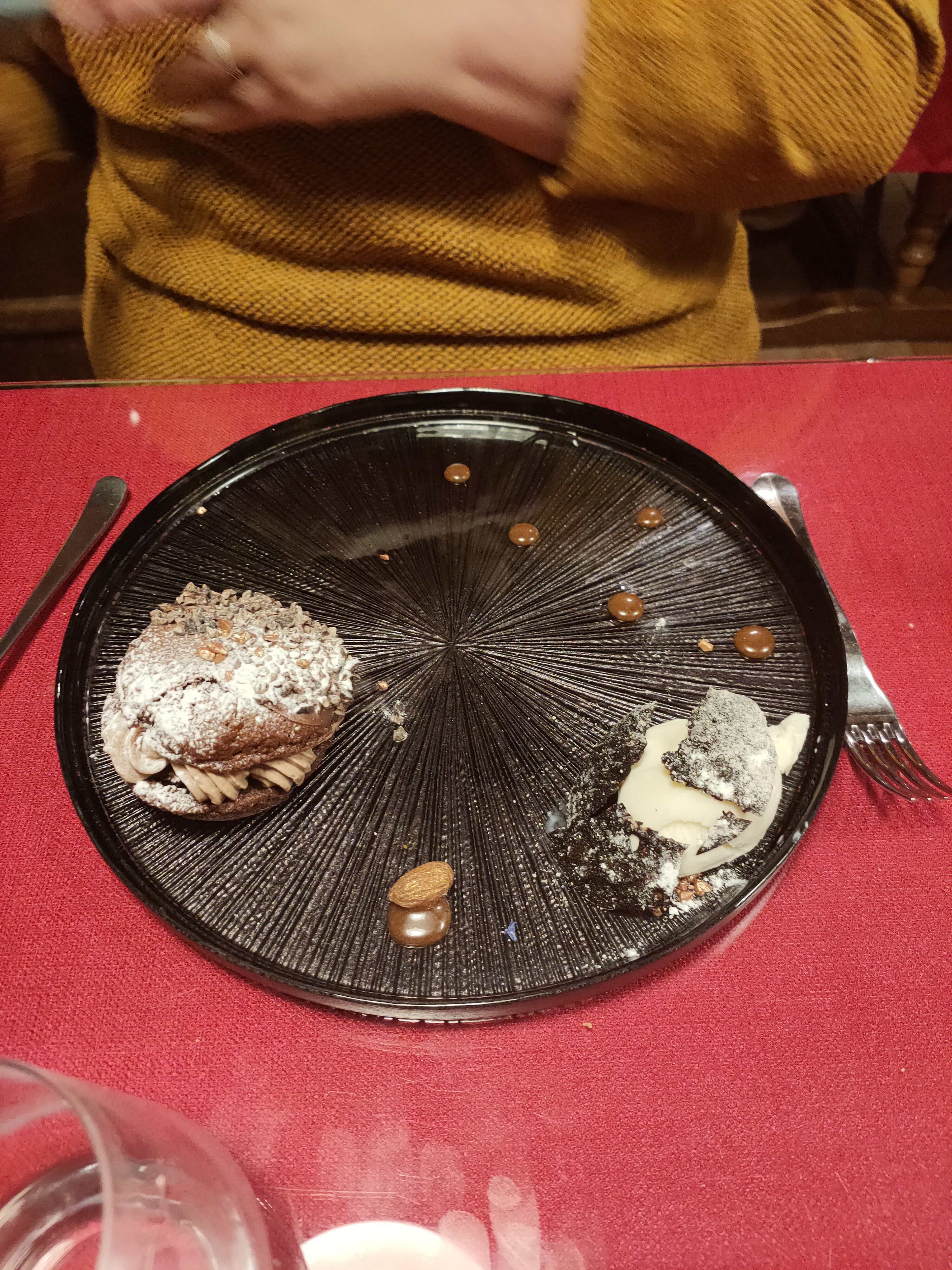 Déçue! Dîner pour l'occasion de nos 10 ans de mariage. Accueil par un monsieur non chaleureux, positionnement de notre table collée au comptoir de l'accueil, d'où le serveur qui passe à plusieurs reprises, gênant et non intimiste, alors que des tables de l'autre coté de la salle disponibles. 30 mins avant qu'il vienne prendre notre commande, en prenant celle d'une table à côté de nous (4 personnes) arrivées après nous. Avons hésité à partir à ce moment là, avant qu'il prenne notre commande. Service poursuivi par une autre serveuse, qui elle, très aimable et souriante. Repas correct mais pas extraordinaire, menu : entrée, plat, fromages et dessert pris (formule la plus cher de la carte) 49.90€, apéritifs, une bouteille de vin 37.5 clet un menu : entrée, plat, dessert. Qualité non au rdv pour le prix, simplement correct. Cerise sur le gâteau un morceau de plastique rigide gris croqué dans mon dessert .... Que je n'ai donc pas fini... Addition 120€ avec excuses de la serveuse pour cet élément qui a atterri dans mon dessert et ma bouche! Bonne soirée.... Nous n'y retournerons pas .. et ne conseillons pas... Désolée pour ce mauvais avis, car nous n'avons pas l'habitude de laisser des commentaires aussi négatif, mais là c'était presque limite une caméra cachée pour une occasion unique Noces d'étain... dommage.