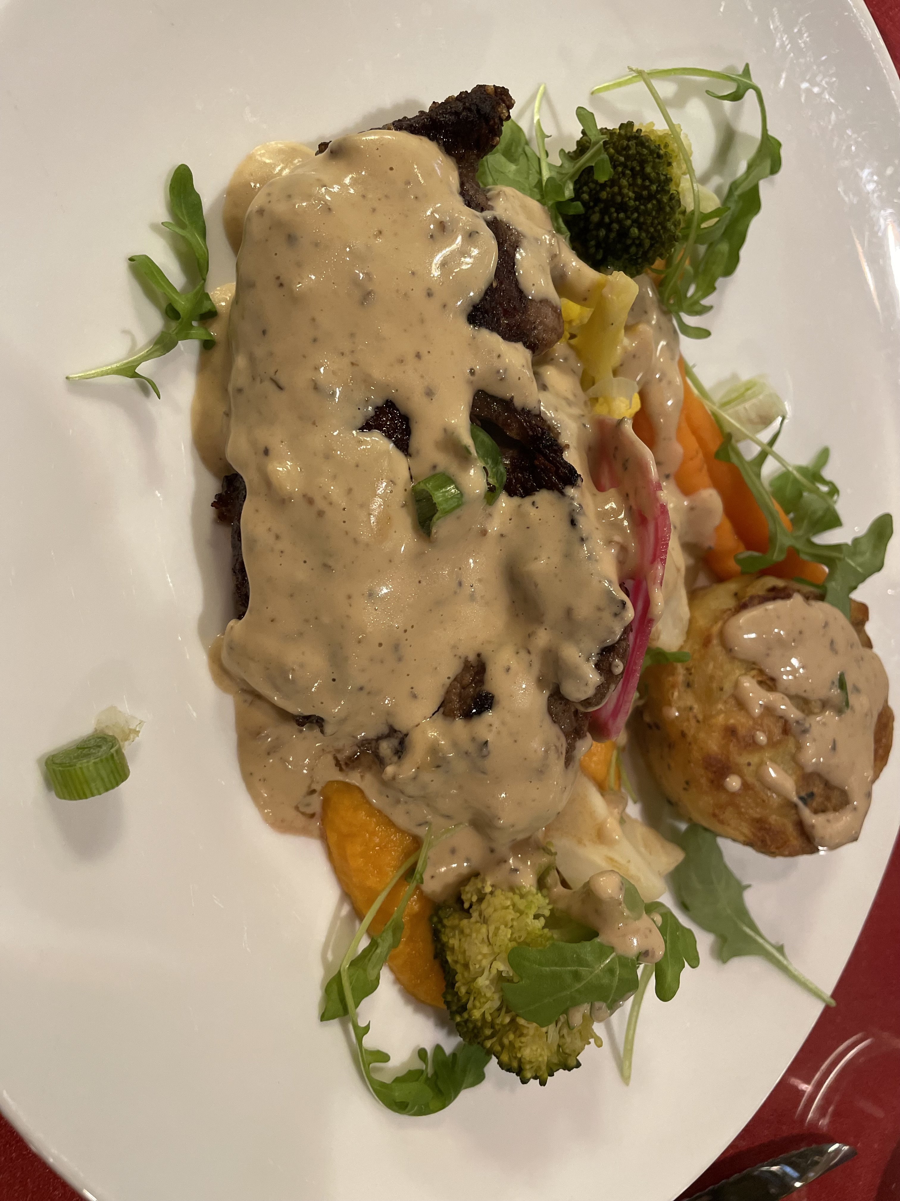 Nous avons très bien mangé, la cuisson des viandes étaient parfaites. Le service y était rapide et plutôt agréable. Une étoile en moins pour les 2-3 petits détails négatif mais qui étaient exclusifs à cette soirée je pense. J’y retournerai un jour et changerai sans doute cela ! Merci encore