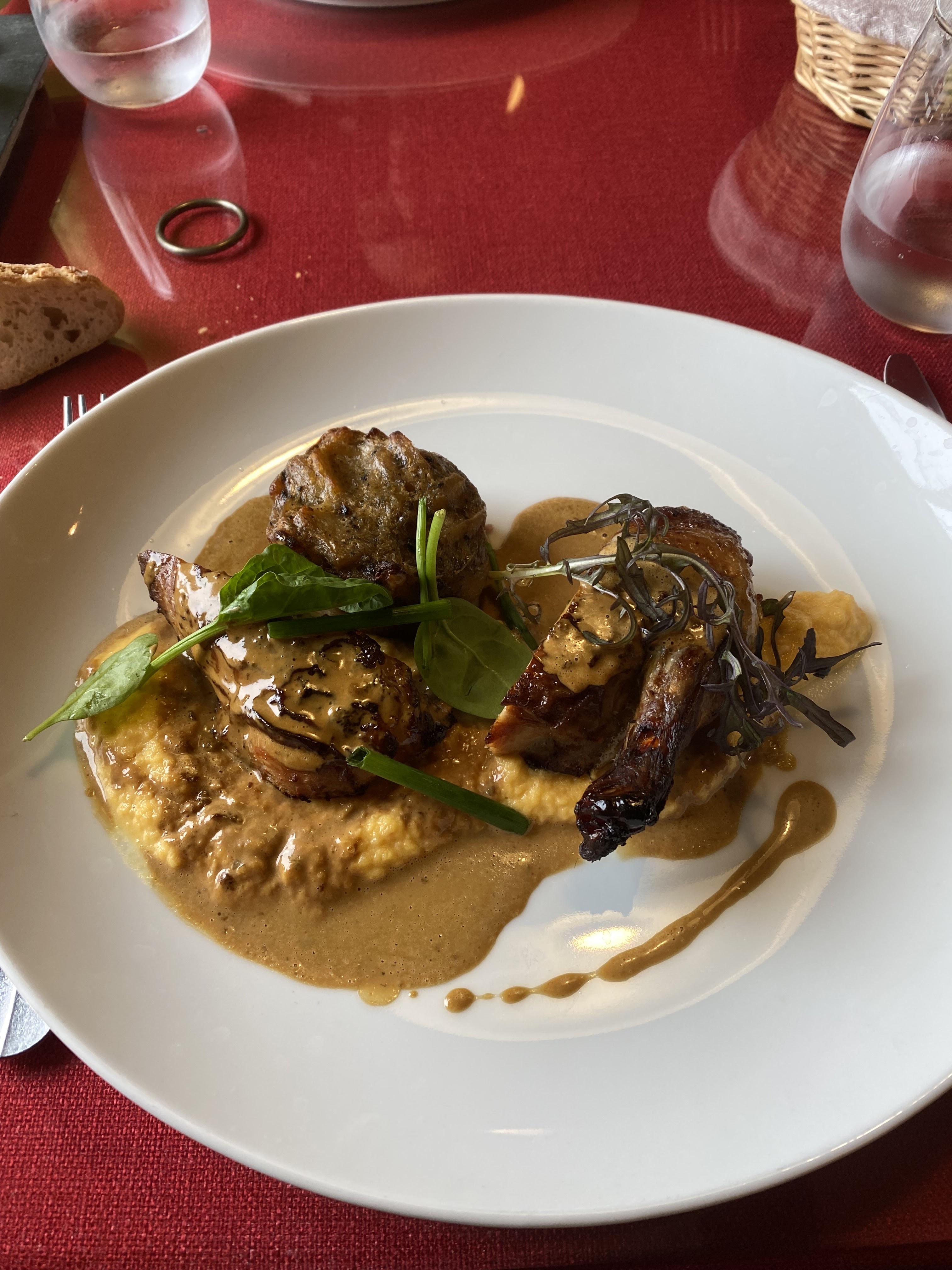 Repas fabuleux, les entrées en particulier dignes d'un Michelin. Tous les plats sont faits avec des produits locaux et ça se sent! Cadre très joli et tout à fait champêtre, et le service était extrêmement agréable, la serveuse étant très bien informée et aux petits soins. Bref, une perle rare!