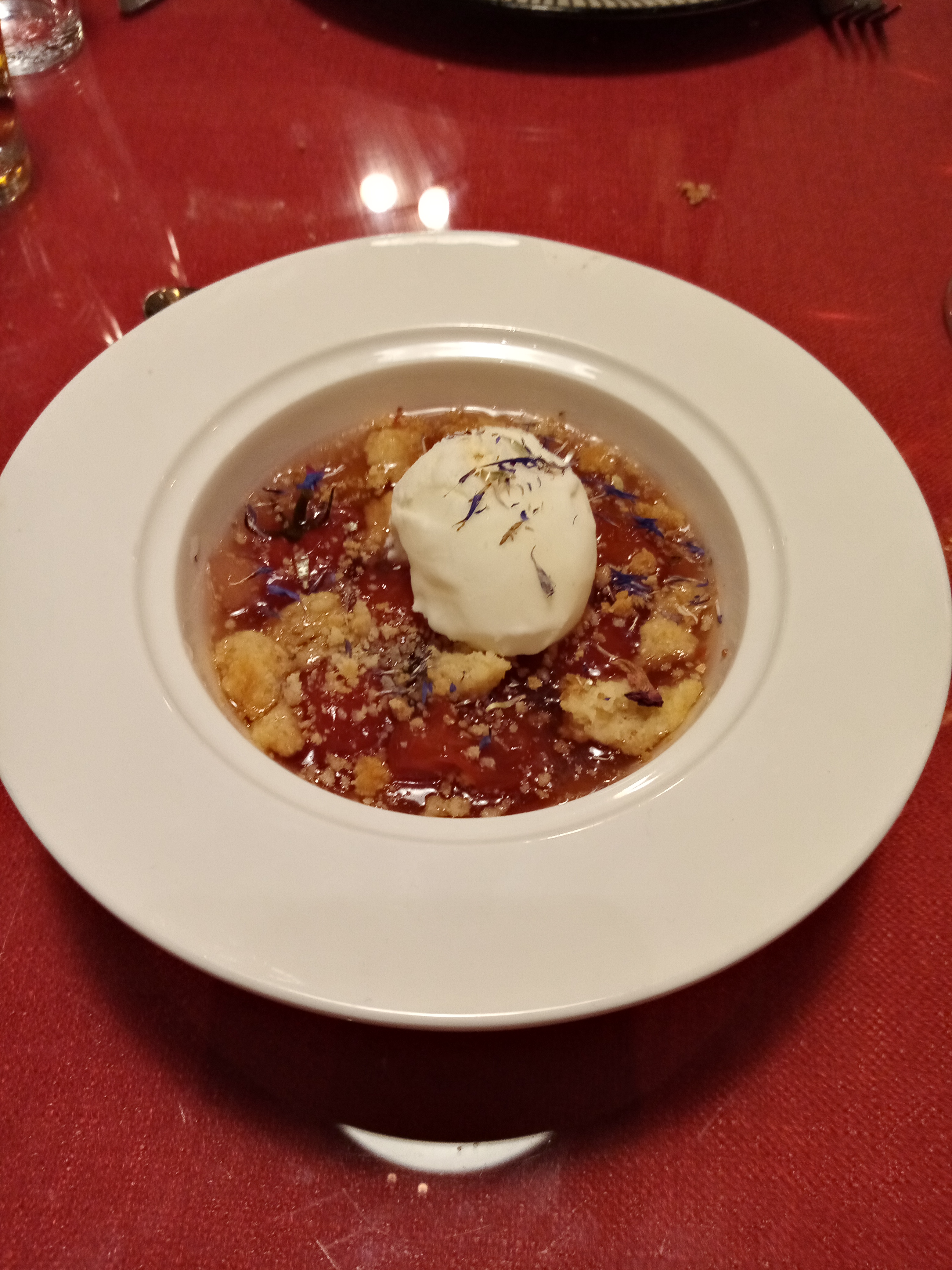 Visite hier au soir table 8 pour fêter 1 anniversaire 1 menu autour du plat + 1 menu tradition gourmande... 🤑 Pour 91€ 90. Note un peu salée supplément de 4€20 pour du foie gras... Pas terrible 🤢plaisir de déguster le poisson du jour.. Juste un filet... Manque de quantité.... Légumes indien sauce agrumes... 🤑Le dessert de mon épouse parfait le mien cerise confite et glace au lait de chèvre... Bof... Peau des cerises tomates bof... Et sans plus par correction...