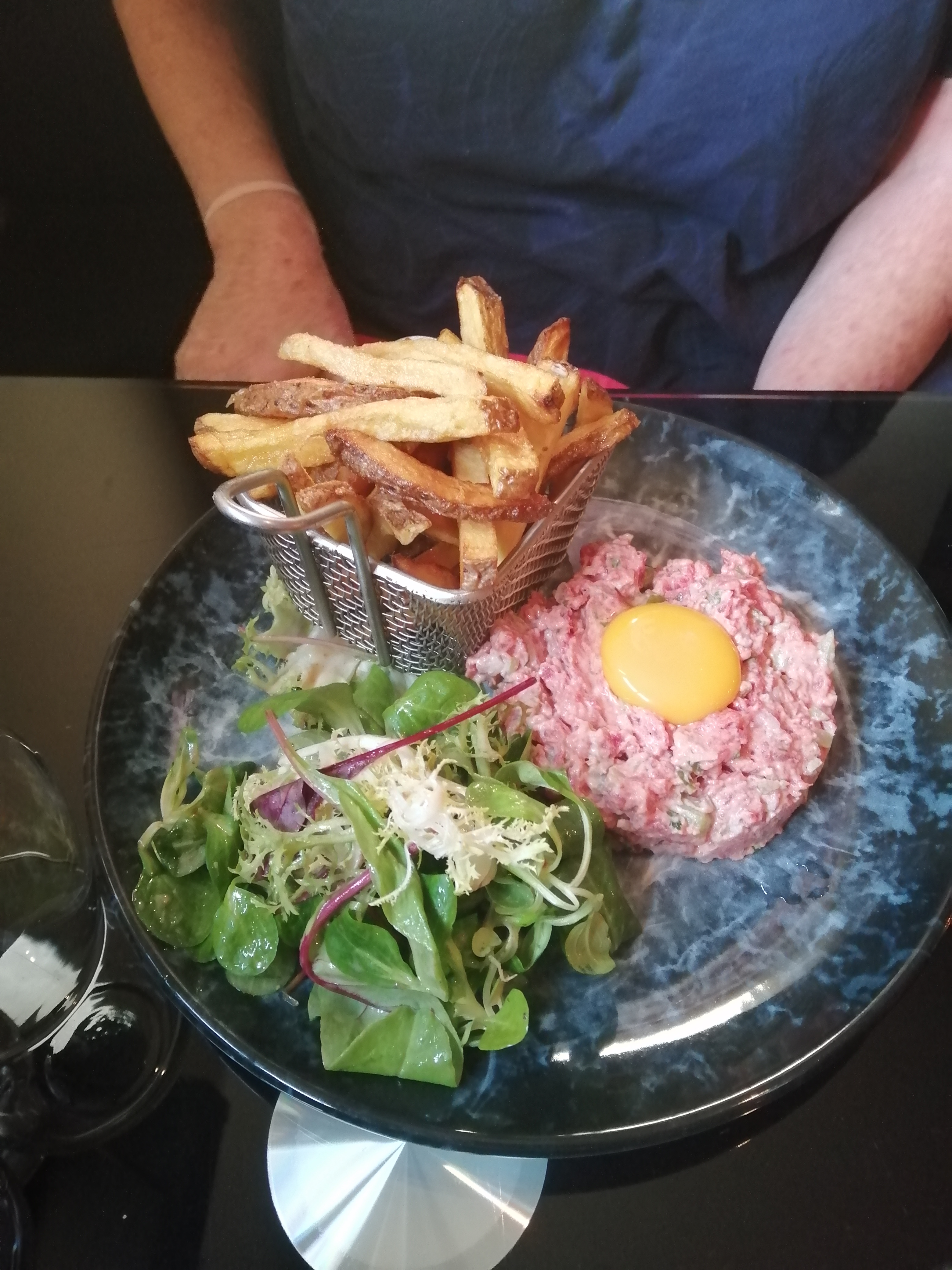 Restaurant français qui propose des plats traditionnels (andouillettes, escargots, tartare de bœuf ou de saumon, filet de bar...). Accueil sympathique et lieu cosy. Musique d'ambiance agréable (il manque juste les basses 😊 pour être HQ). Carte raisonnable (donc tenable) avec des produits annoncés de qualité. Pas de formule ou menu le soir. Prix relativement élevés pour l'emplacement et à la vue des plats proposés (d'où seulement mes 3 étoiles). Compter env 35 € / personne en faisant relativement attention.