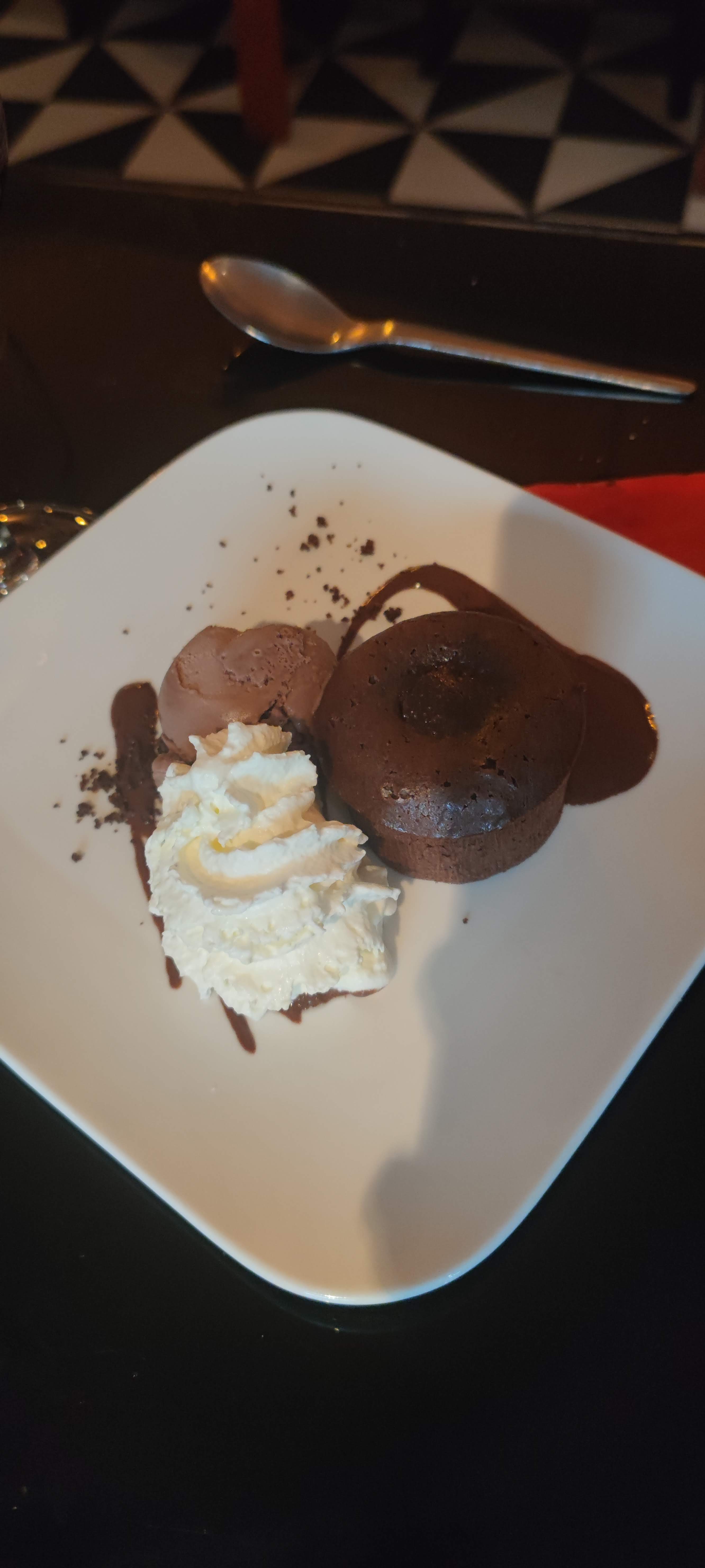 Il y a une super ambiance , les entrées, plats et desserts sont delicieux, et tres bien présentés. Et la décoration est super moderne. J'ai adoré ma petite soiree.