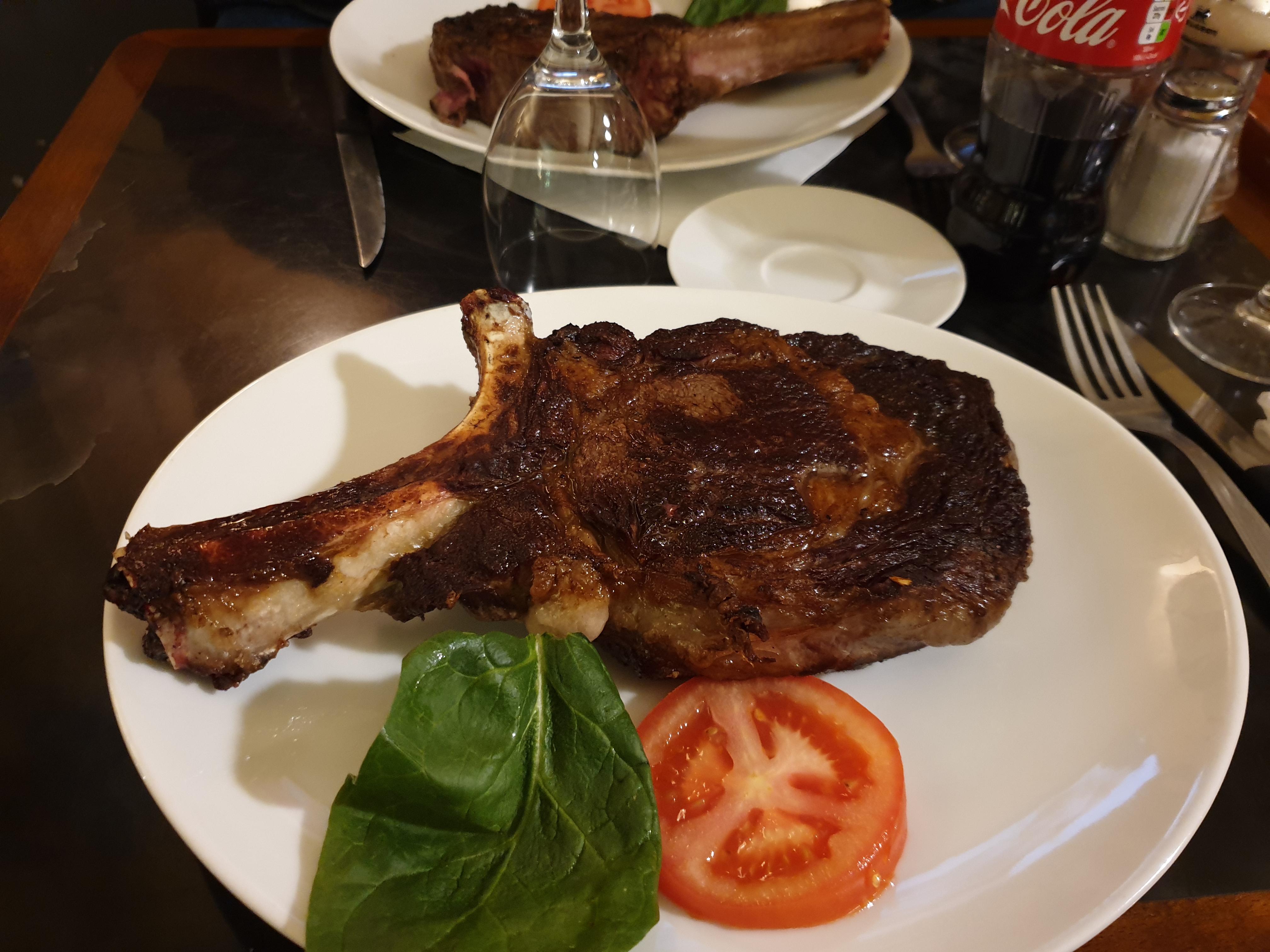 J'ai plusieurs problèmes avec ce restaurant. 1. De grandes parties des steaks n'étaient pas comme commandées. 2. Les repas sont trop chers. Genre 24€ pour un steak qui ressemblait à une chaussure. 3. L'eau du robinet était vermoulue et pas froide comme dans tous les autres restaurants. 4.le repas n'était pas complet à mon avis, il suffit de rencontrer des pommes de terre et 1 juste 1 feuille de laitue et quelques légumes que vous ne devriez pas manger 5,5 minutes après avoir fini, j'ai dû me lever. Toute la soirée était terminée.
